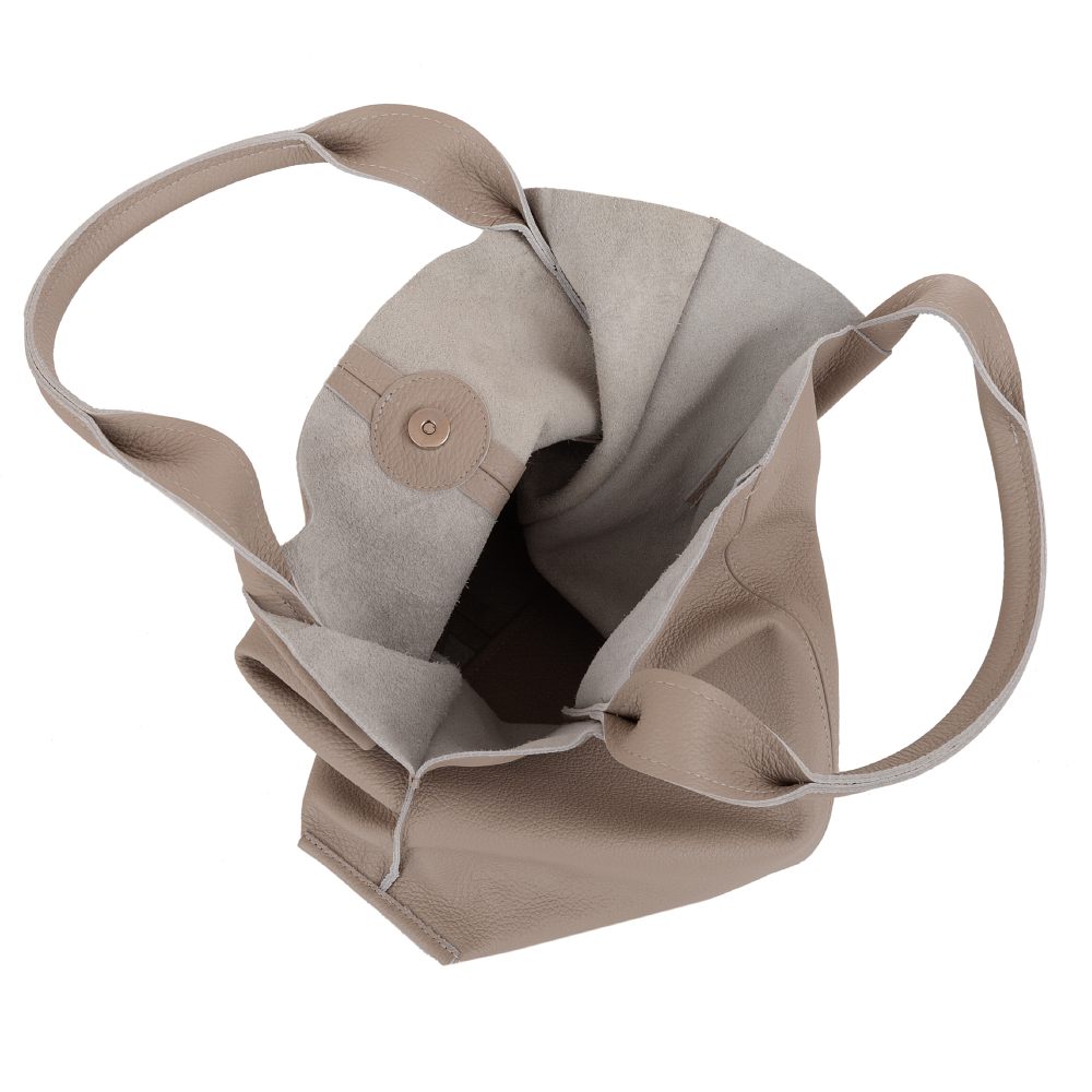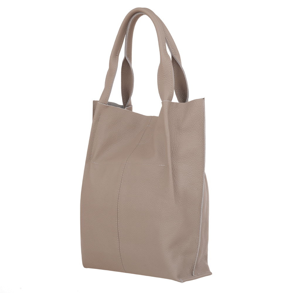 Skórzana A4 torebka wykonana w całości z miękkiej włoskiej skóry naturalnej. Zamykana z góry na zatrzask. Torebka jednokomorowa. Wewnątrz jedna duża kieszonka na zamek. Wnętrze modnie wykończone surową skórą naturalną. Dno torebki delikatnie usztywnione. Torebkę swobodnie można nosić na ramieniu.