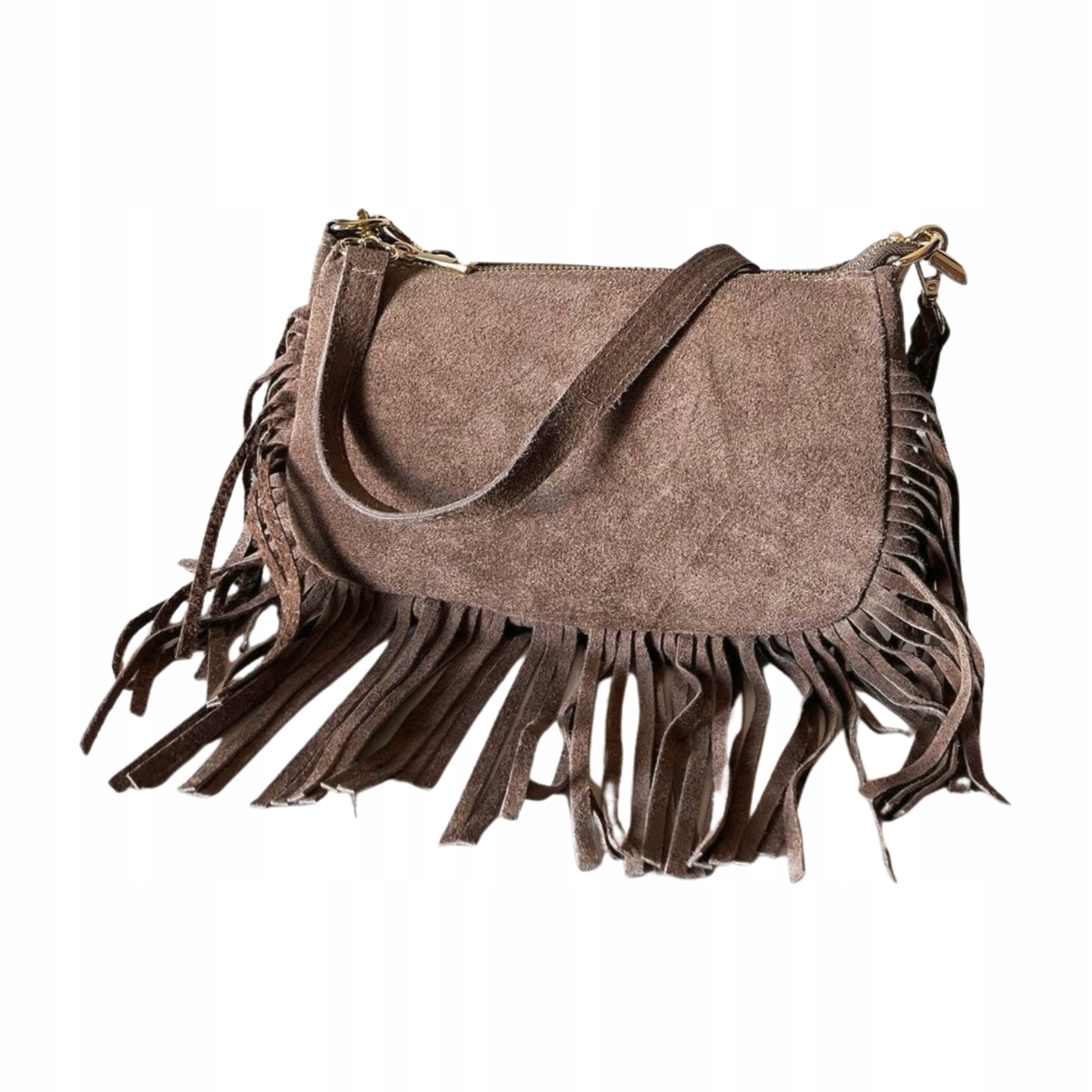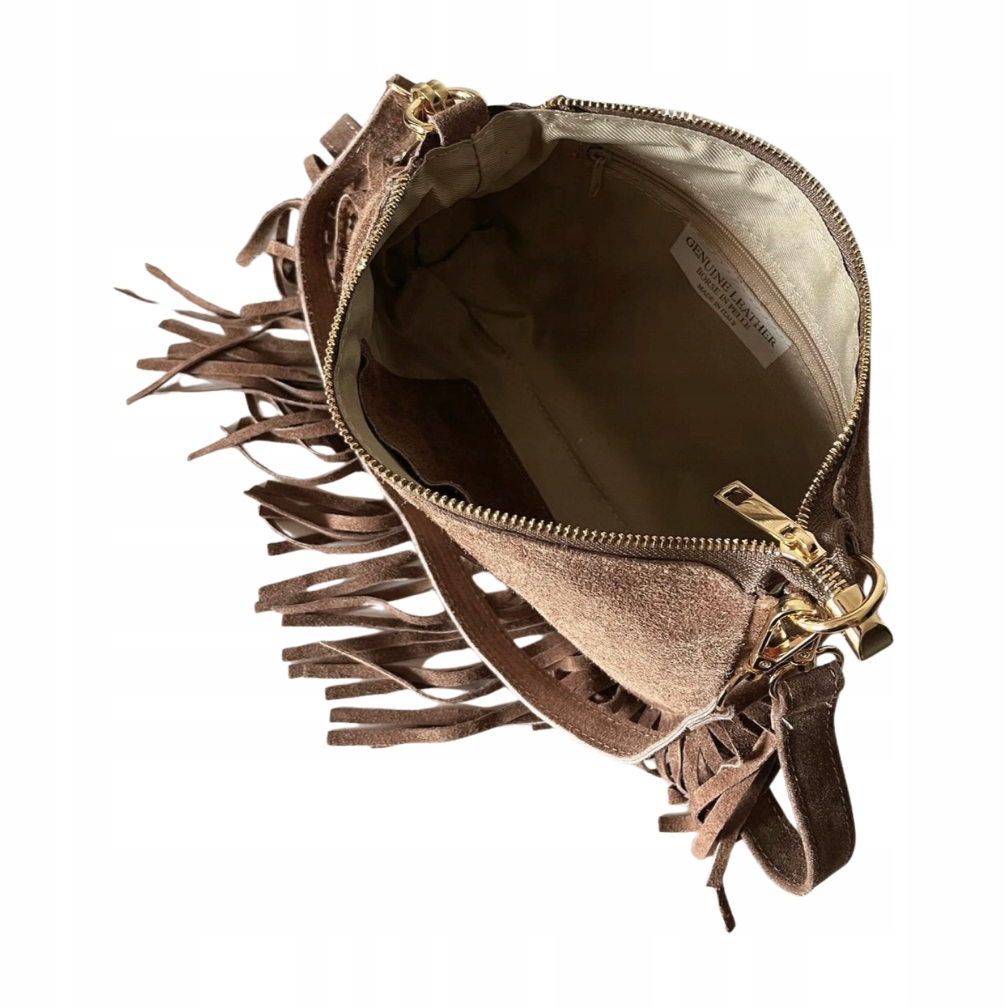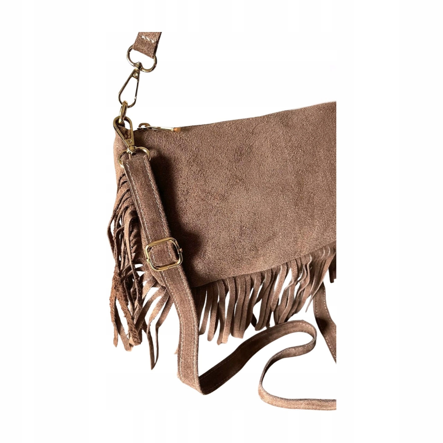 Vera Pelle - Włoska cappuccino taupe skórzana torebka listonoszka wykonana z wysokogatunkowej naturalnej skóry zamszowej.