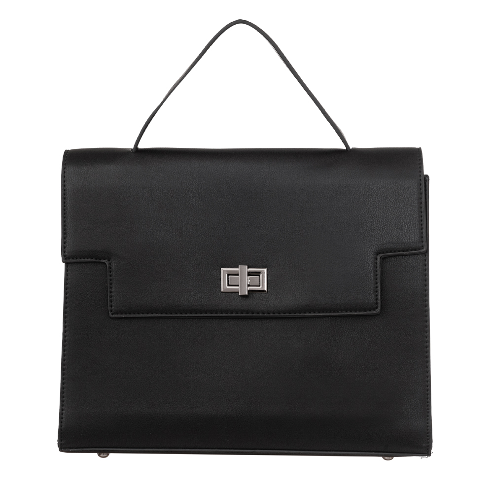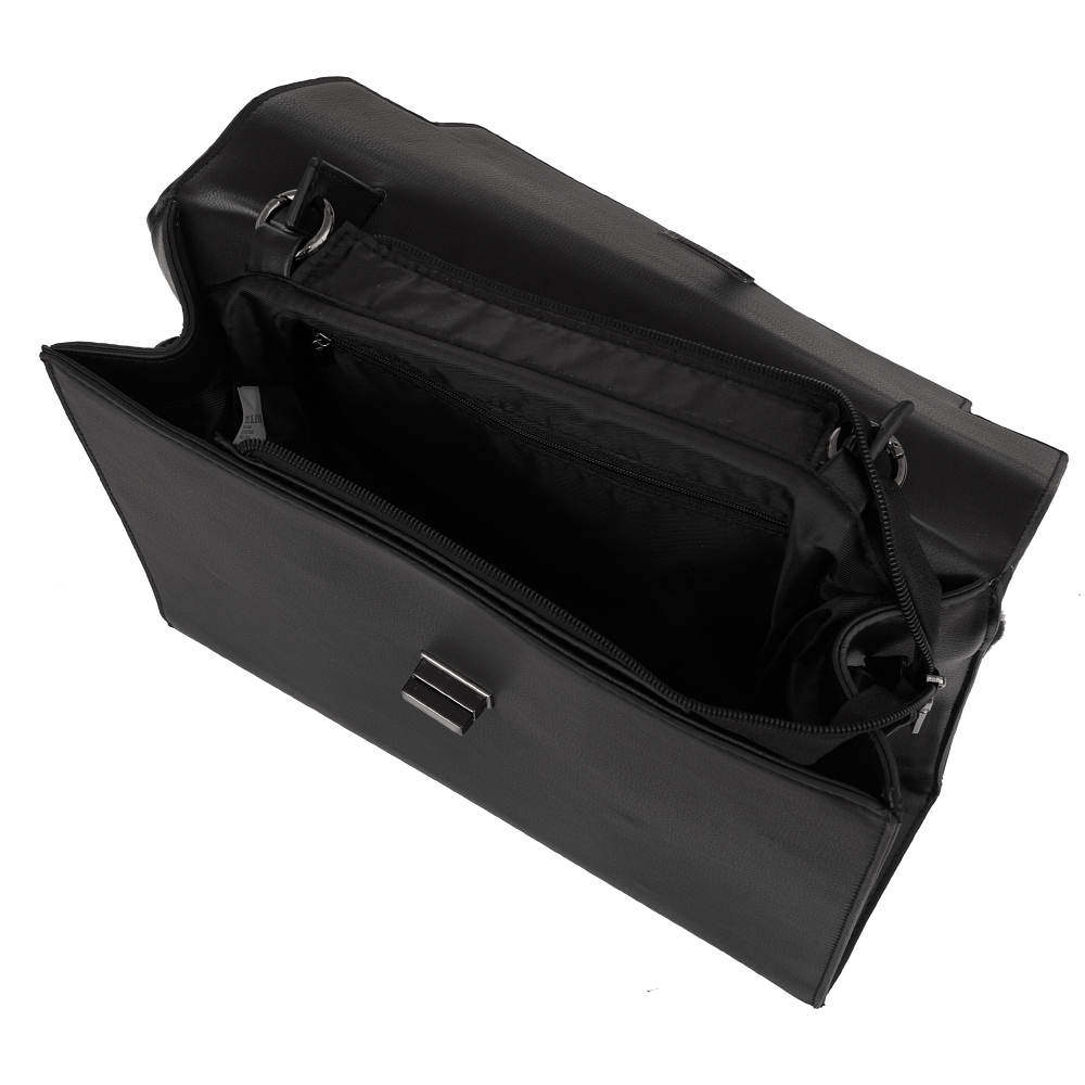 Modna A4 skórzana torba aktówka do ręki wykonana z wysokogatunkowej gładkiej skóry ekologicznej wysokiej jakości. Zamykana z góry na zamek na całej szerokości + klapa na przekrętkę.. Torba jednokomorowa, zorganizowana w środku + wewnątrz kieszonka na zamek, jedna na telefon + dodatkowa kieszeń wsuwna na drobiazgi. Wnętrze wykończone trwałą czarną materiałową podszewką. Dodatkowo z tyłu pozioma kieszonka na zamek. Spód usztywniony i podbity metalowymi nóżkami. Elementy wykończenia w kolorze srebrnym (inox). Możliwość noszenia w dłoni lub na ramieniu ( dołączając dodatkowy długi regulowany pasek ).