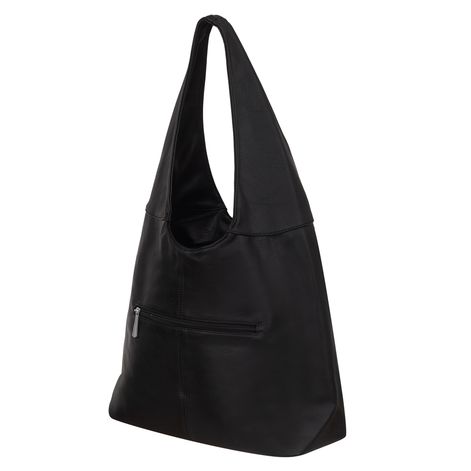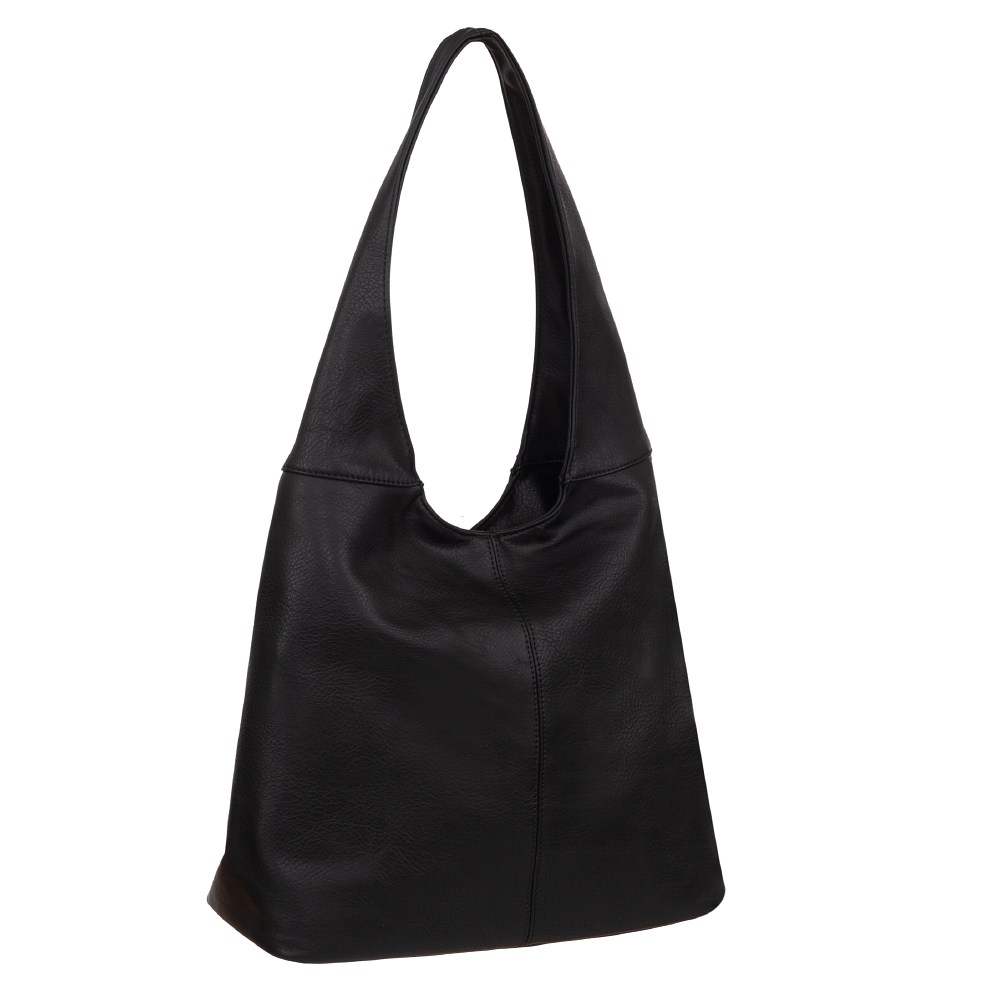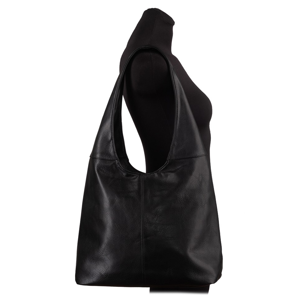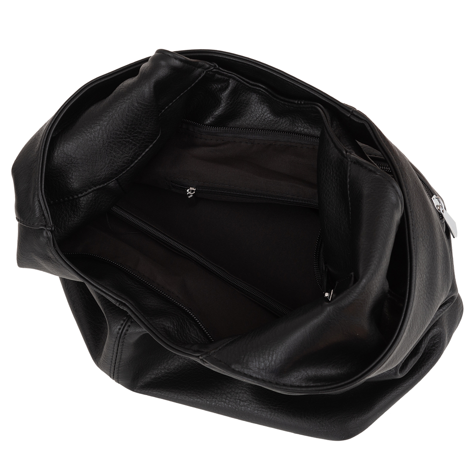 torebka worek wykonana z wysokogatunkowej miękkiej skóry ekologicznej. Zamykana z góry na suwak. Torebka dwukomorowa przedzielona na środku dużą kieszenią na suwak + wewnątrz jedna kieszonka na zamek oraz jedna na telefon. Wnętrze wykończone trwałą, bawełnianą podszewką. Szerokie ucho pozwala nosić wygodnie na ramieniu. Z tyłu torebki kieszonka na suwak. Metalowe elementy w kolorze srebrnym. Z tyłu torebki zamek.