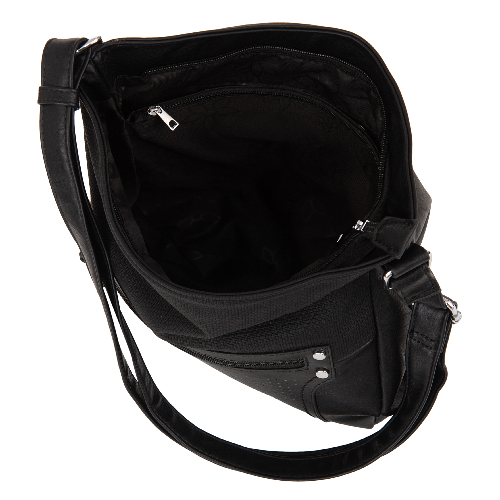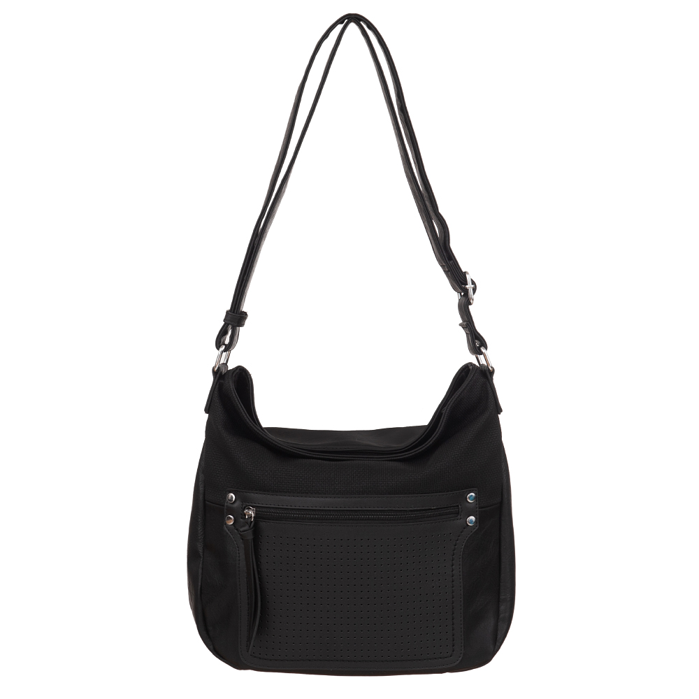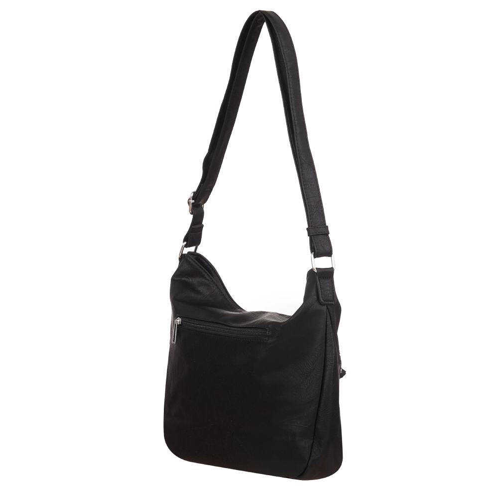 Modna, pojemna torebka listonoszka wykonana z wysokogatunkowej miękkiej skóry ekologicznej. Zamykana na zamek. Z przodu dwie różne faktury skóry tworzą oryginalną całość. Torebka jednokomorowa przedzielona dużą kieszenią na zamek + w środku kieszonka na zamek, wsuwna kieszeń na drobiazgi, klucze + kieszonka na zamek. Wnętrze wykończone trwałą podszewką kolorystycznie dopasowaną do skóry. Długi, regulowany pasek umożliwia wygodne noszenie na ramieniu lub przez ramię jak listonoszkę. Dodatkowo kieszonka z przodu + pojemna kieszonka na zamek z tyłu. Maksymalna długość paska 132 cm.