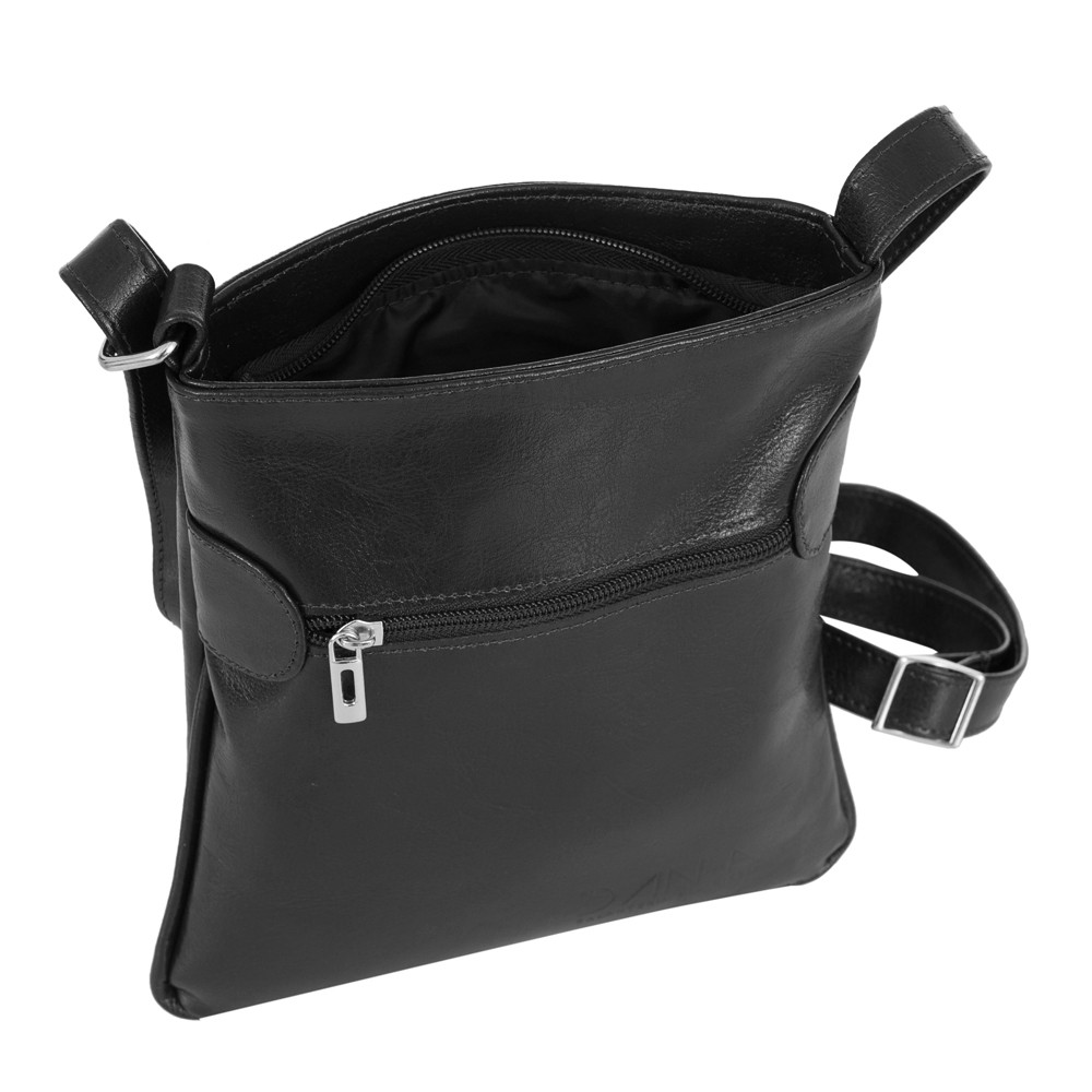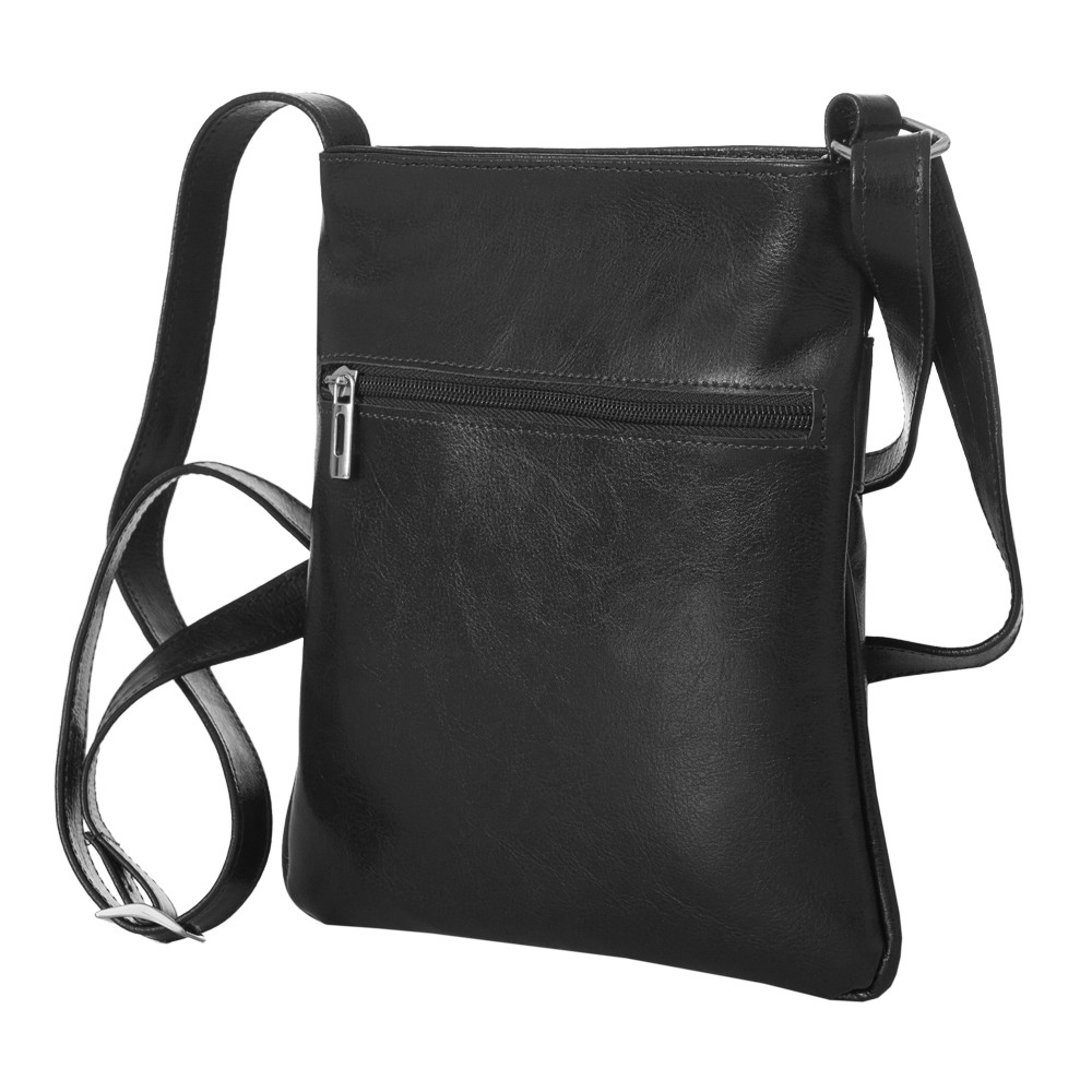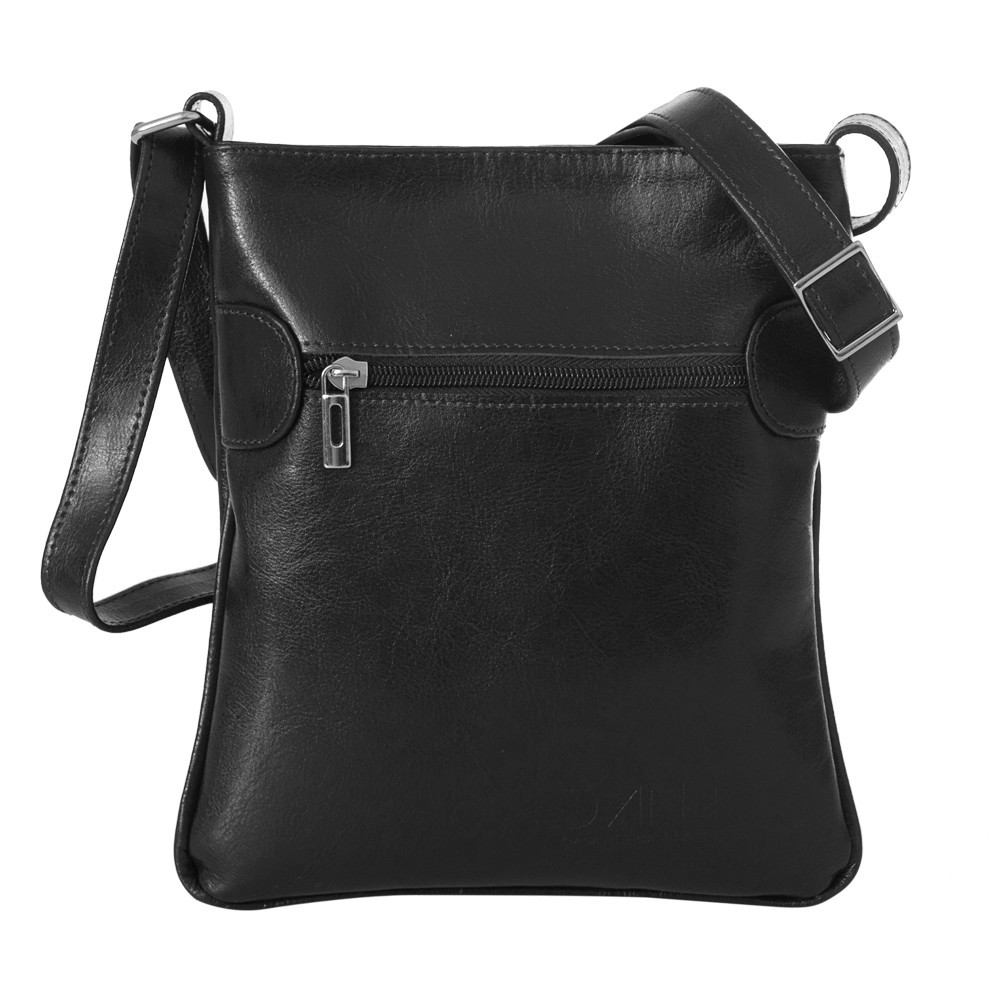 POLSKA skórzana torebka listonoszka wykonana z wysokogatunkowej naturalnej gładkiej skóry licowej firmy DAN-A. Zamykana og góry na zamek. Torebka jednokomorowa, wewnątrz jedna kieszonka na zamek oraz jedna na telefon. Wnętrze wykończone trwałą, materiałową podszewką. Długi, regulowany pasek umożliwia wygodne noszenie na ramieniu lub przez ramię. Dodatkowo z przodu i z tyłu praktyczna kieszonka na zamek. Elementy metalowe w kolorze srebrnym.