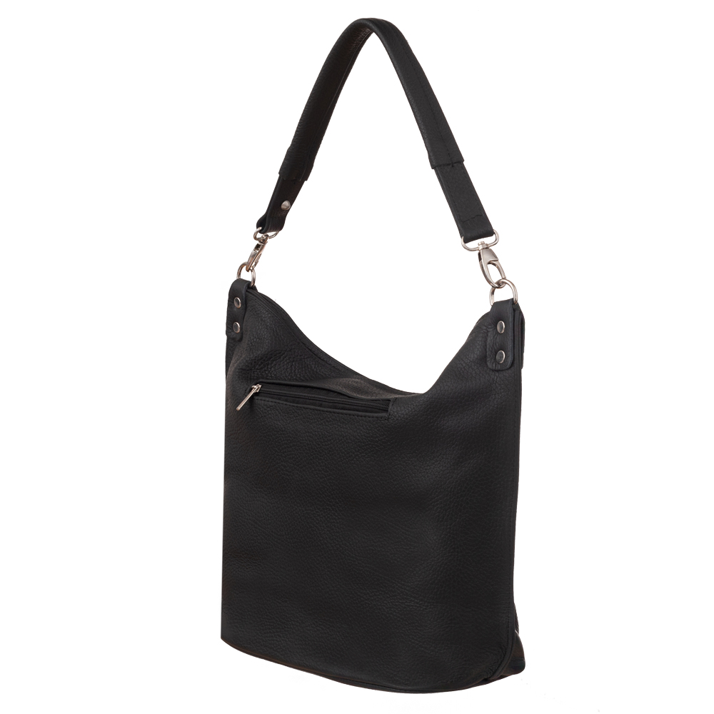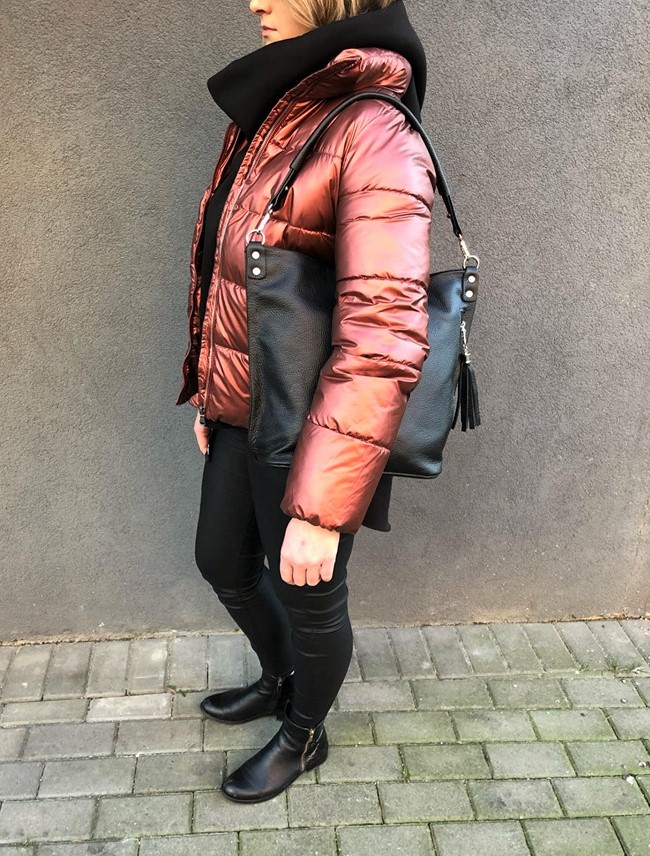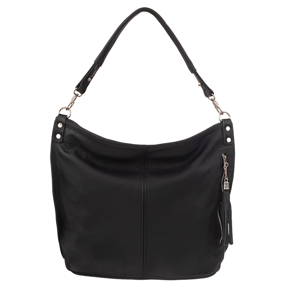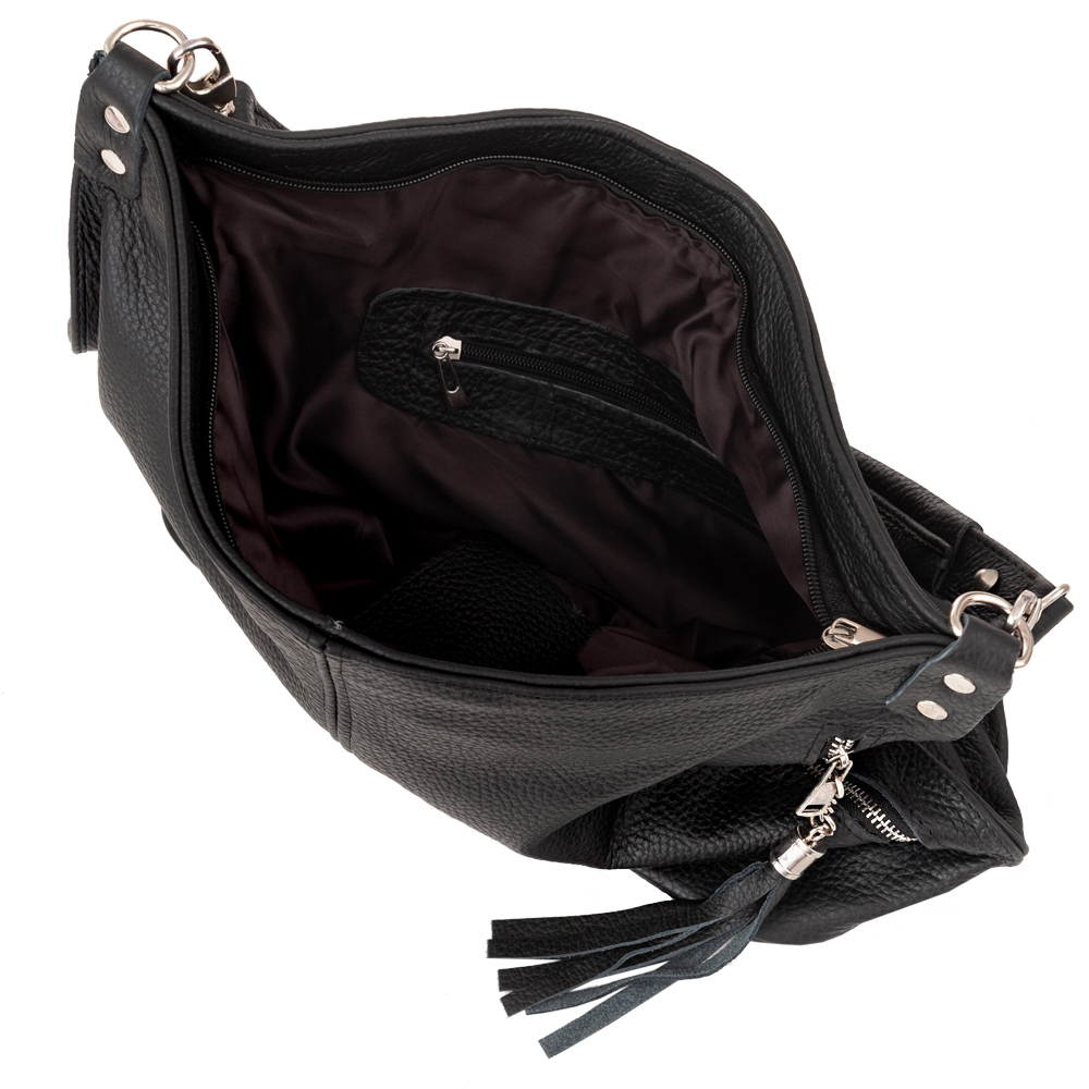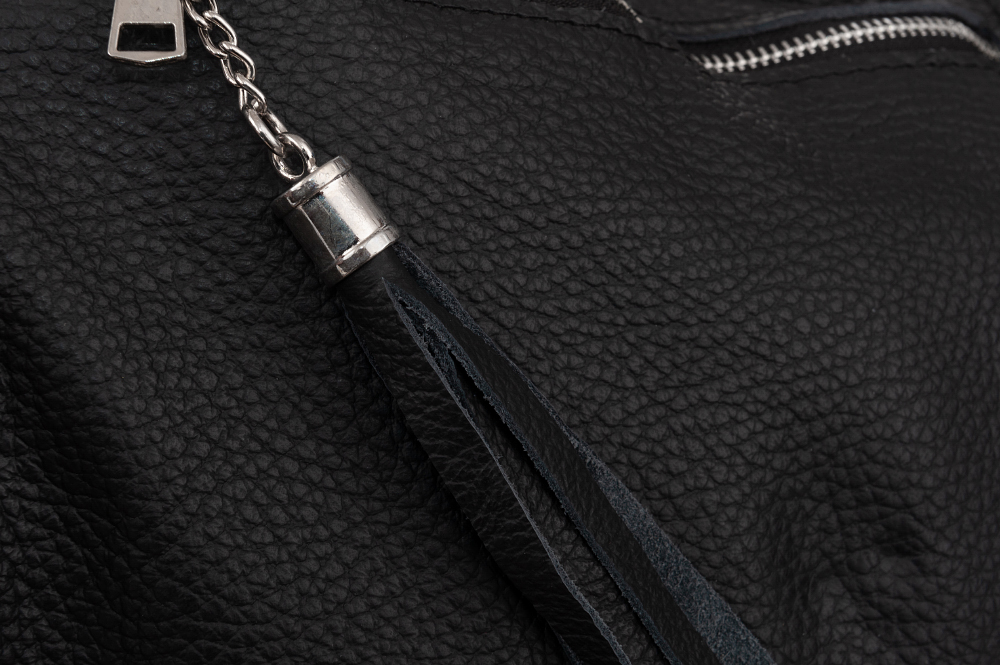 Skórzana torebka / worek wykonana w 100% z miękkiej naturalnej skóry. Modny klasyczny model z odobnym pękiem frędzli. Torebka zamykana od góry na zamek, jednokomorowa. Dodatkowo wewnątrz jedna kieszonka na zamek, jedna na telefon. Z przodu pionowa kieszeń na zamek. Wnętrze wykończone trwałą, materiałową podszewką. Elementy wykończenia w kolorze srebrnym. Dodatkowy długi, regulowany pasek w komplecie o długości max. 120 cm