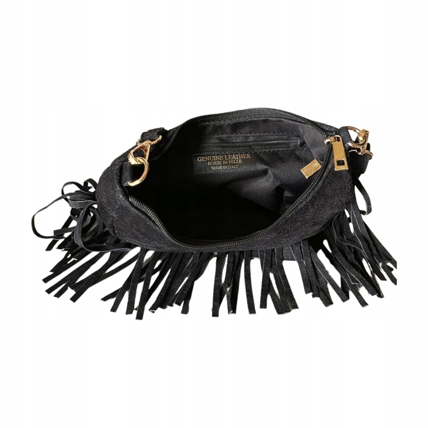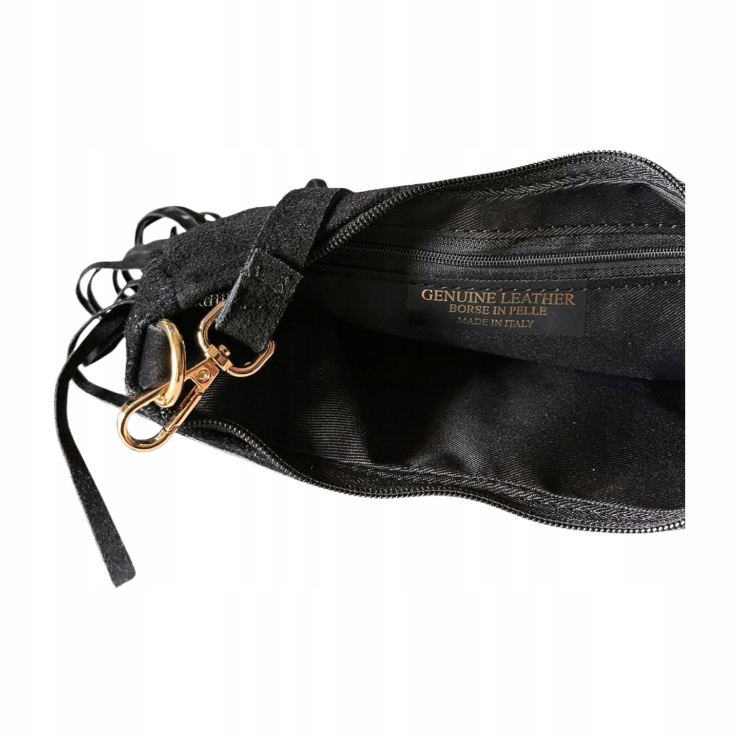 Vera Pelle - Włoska czarna zamszowa torebka.