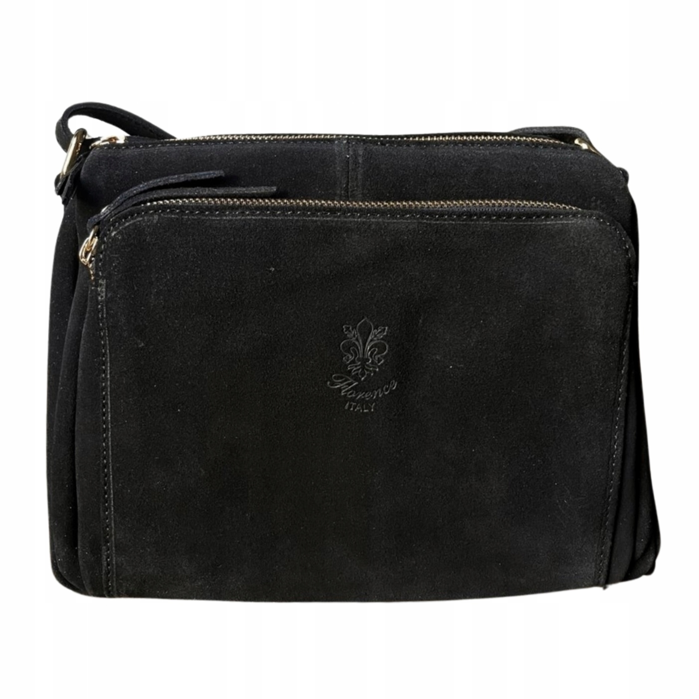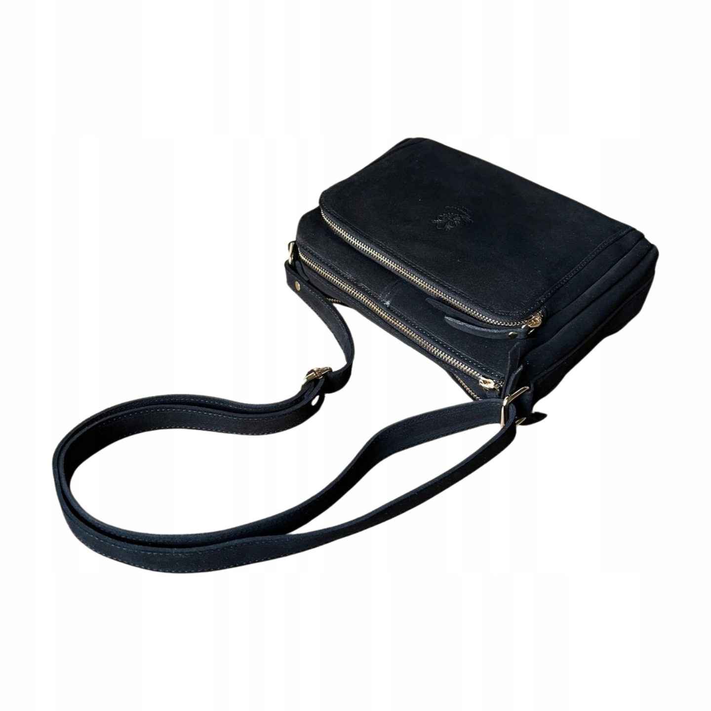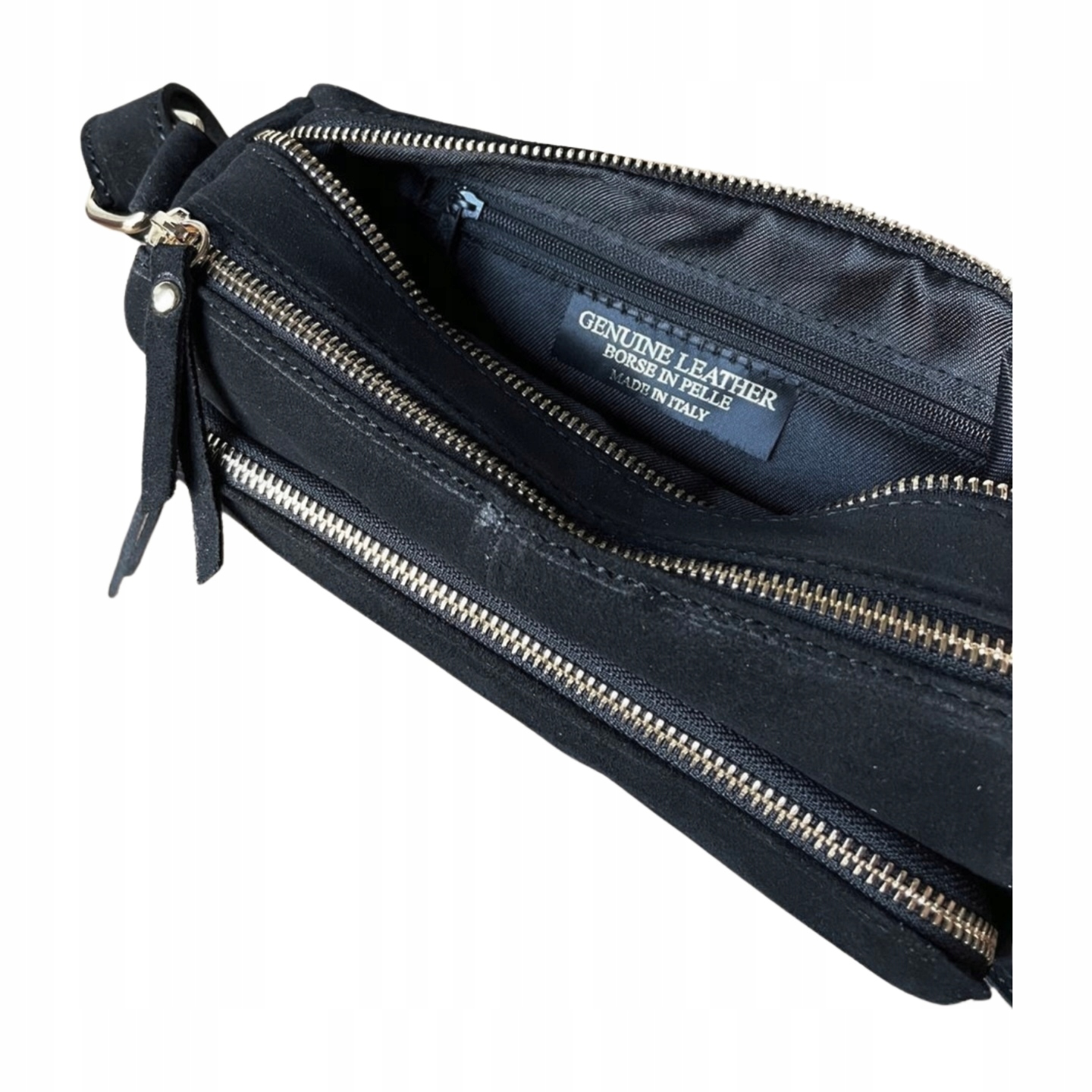 Vera Pelle - Włoska czarna skórzana torebka listonoszka wykonana z wysokogatunkowej miękkiej naturalnej skóry zamszowej.