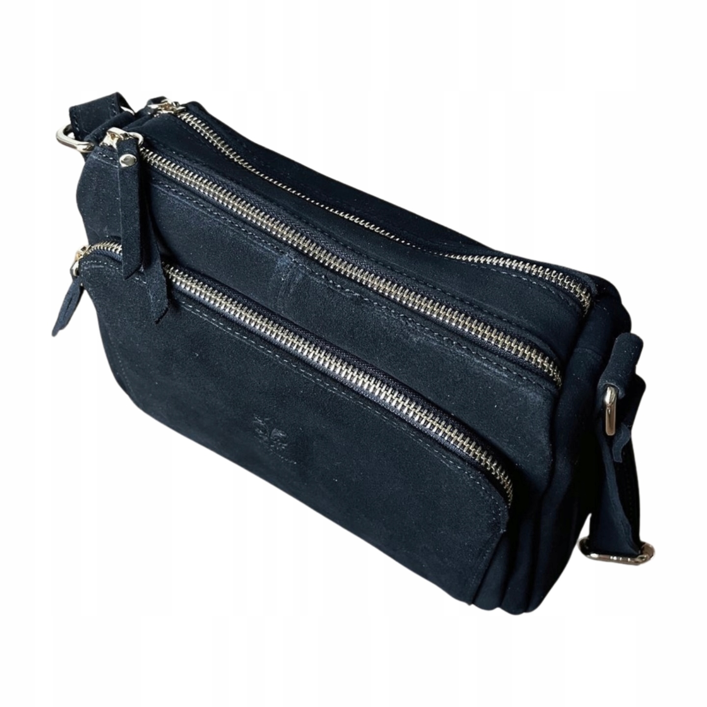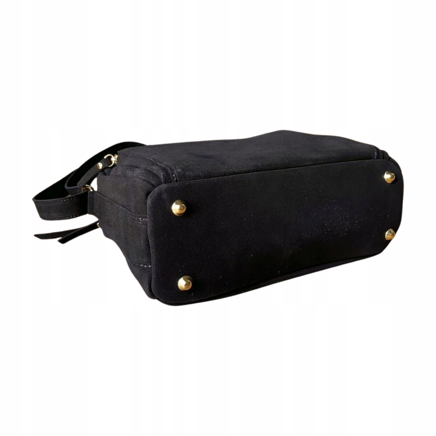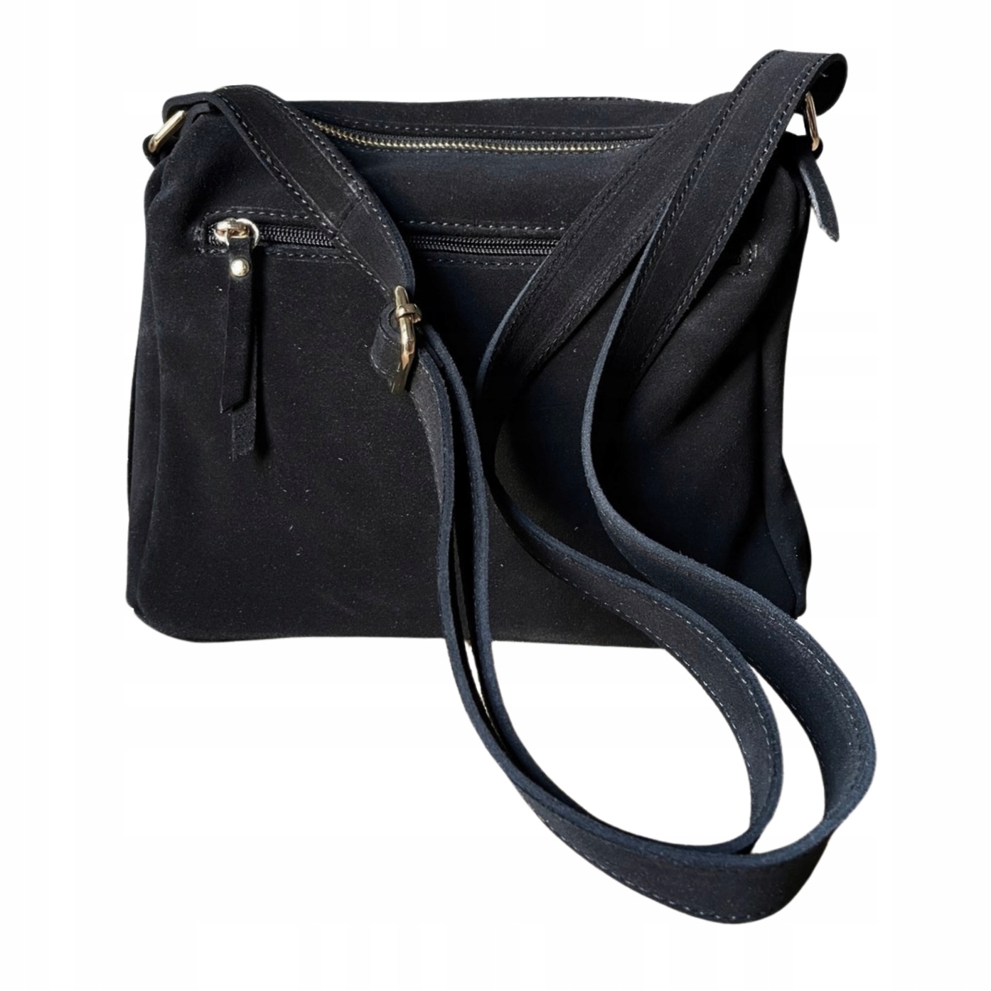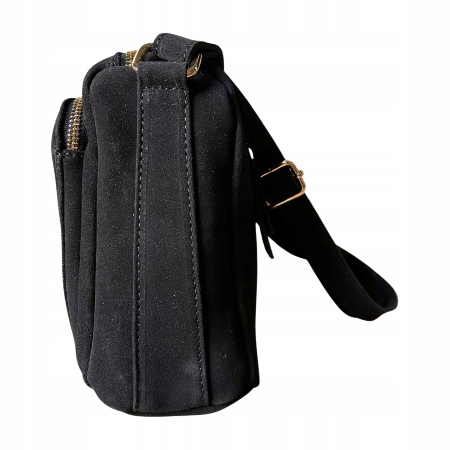 Vera Pelle - Włoska czarna skórzana torebka listonoszka wykonana z wysokogatunkowej miękkiej naturalnej skóry zamszowej.