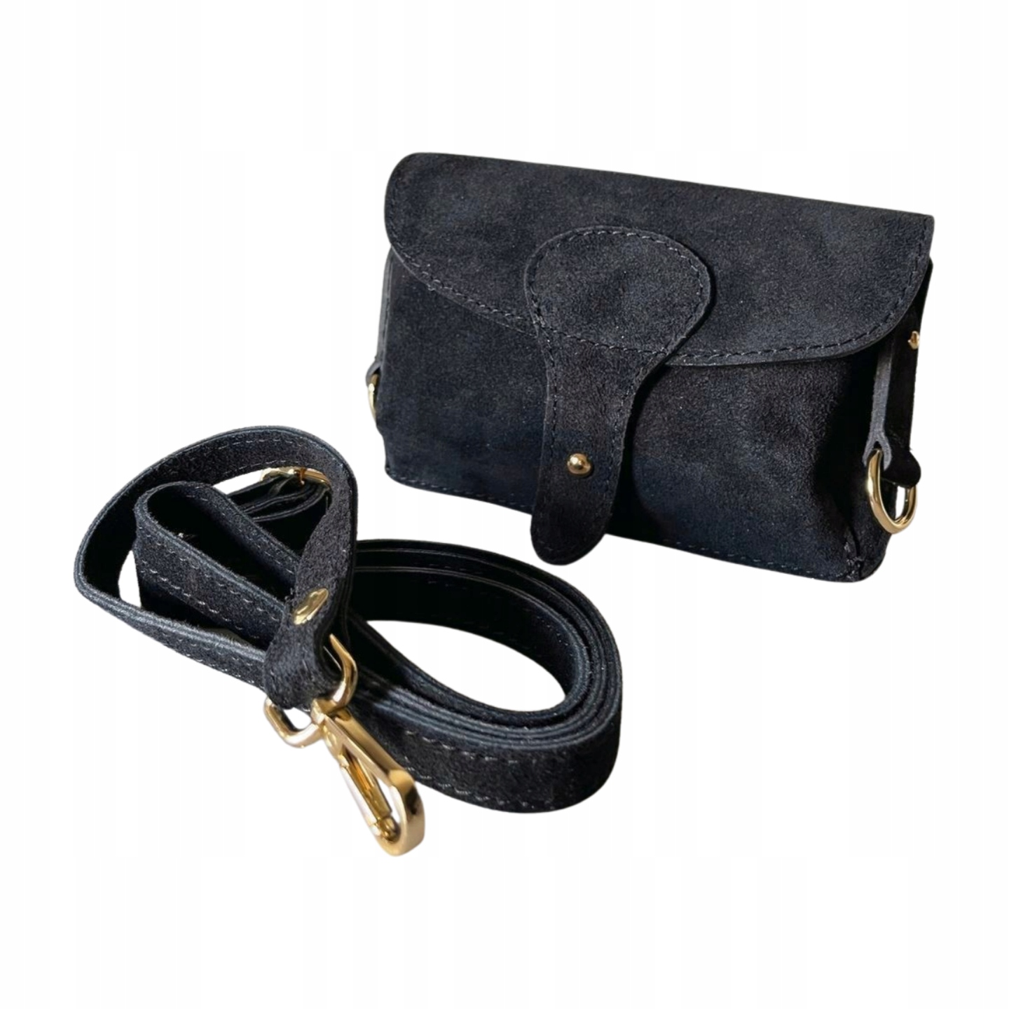 Vera Pelle - Włoska skórzana torebka listonoszka wykonana z wysokogatunkowej naturalnej skóry zamszowej.