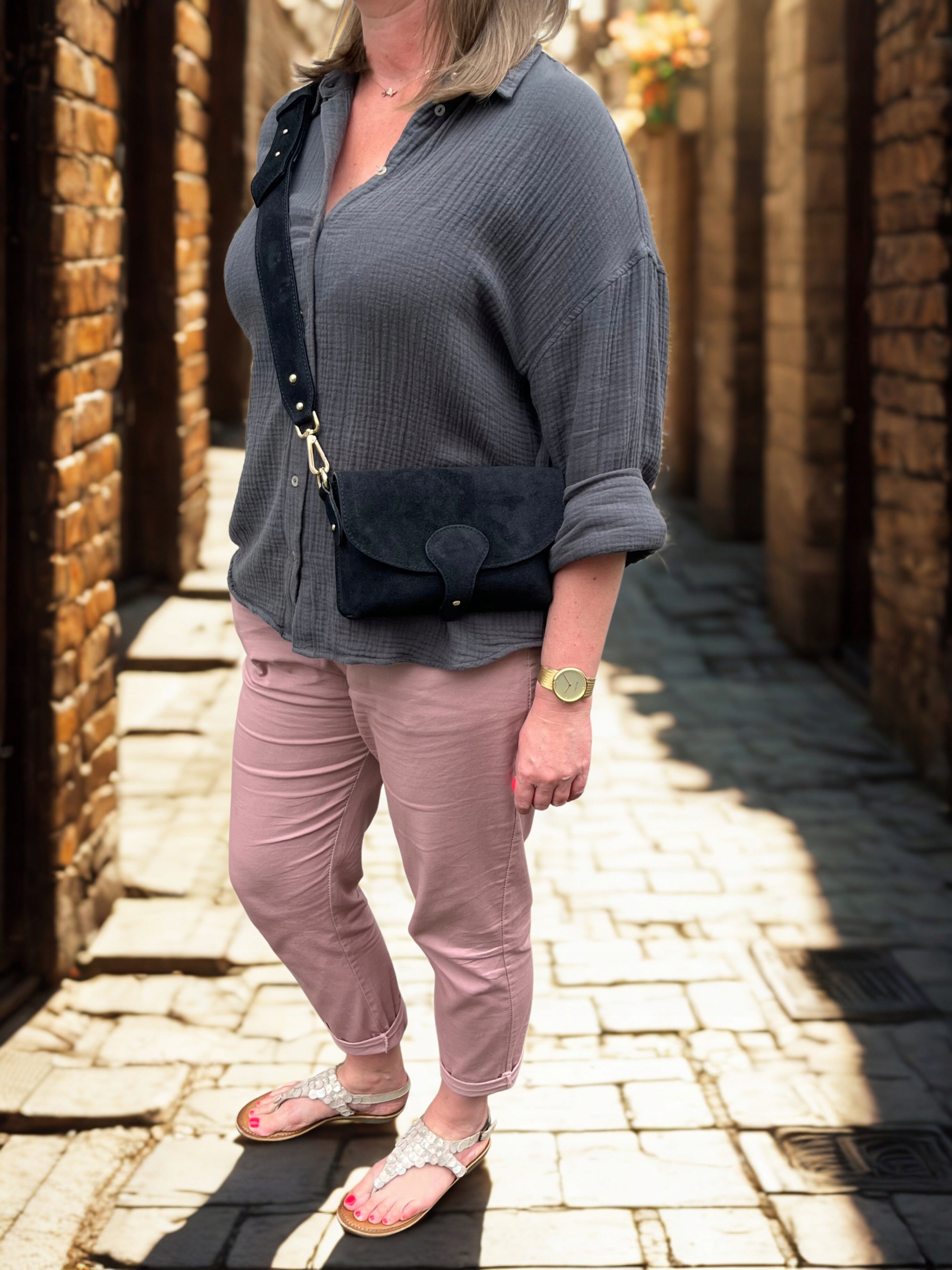 Vera Pelle - Włoska skórzana torebka listonoszka wykonana z wysokogatunkowej naturalnej skóry zamszowej.