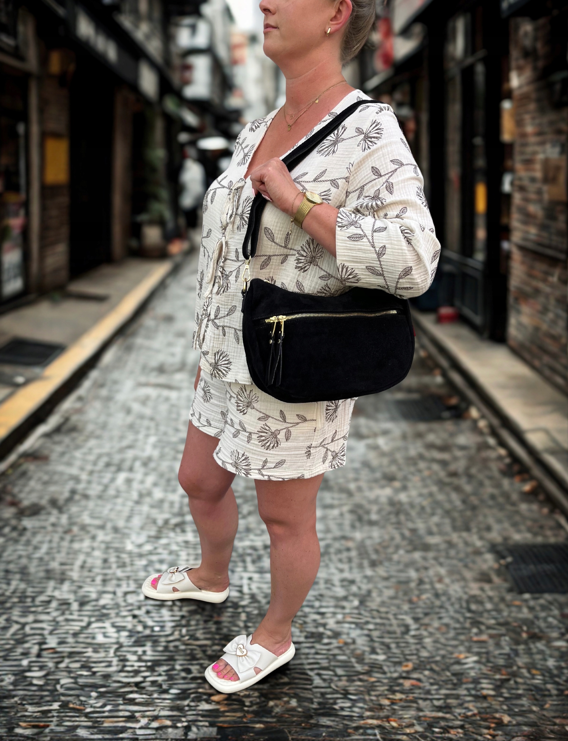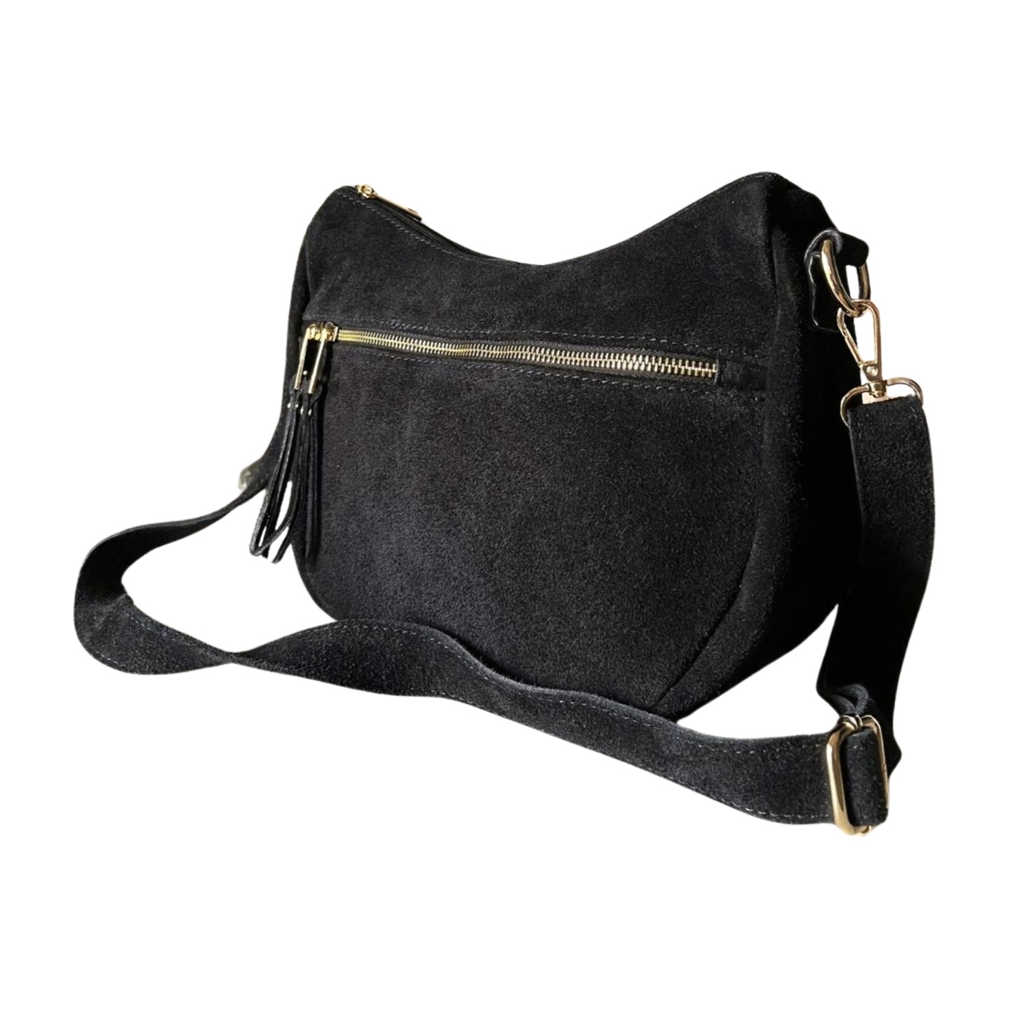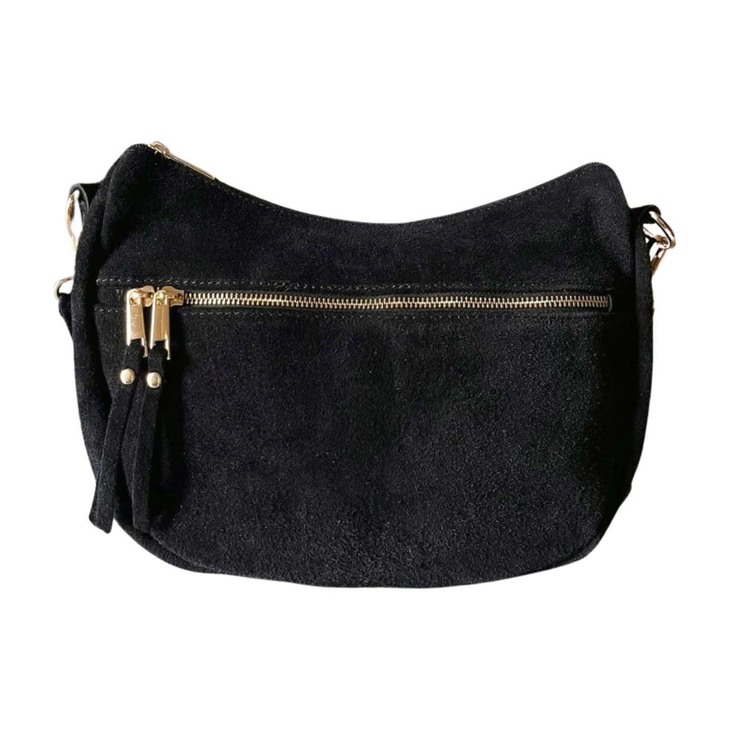 Vera Pelle - Włoska skórzana torebka listonoszka wykonana z wysokogatunkowej naturalnej skóry zamszowej.