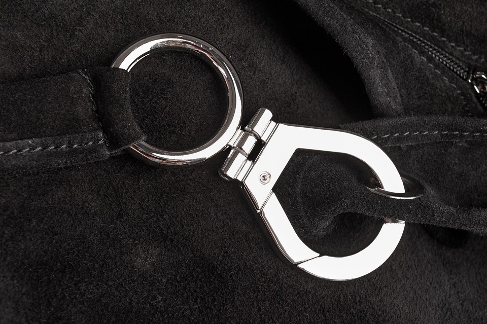 Włoska skórzana torebka worek wykonana w 100% z naturalnej skóry zamszowej najwyższej jakości. Zamsz nie farbuje. Torebka zamykana z góry na zamek. Torebka jednokomorowa przedzielona dużą kieszenią na suwak. Wewnątrz jedna kieszonka na zamek. Wnętrze wykończone gładką skórą naturalną. Metalowe elementy w kolorze srebrnym. Szeroki pasek zapewni wygodne noszenie na ramieniu.