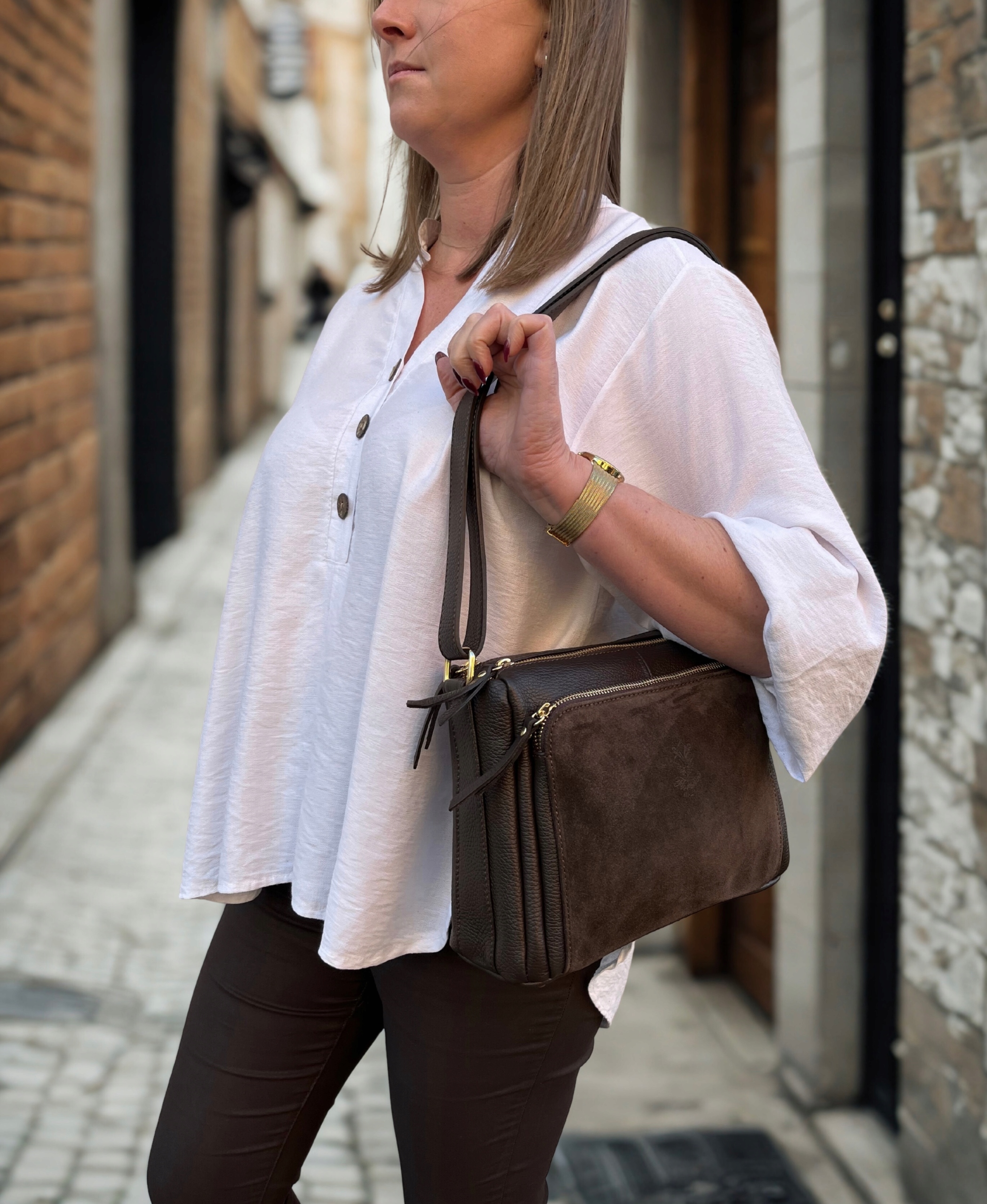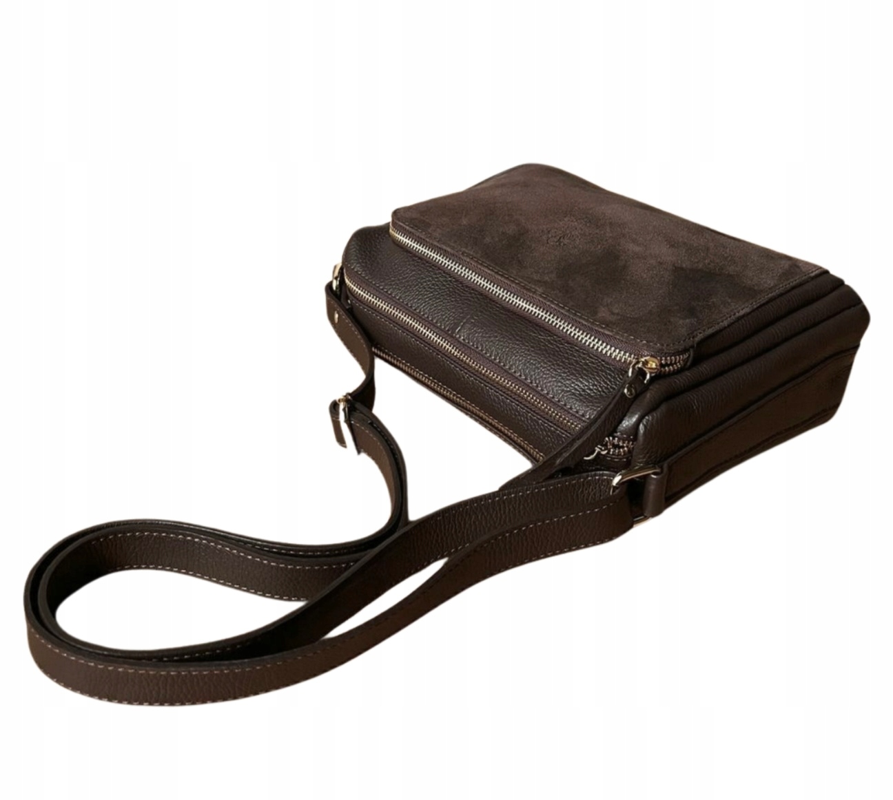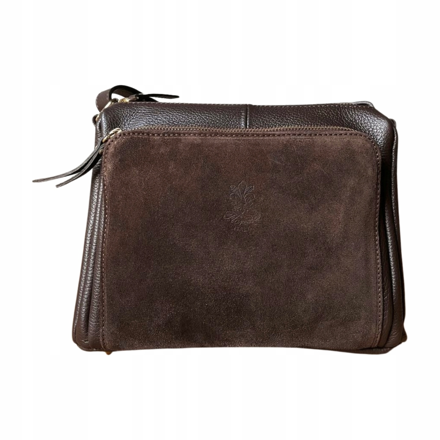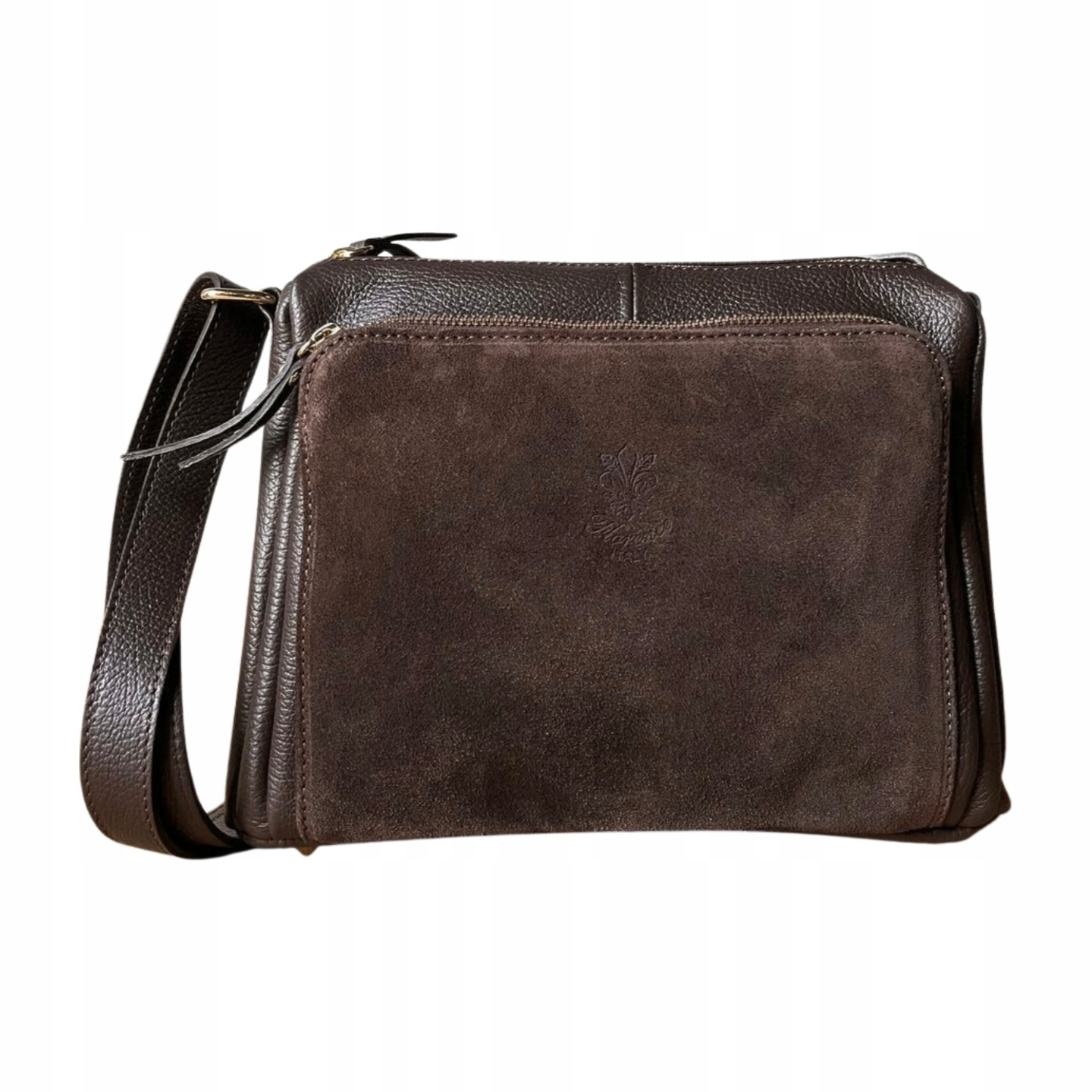 Vera Pelle - Włoska skórzana torebka listonoszka wykonana z wysokogatunkowej z naturalnej skóry + przód skóra naturalna zamszowa.