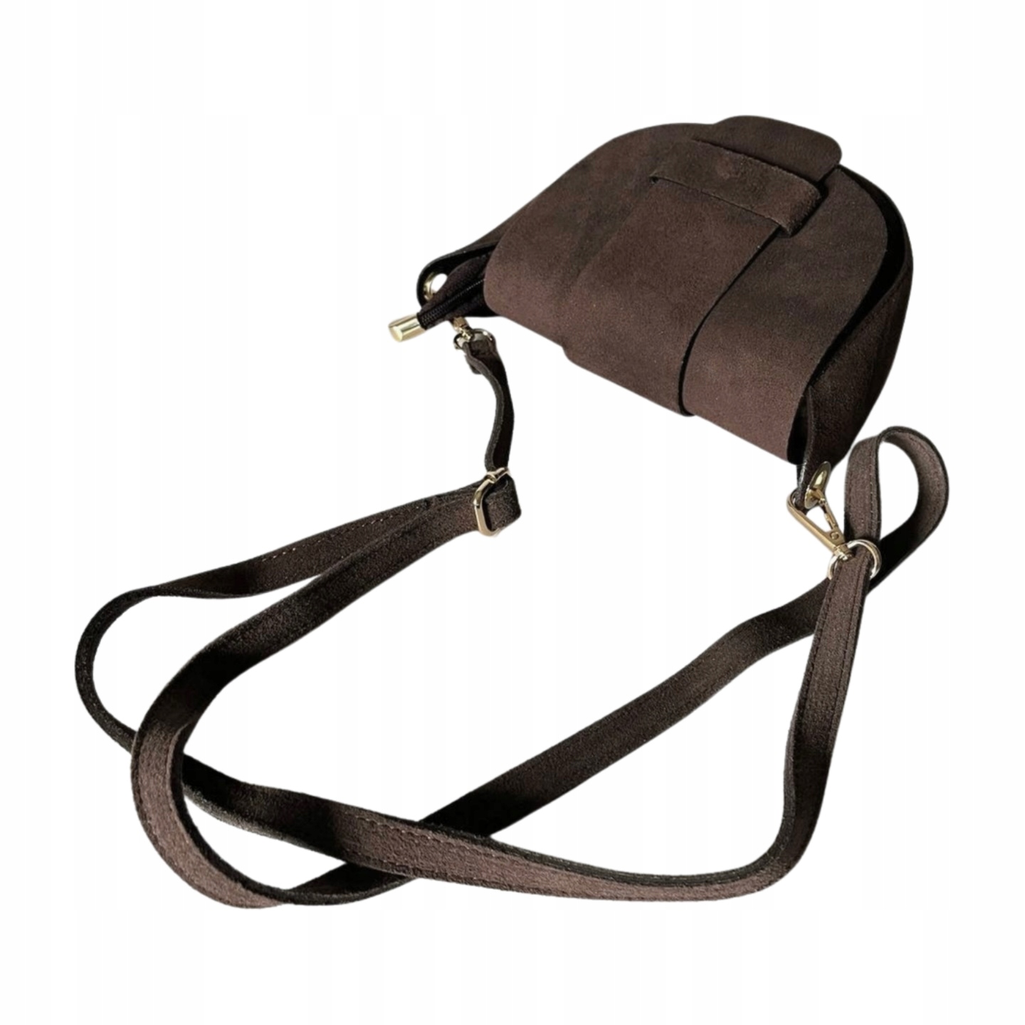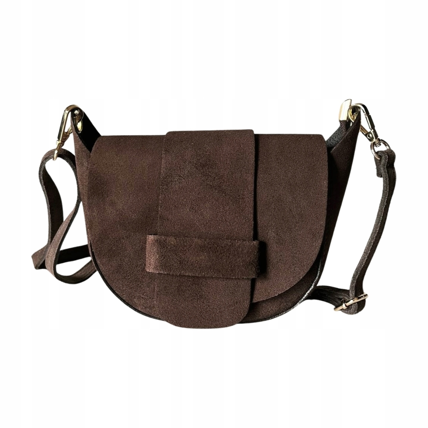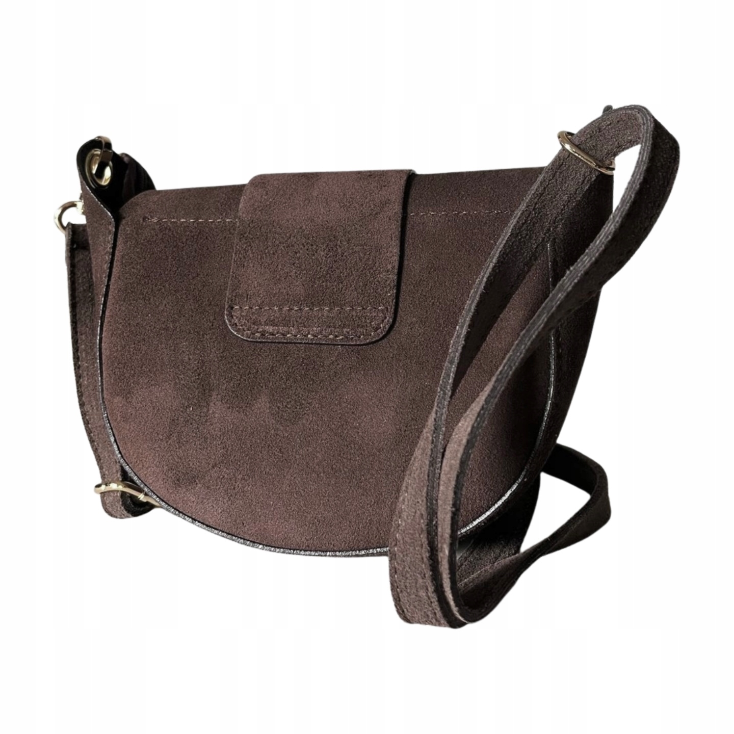 Vera Pelle - Włoska czekoladowa brązowa skórzana torebka listonoszka wykonana z wysokogatunkowej naturalnej skóry zamszowej.