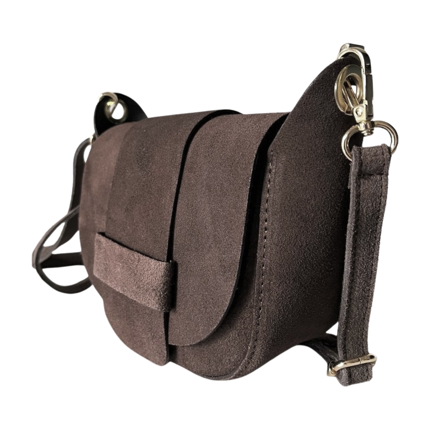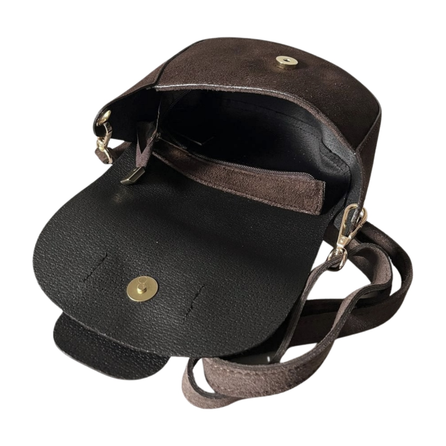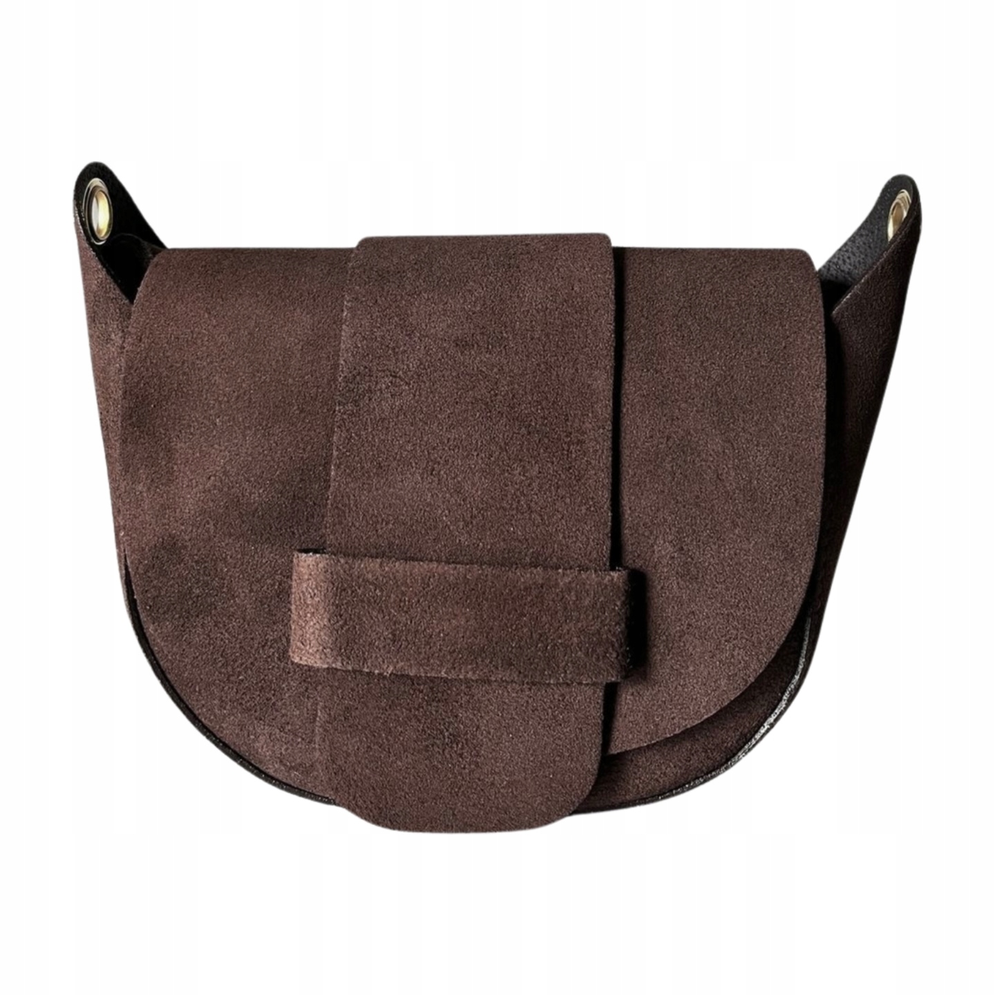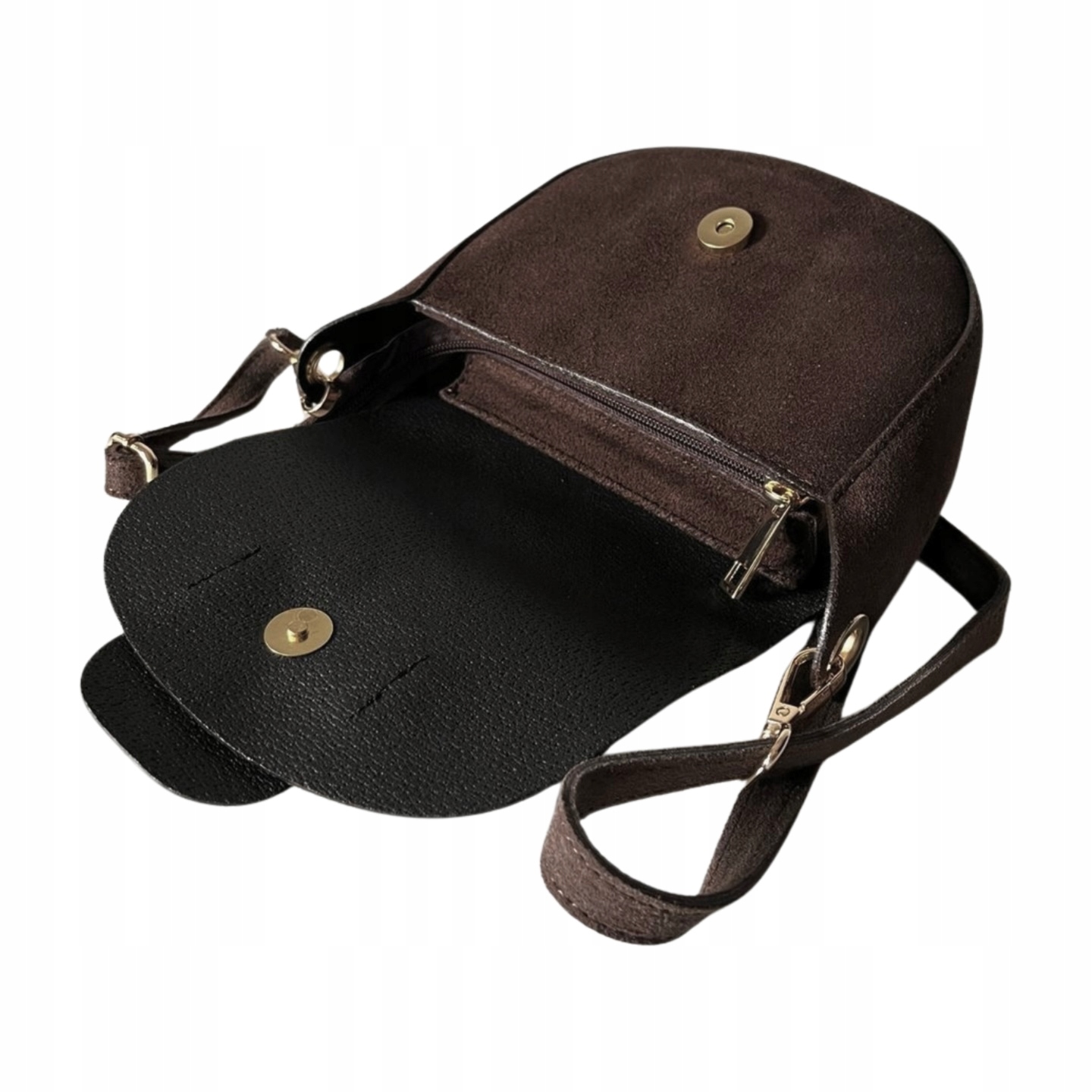 Vera Pelle - Włoska czekoladowa brązowa skórzana torebka listonoszka wykonana z wysokogatunkowej naturalnej skóry zamszowej.