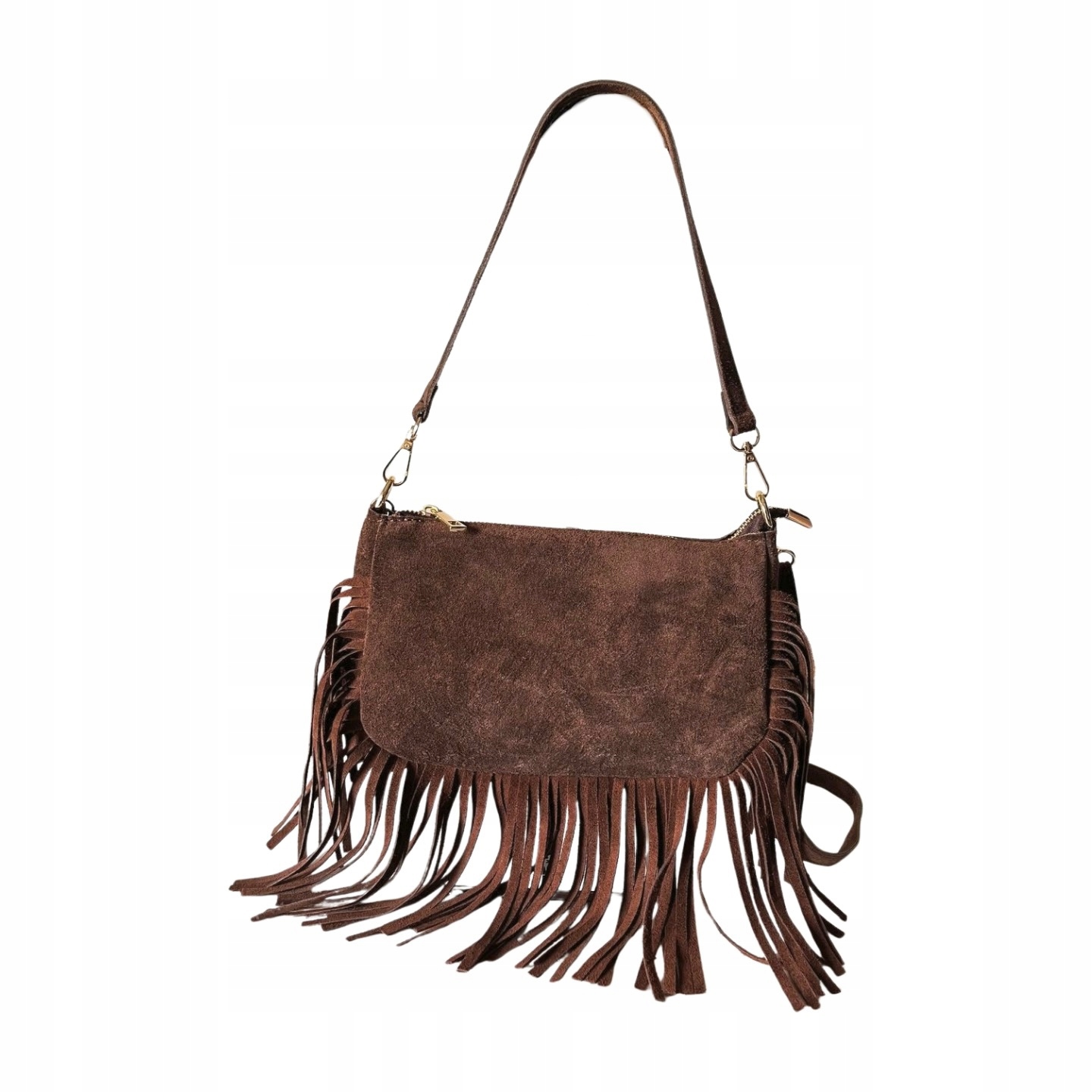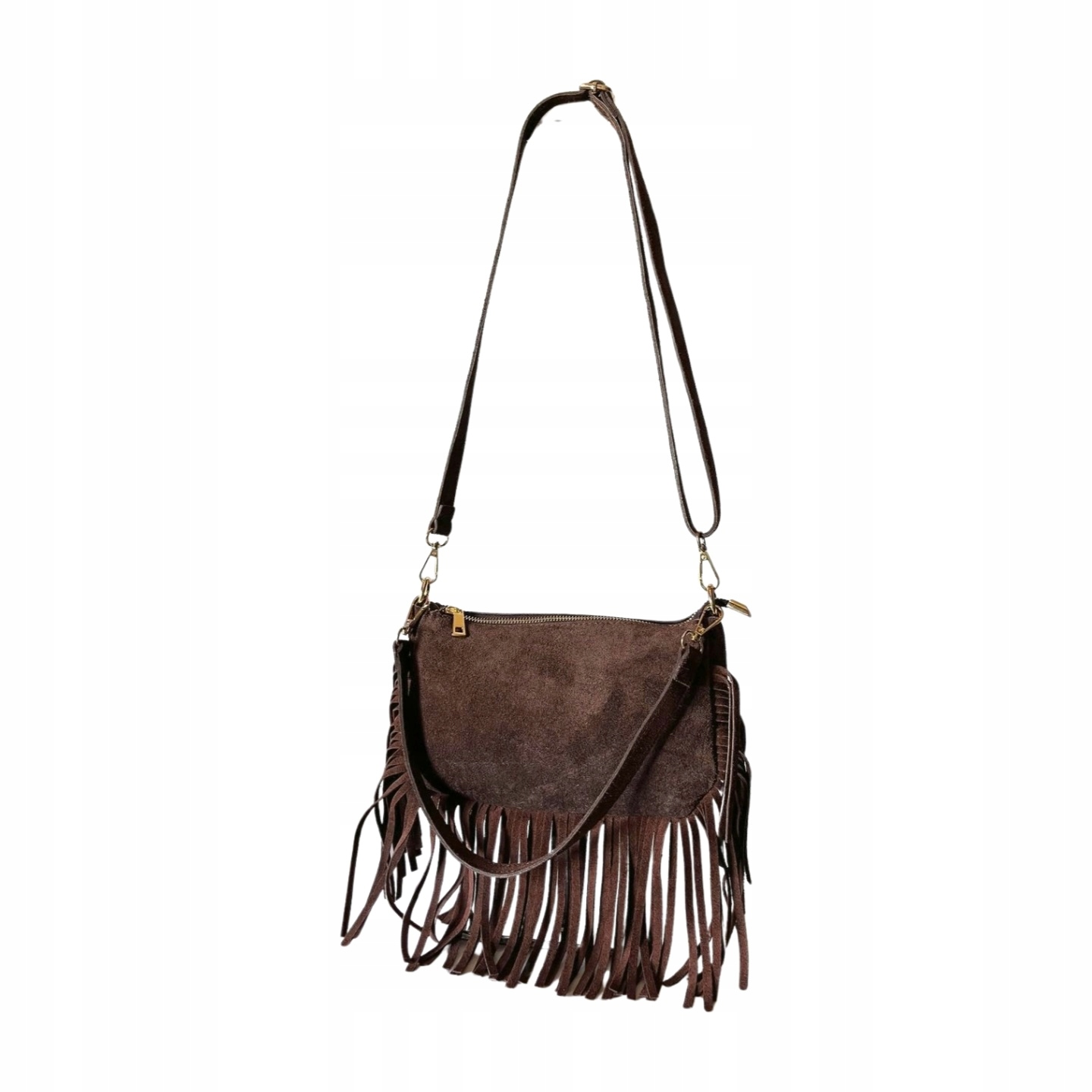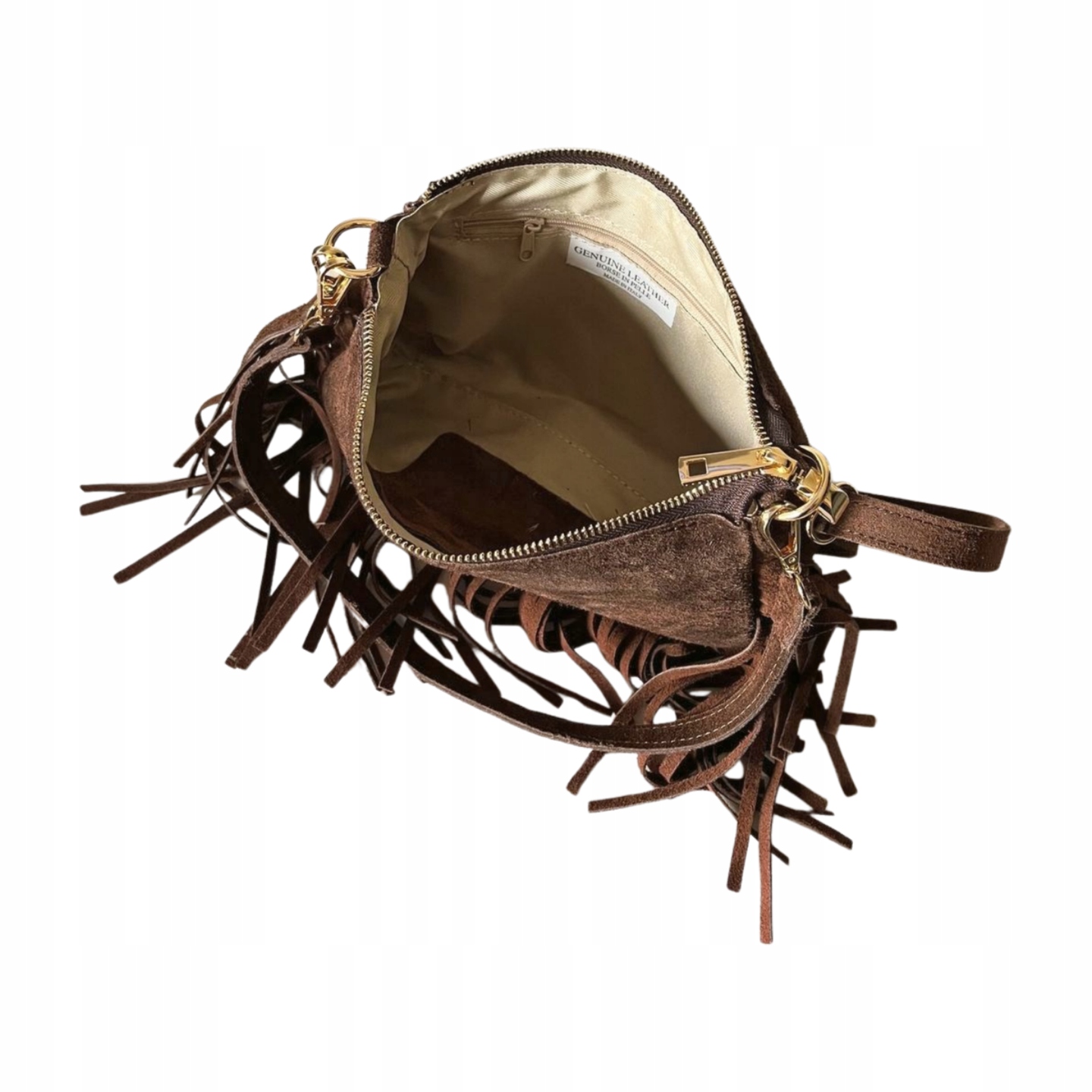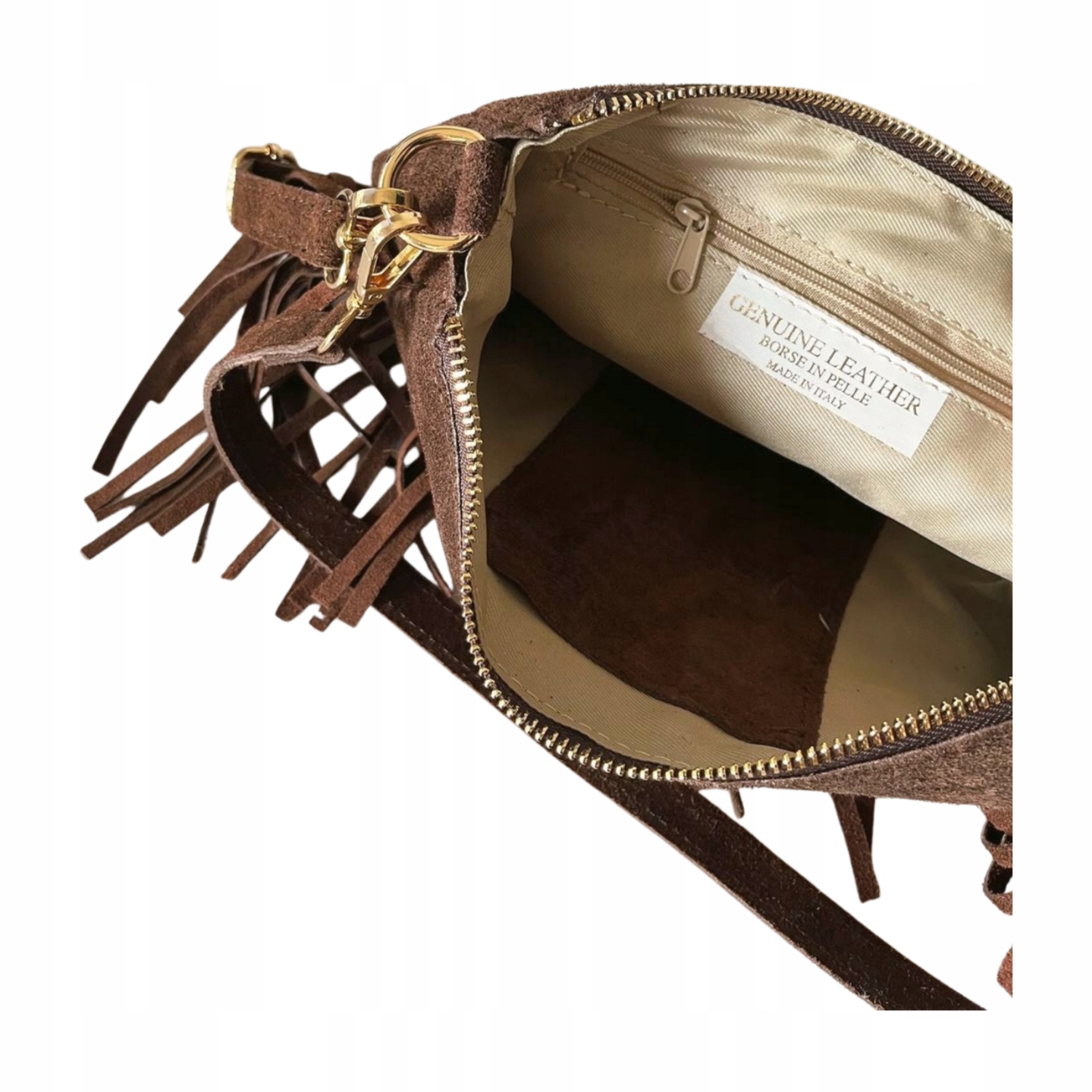 Vera Pelle - Włoska czekoladowa skórzana torebka listonoszka wykonana z wysokogatunkowej naturalnej skóry zamszowej.