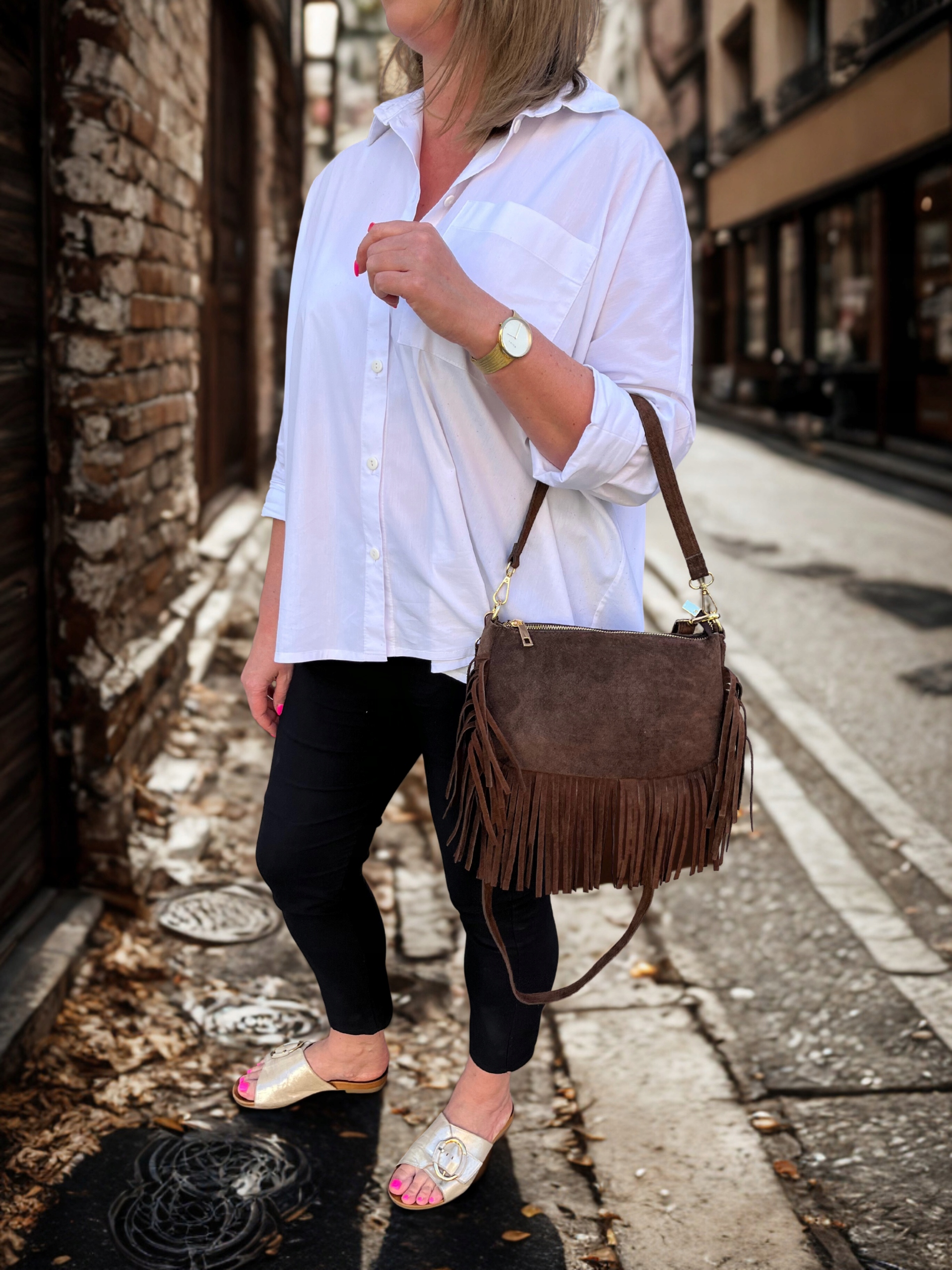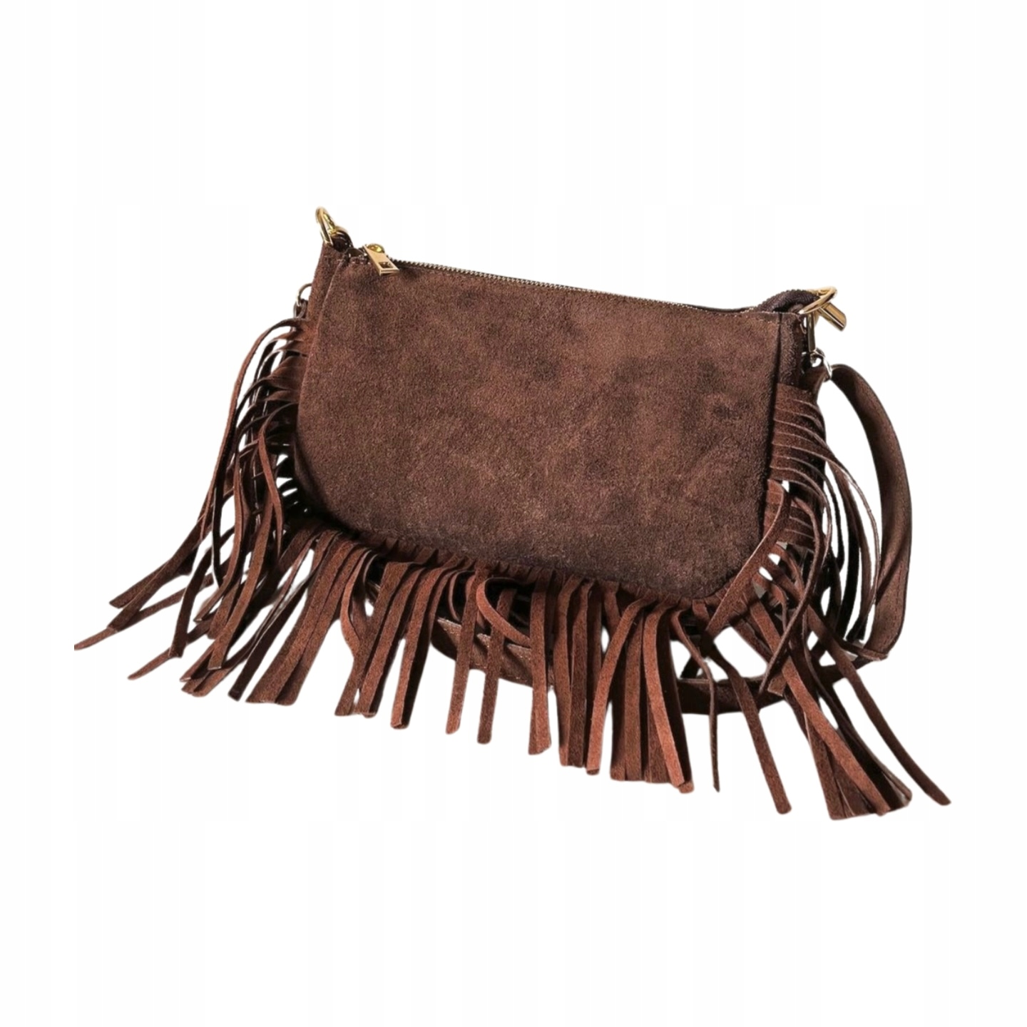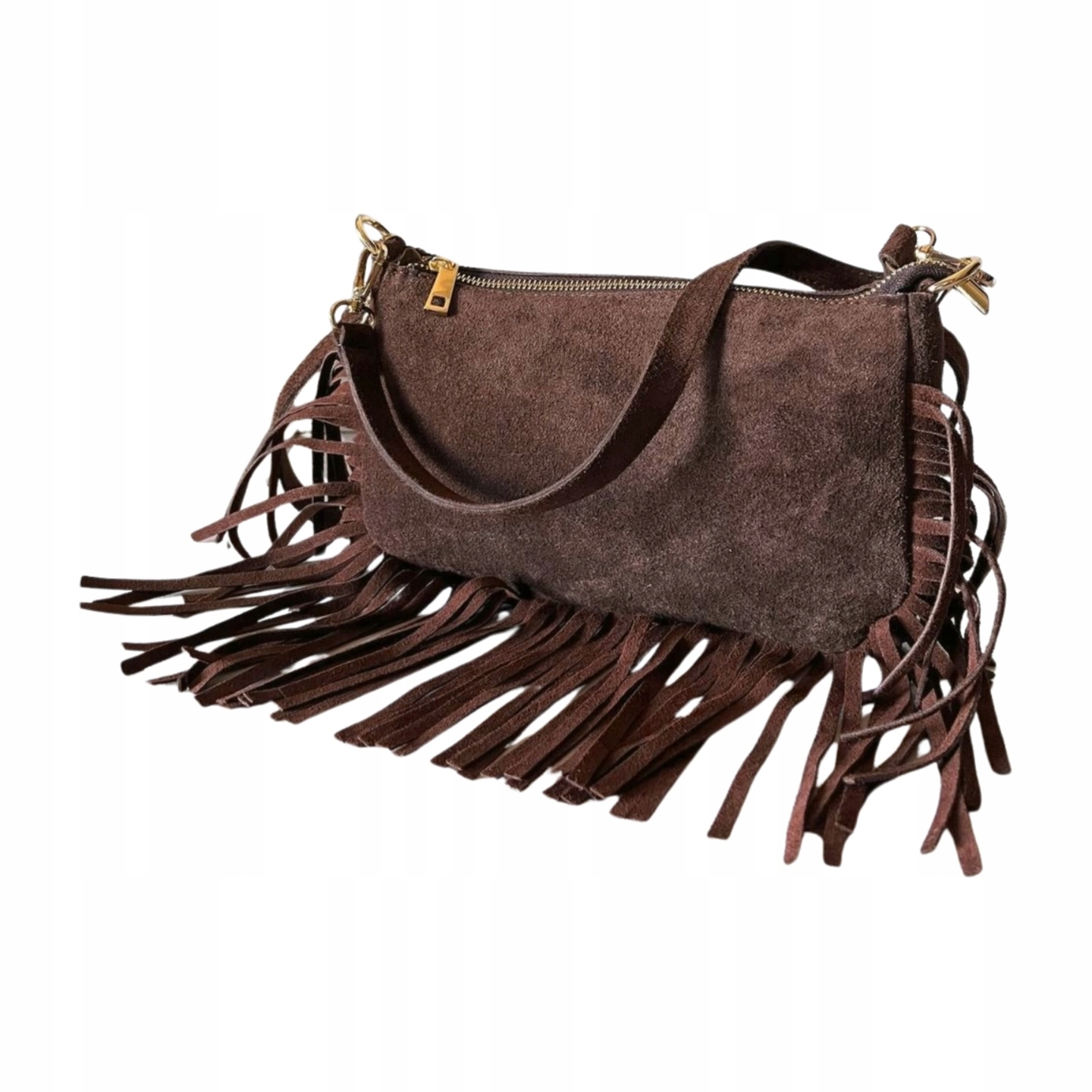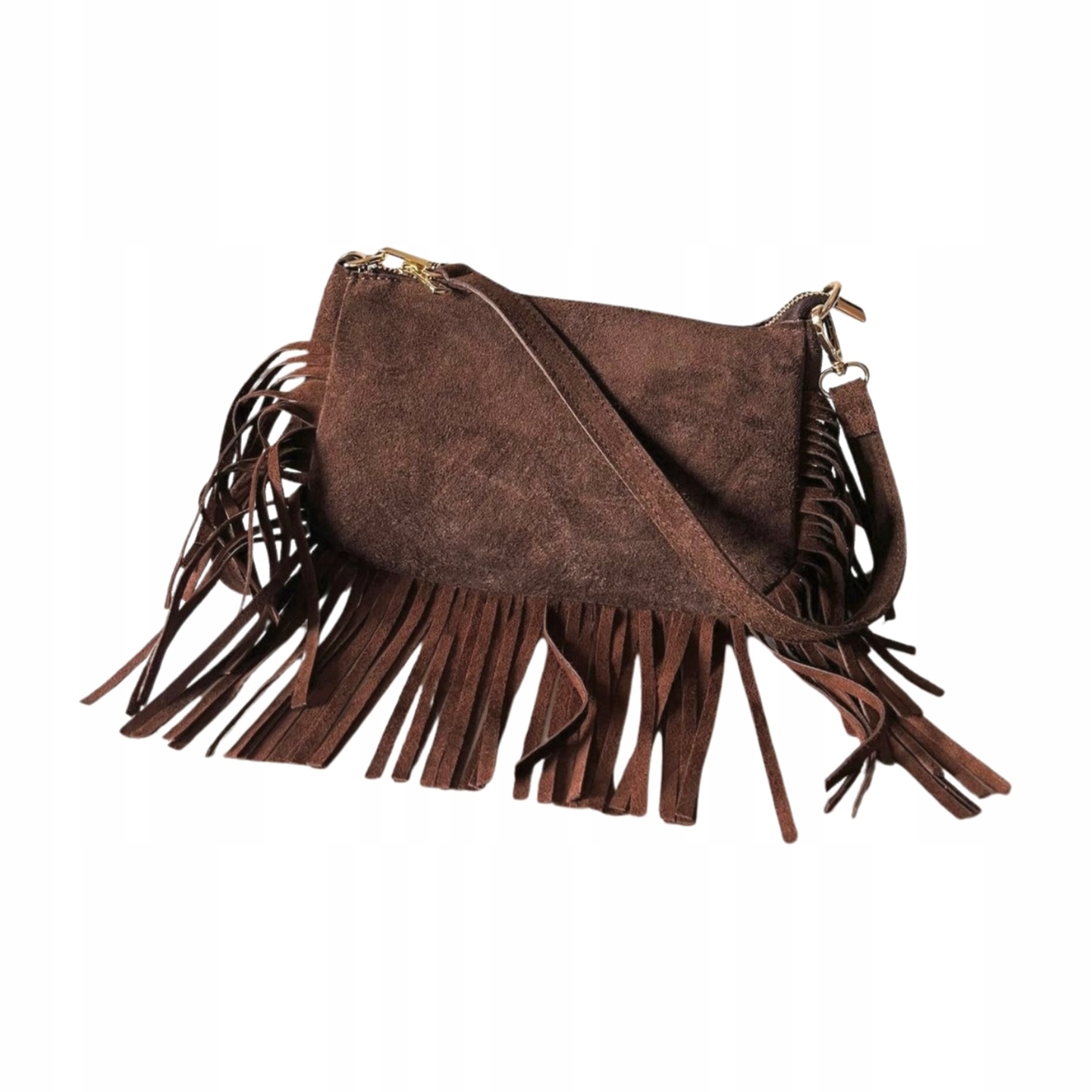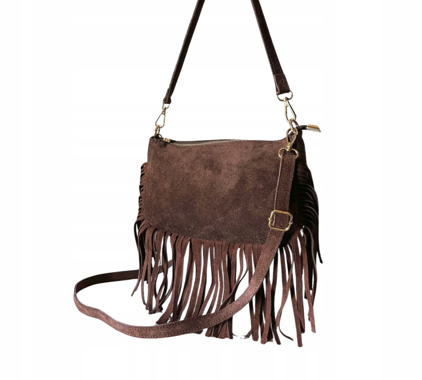 Vera Pelle - Włoska czekoladowa skórzana torebka listonoszka wykonana z wysokogatunkowej naturalnej skóry zamszowej.