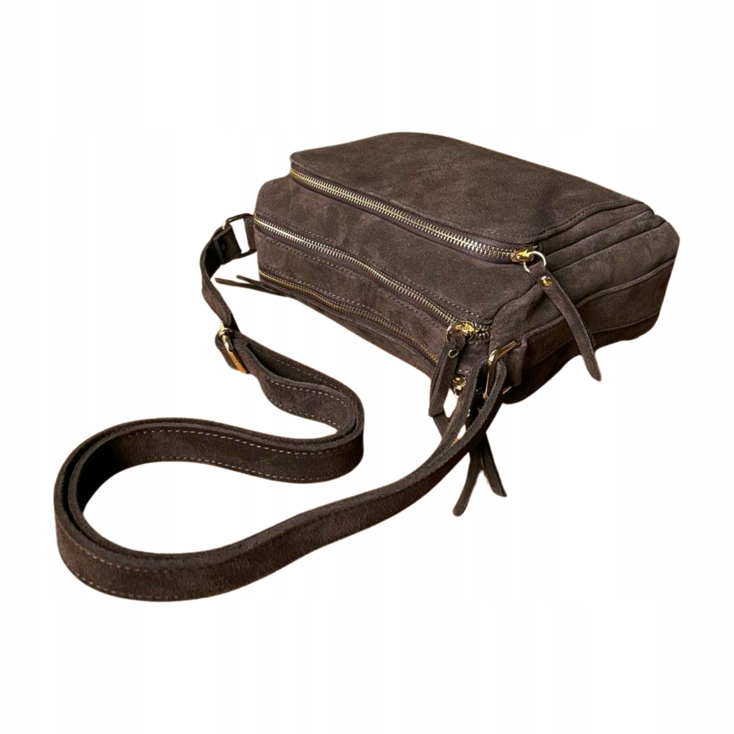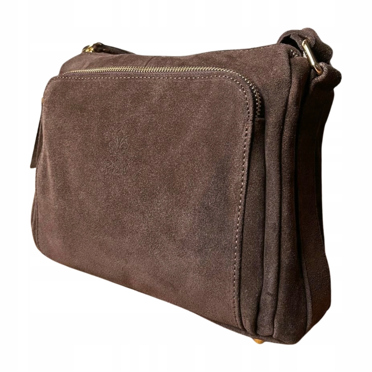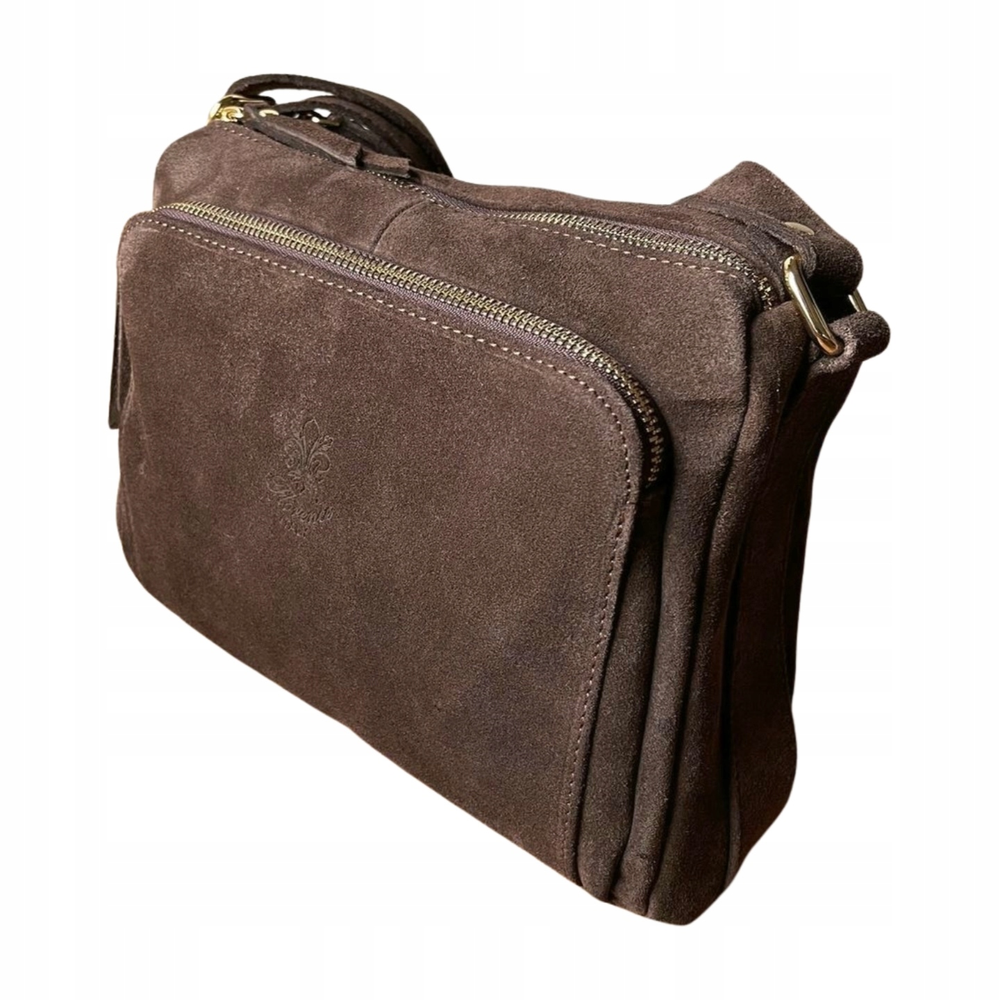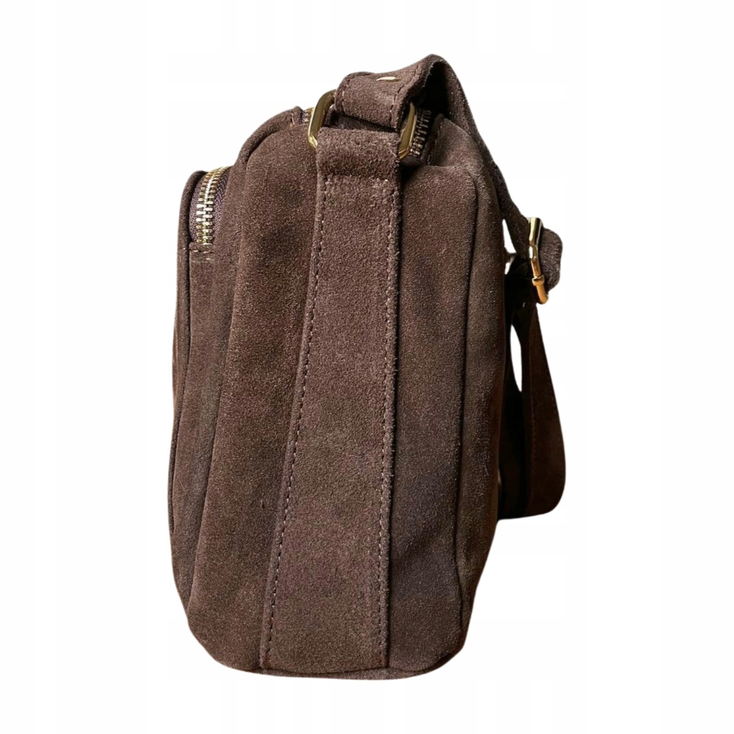 Vera Pelle - Włoska czekoladowa skórzana torebka listonoszka wykonana z wysokogatunkowej miękkiej naturalnej skóry zamszowej.