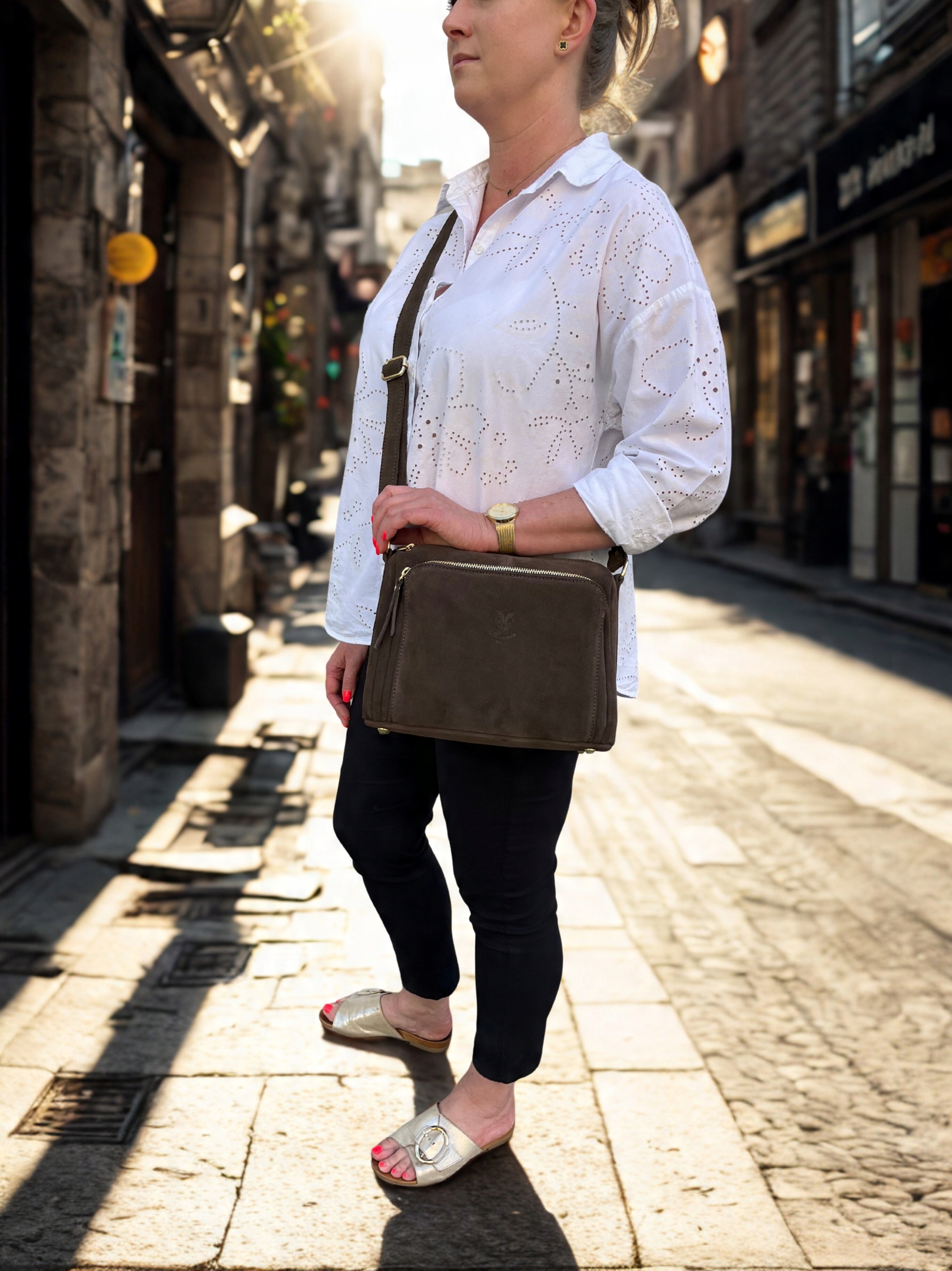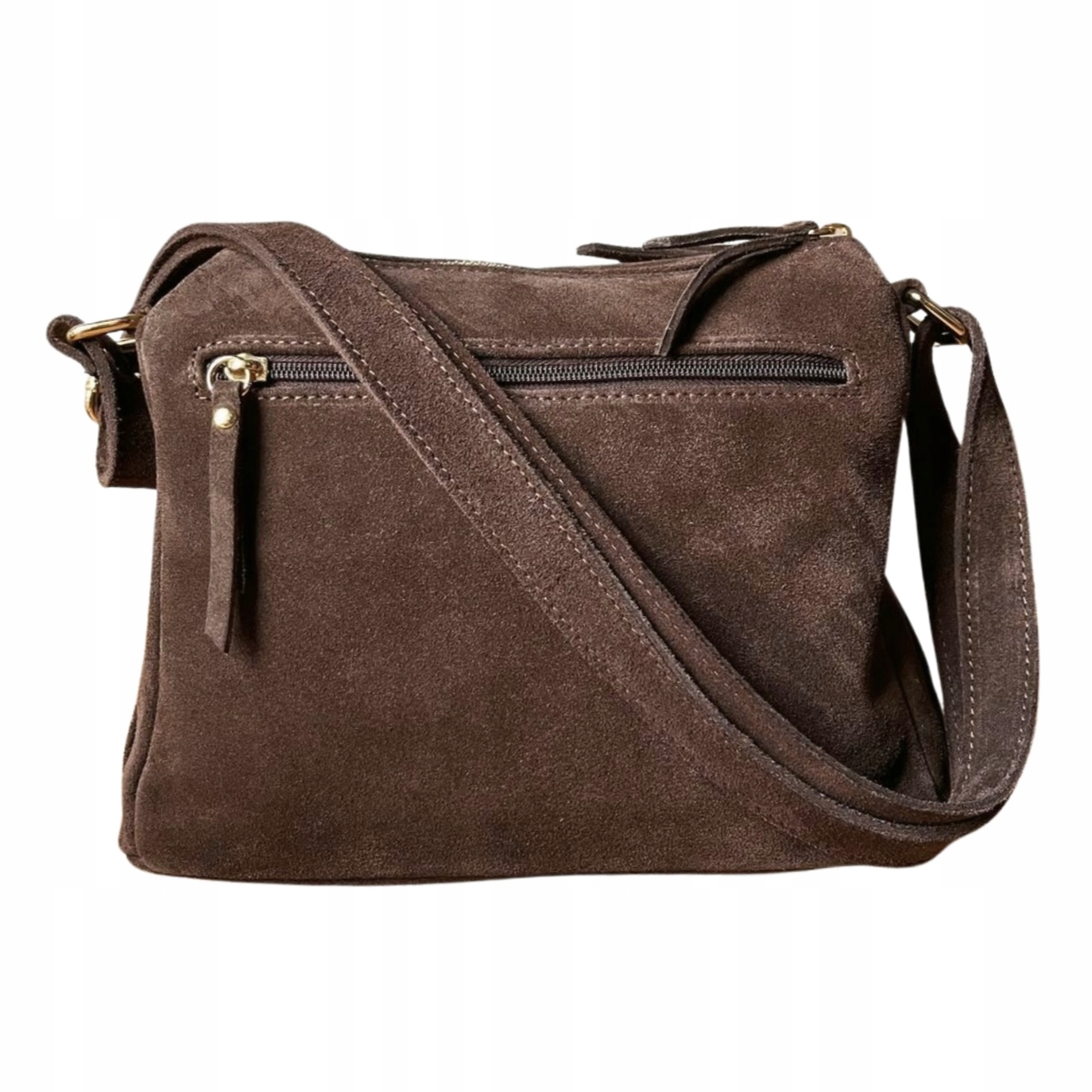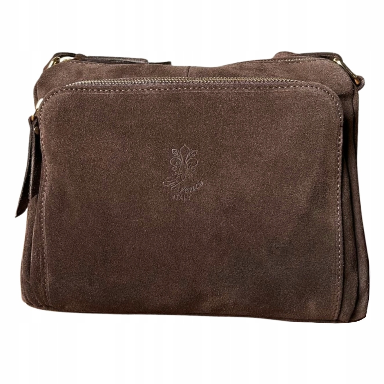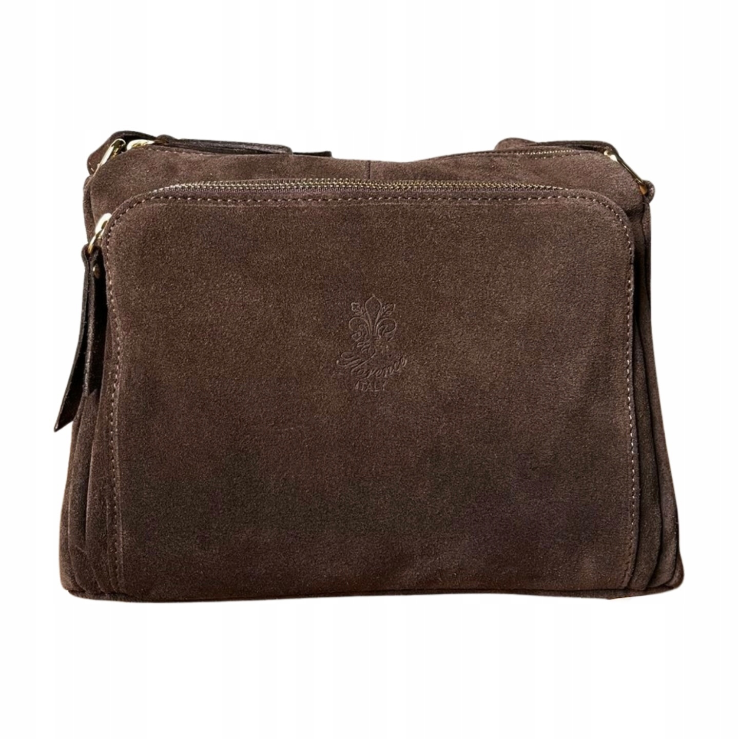 Vera Pelle - Włoska czekoladowa skórzana torebka listonoszka wykonana z wysokogatunkowej miękkiej naturalnej skóry zamszowej.