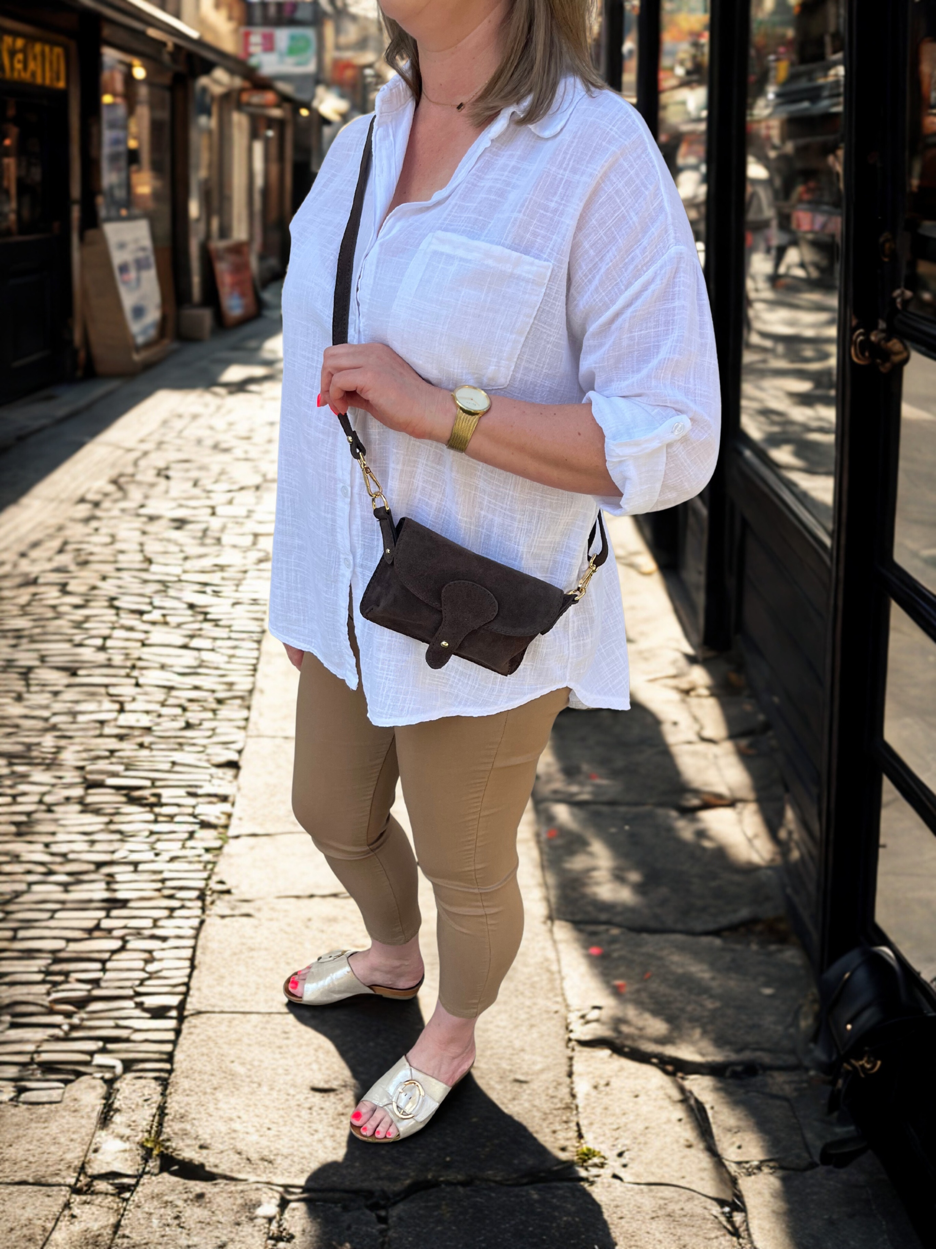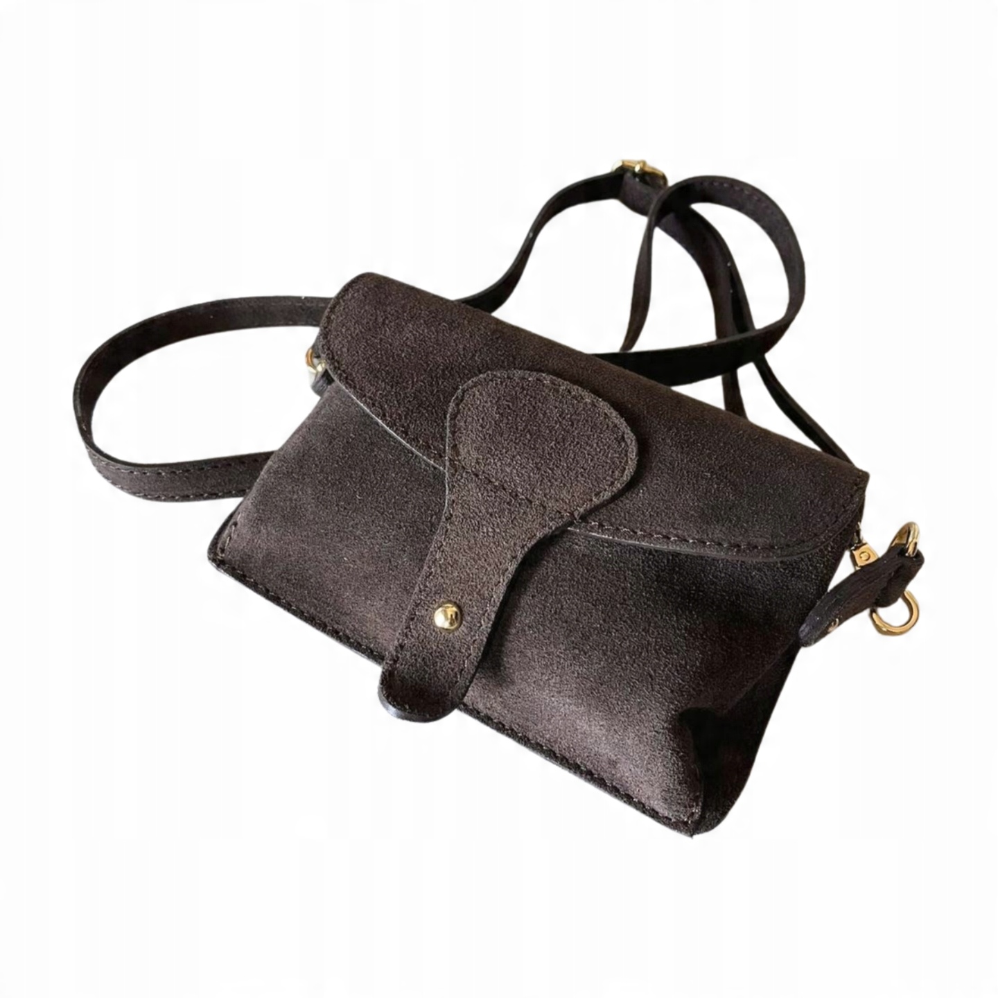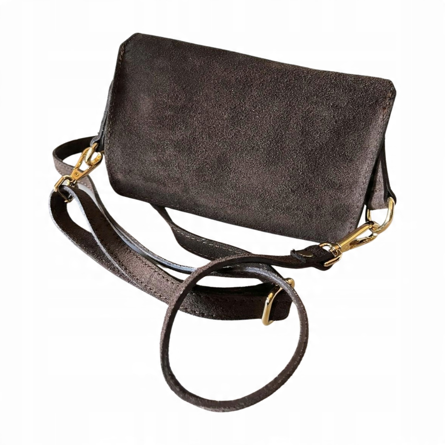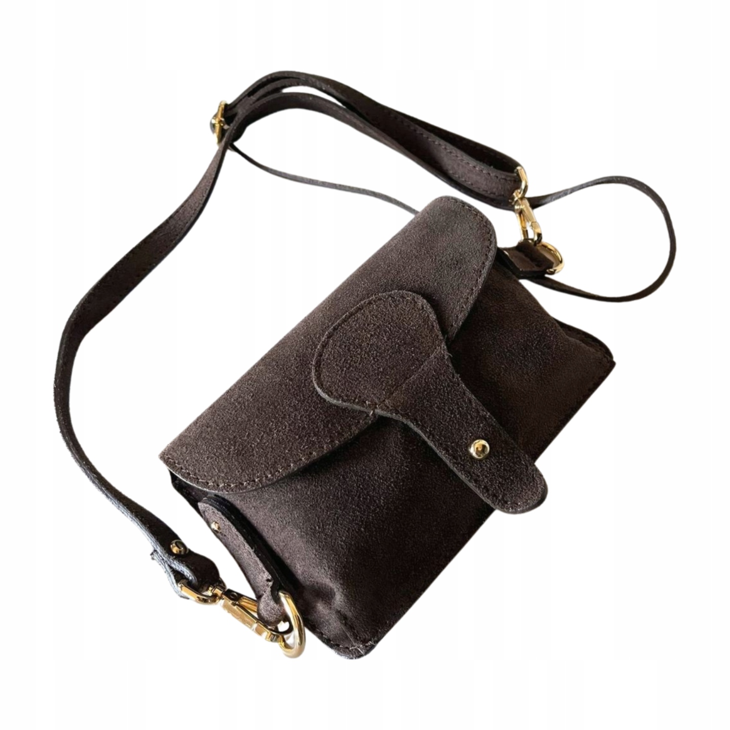 Vera Pelle - Włoska skórzana torebka listonoszka wykonana z wysokogatunkowej naturalnej skóry zamszowej.
