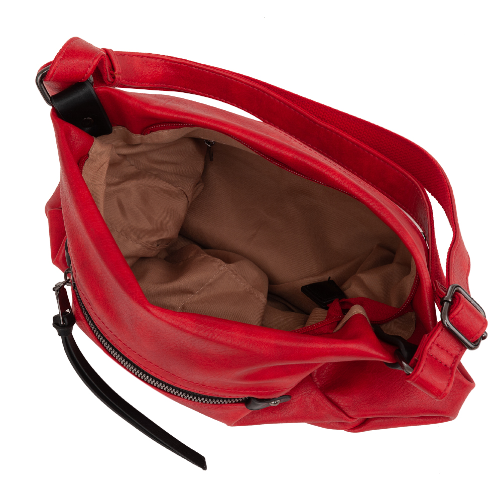 Modna, pojemna torebka listonoszka wykonana z wysokogatunkowej miękkiej skóry ekologicznej. Zamykana na zamek. Torebka jednokomorowa, w środku kieszonka na zamek, wsuwna kieszeń na drobiazgi, klucze + kieszonka na zamek. Wnętrze wykończone trwałą podszewką kolorystycznie dopasowaną do skóry. Długi, regulowany pasek umożliwia wygodne noszenie na ramieniu lub przez ramię jak listonoszkę. Dodatkowo kieszonka z przodu + pojemna kieszonka na zamek z tyłu. Maksymalna długość paska 132 cm.