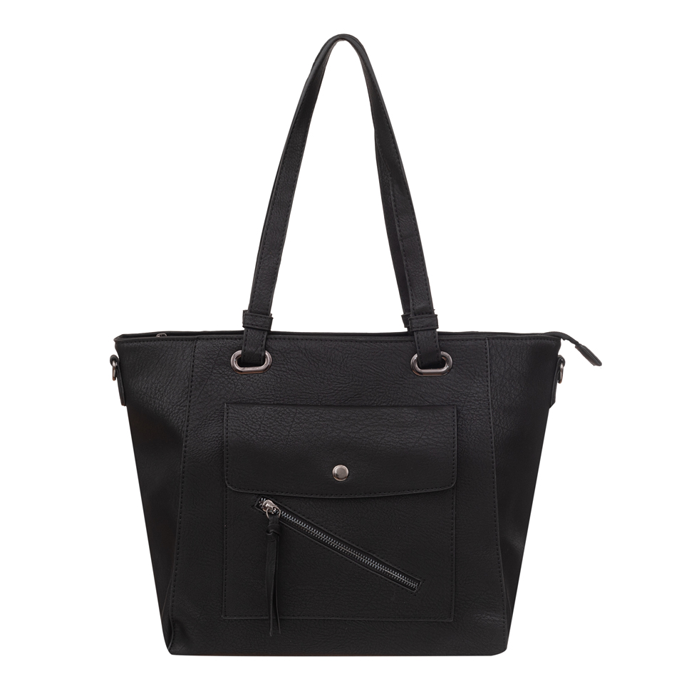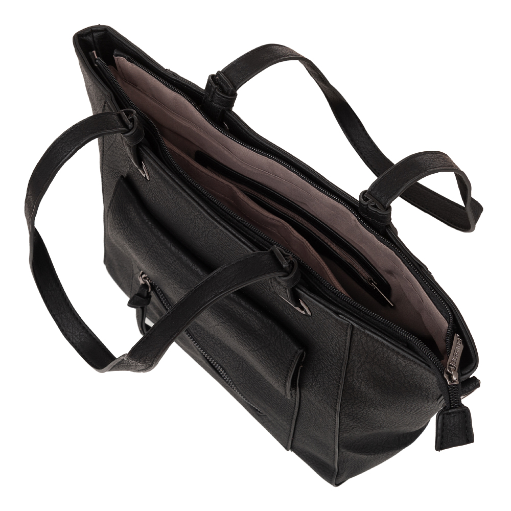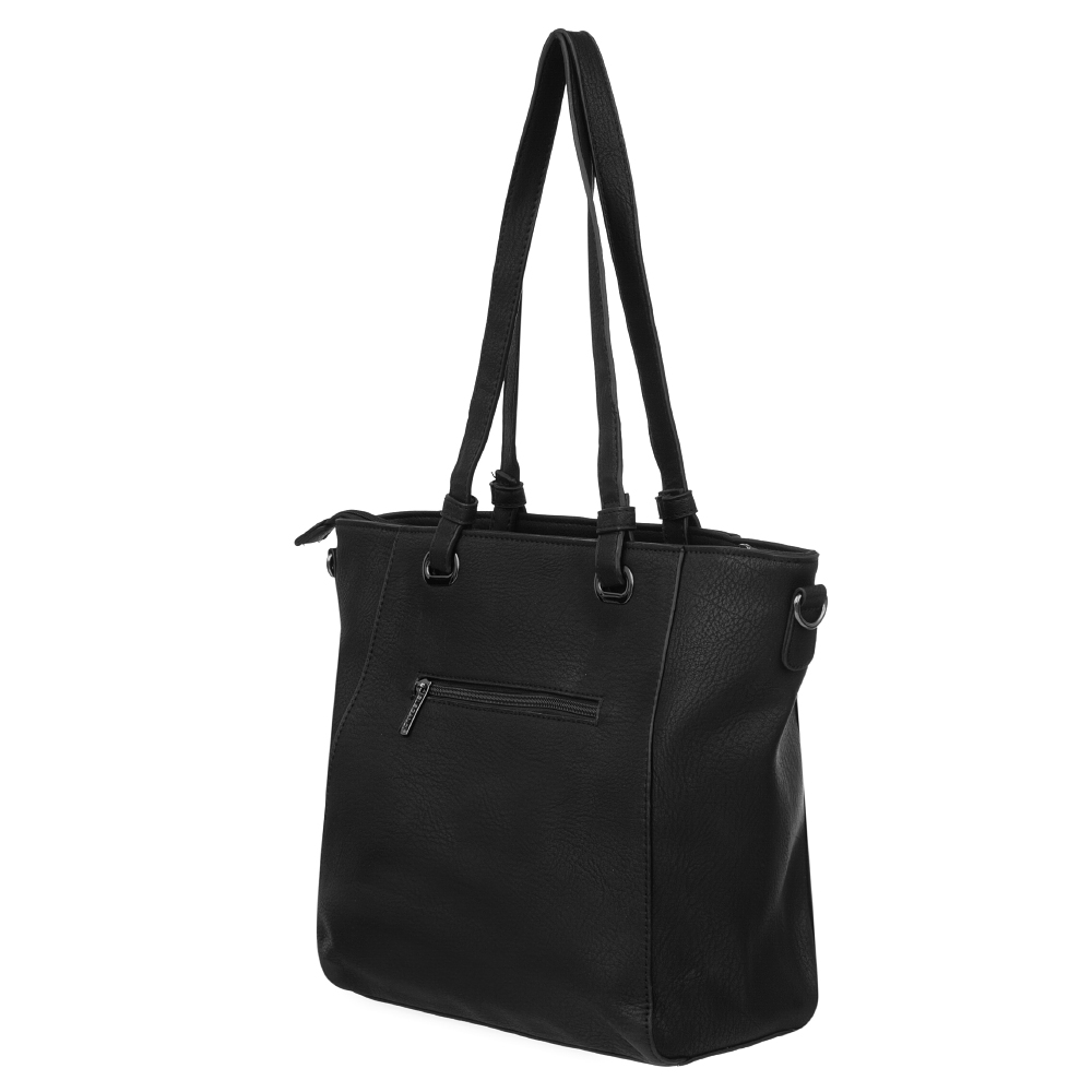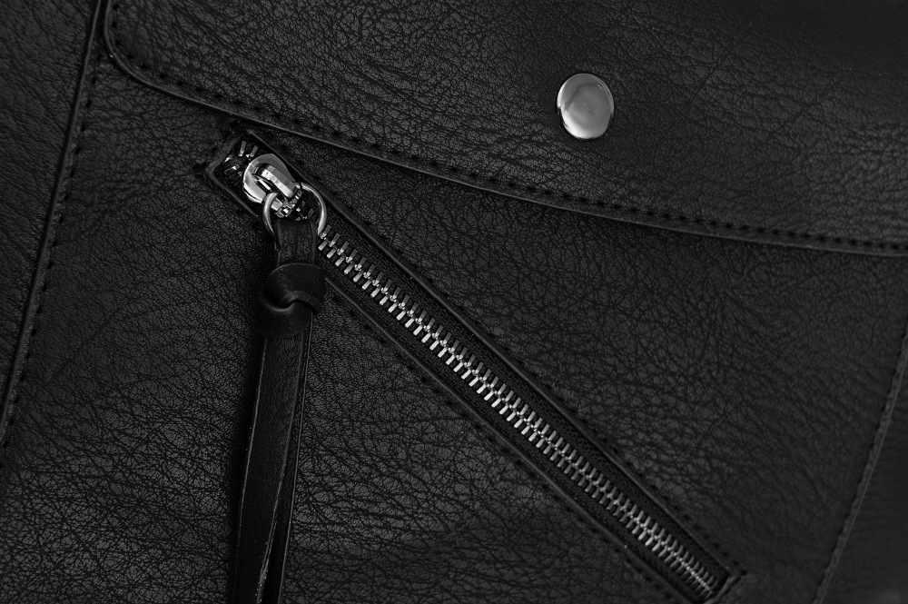 Modna, klasyczna A4 torebka wykonana z wysokogatunkowej gładkiej skóry ekologicznej wysokiej jakości. Zamykana z góry na zamek na całej szerokości. Torebka jednokomorowa, zorganizowana w środku i przedzielona dużą kieszenią na zamek. Wewnątrz 2 kieszonki na zamek, jedna na telefon + dodatkowa kieszeń na drobiazgi. Wnętrze wykończone trwałą, materiałową podszewką. Dodatkowo z tyłu torebki kieszonka na suwak + z przodu kieszeń na zamek i pod klapą na magnes. Torebka od spodu usztywniona. Elementy wykończenia w kolorze srebrnym (inox). W komplecie długi regulowany pasek na ramię o długości max. 115 cm.