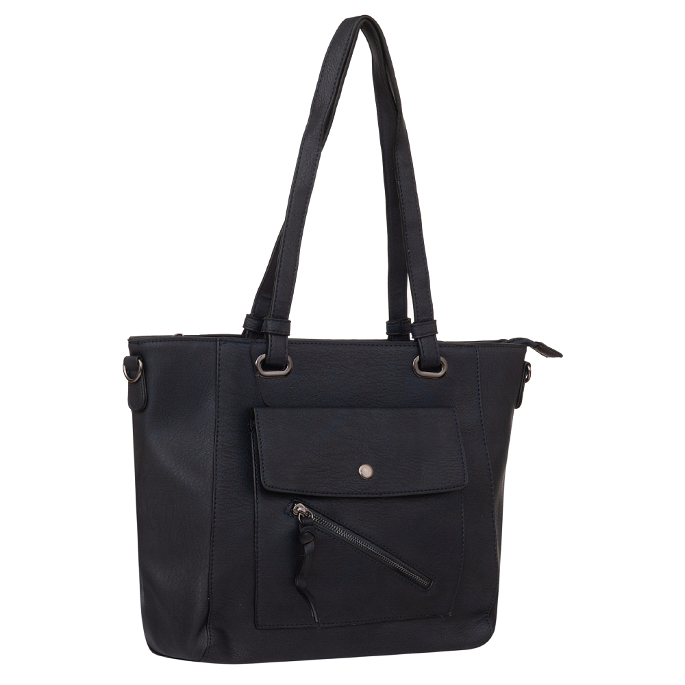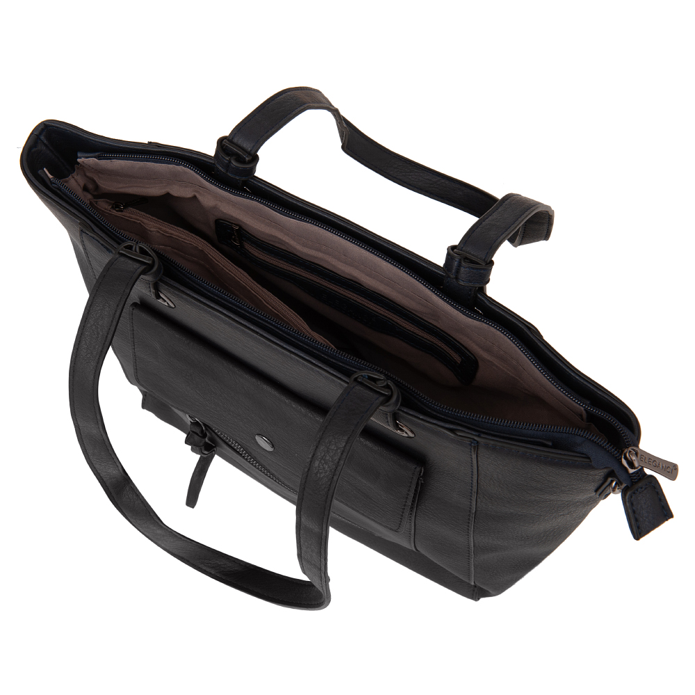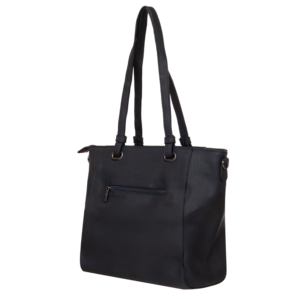 Modna, klasyczna A4 torebka wykonana z wysokogatunkowej gładkiej skóry ekologicznej wysokiej jakości. Zamykana z góry na zamek na całej szerokości. Torebka jednokomorowa, zorganizowana w środku i przedzielona dużą kieszenią na zamek. Wewnątrz 2 kieszonki na zamek, jedna na telefon + dodatkowa kieszeń na drobiazgi. Wnętrze wykończone trwałą, materiałową podszewką. Dodatkowo z tyłu torebki kieszonka na suwak + z przodu kieszeń na zamek i pod klapą na magnes. Torebka od spodu usztywniona. Elementy wykończenia w kolorze srebrnym (inox). W komplecie długi regulowany pasek na ramię o długości max. 115 cm.
