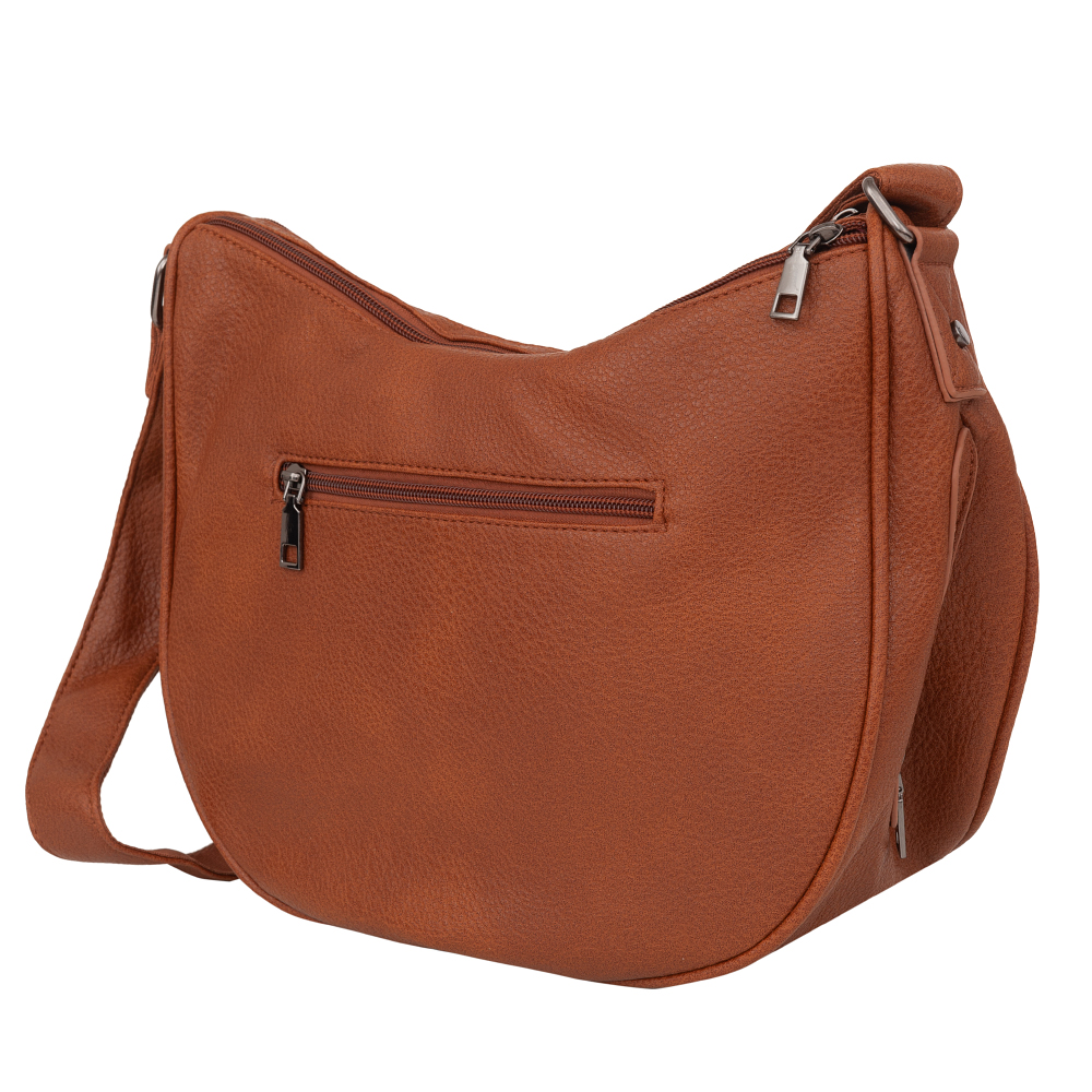 MUST HAVE - Modna, klasyczna torebka listonoszka w miejskim stylu wykonana z wysokogatunkowej skóry ekologicznej wysokiej jakości. Zamykana z góry na zamek na całej szerokości torebki. Torba dwukomorowa, zorganizowana w środku + wewnątrz kieszonka na zamek, jedna na telefon + dodatkowa kieszeń na zamek z tyłu. Po bokach torebki małe pionowe kieszonki na zamek. Wnętrze wykończone trwałą materiałową bawełnianą podszewką. Elementy wykończenia w kolorze srebrnym. Długi regulowany pasek parciano-skórzany na ramię o długości max. 123 cm.