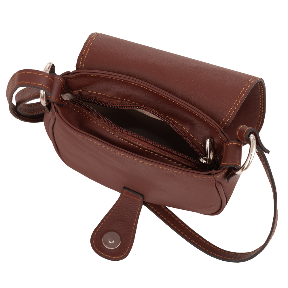 Włoska skórzana listonoszka wykonana z wysokogatunkowej naturalnej gładkiej skóry cielęcej. Zamykana na dużą klapę na magnes + suwak. Torebka jednokomorowa, wewnątrz jedna kieszonka na zamek. Wnętrze wykończone trwałą podszewką. Długi, regulowany pasek umożliwia wygodne noszenie na ramieniu.