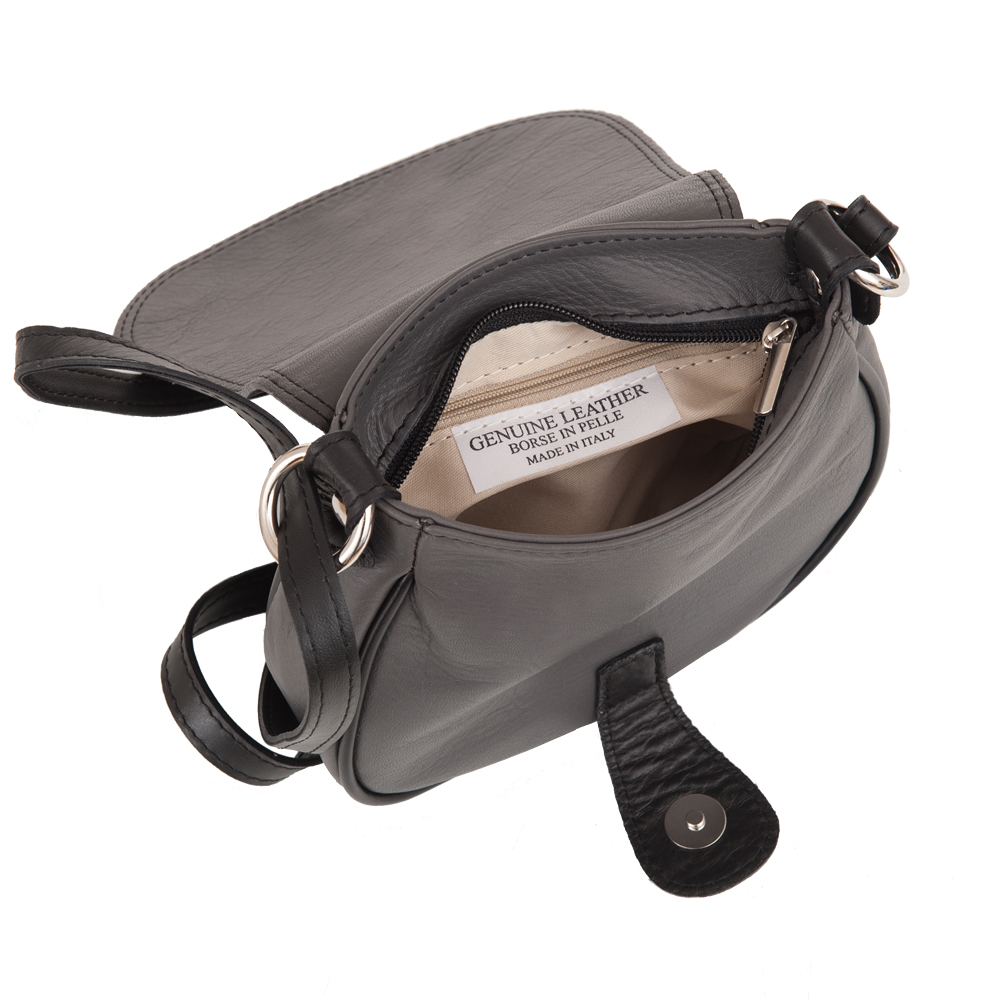 Włoska skórzana listonoszka wykonana z wysokogatunkowej naturalnej gładkiej skóry cielęcej. Zamykana na dużą klapę na magnes + suwak. Torebka jednokomorowa, wewnątrz jedna kieszonka na zamek. Wnętrze wykończone trwałą podszewką. Długi, regulowany pasek umożliwia wygodne noszenie na ramieniu.