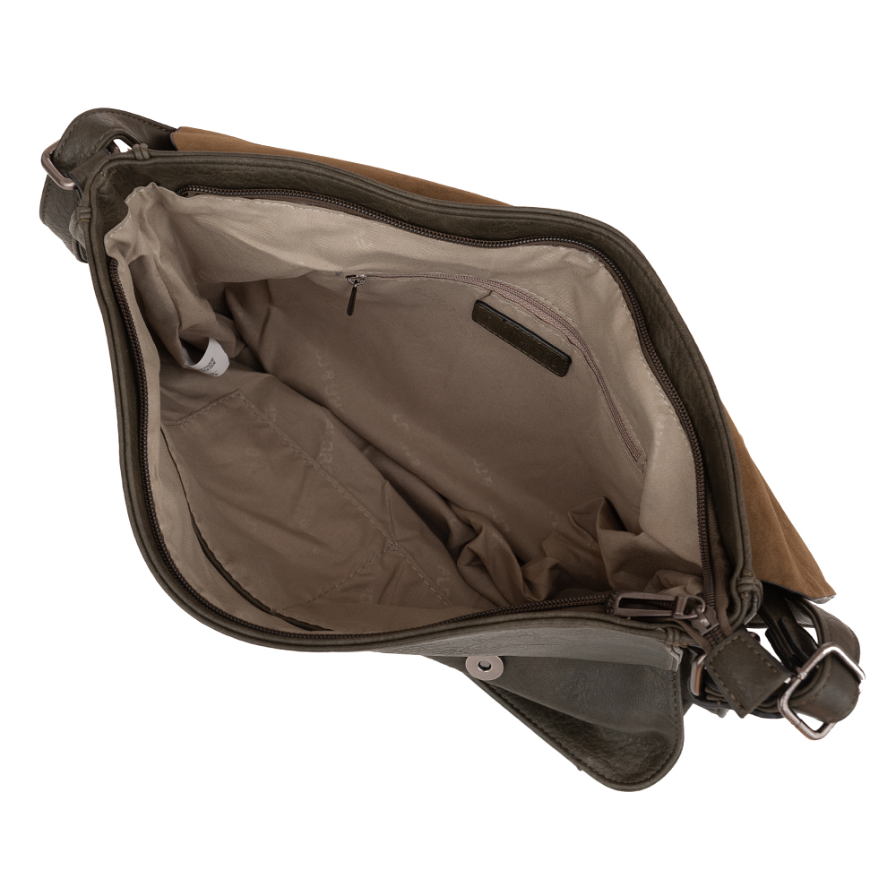 Modna torebka A4 wykonana z wysokogatunkowej miękkiej skóry ekologicznej najwyższej jakości. Zamykana na zamek na całej szerokości + klapa na dwa magnesy. Torba jednokomorowa + w środku kieszonka na zamek oraz jedna na telefon + kieszonka wsuwna na klucze, drobiazgi. Wnętrze wykończone trwałą, materiałową podszewką kolorystycznie dopasowaną do skóry. Szerokie wygodne, regulowane ucho do noszenia na ramieniu. Dodatkowa pojemna kieszonka na zamek z tyłu. Srebrne metalowe dodatki.