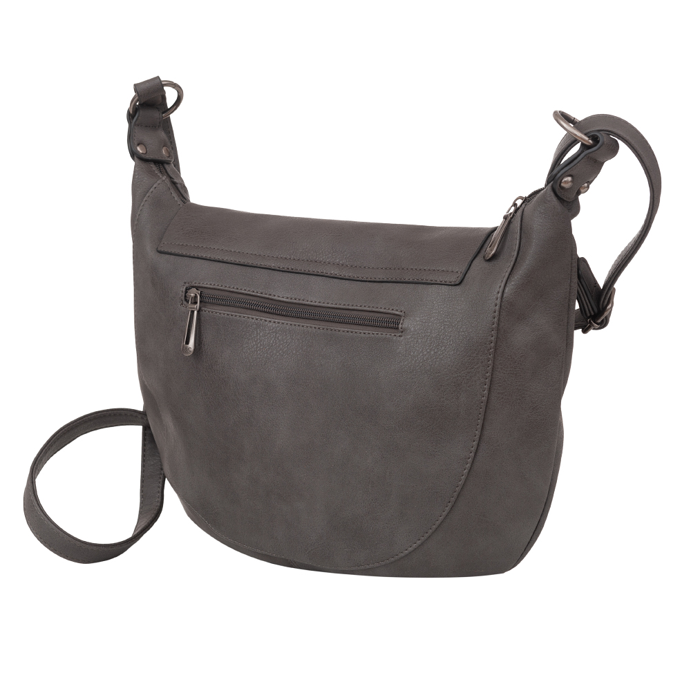 Modna torebka wykonana z wysokogatunkowej miękkiej skóry ekologicznej. Zamykana na suwak + klapa. Torebka jednokomorowa przedzielona dużą kieszenią na suwak na całą szerokość torebki + w środku jedna kieszonka na zamek oraz jedna na telefon. Wnętrze wykończone trwałą podszewką kolorystycznie dopasowaną do skóry. Długi, regulowany pasek umożliwia wygodne noszenie na ramieniu lub przez ramię jak listonoszkę. Dodatkowa kieszonka na zamek z tyłu.