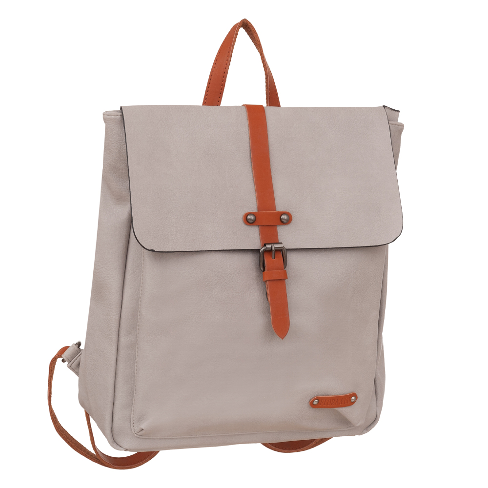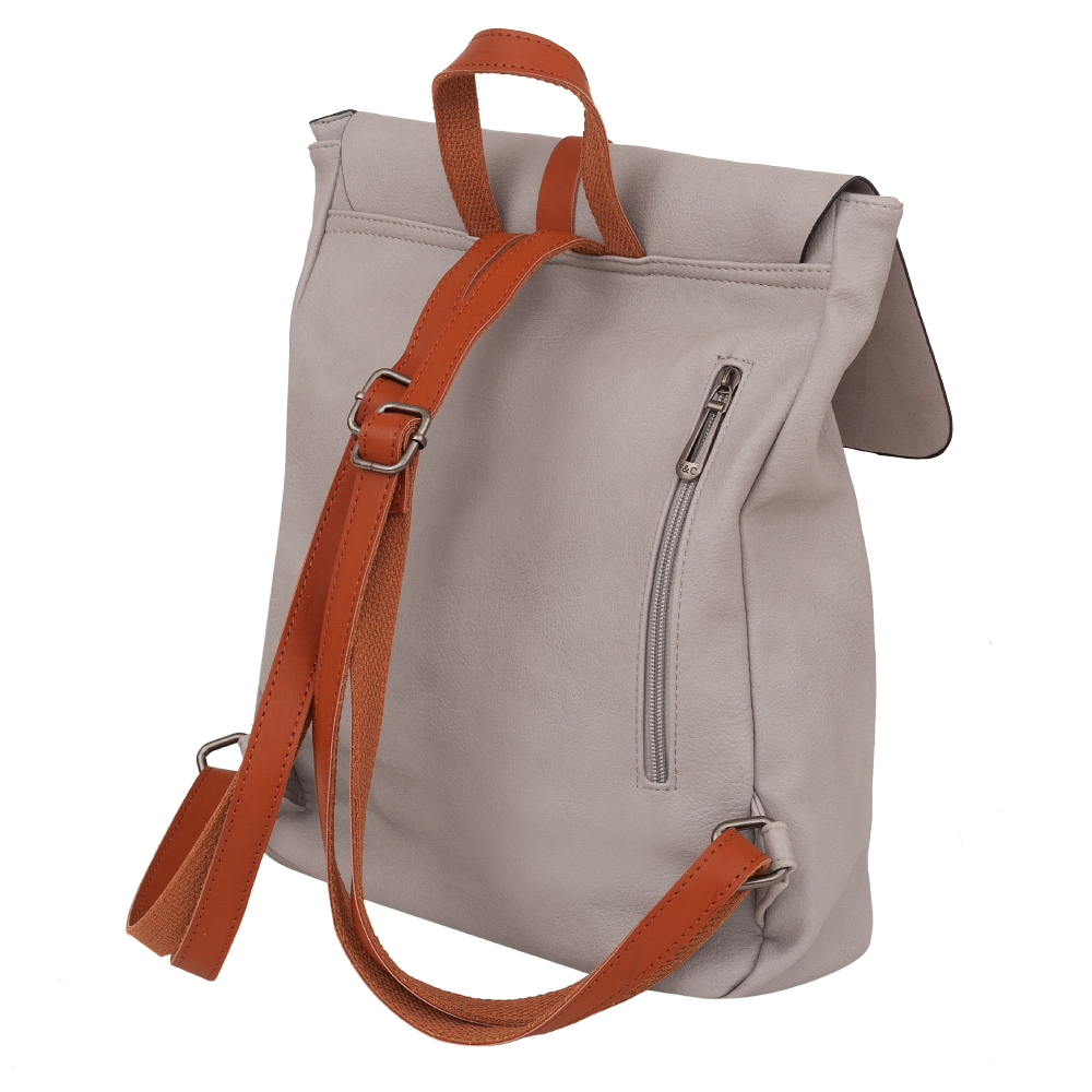 Modny A4 plecak torba - wykonany z wysokogatunkowej gładkiej skóry ekologicznej wysokiej jakości. Zamykana z góry na zamek na całej szerokości + klapa na magnes. Plecak jednokomorowy, zorganizowany w środku + wewnątrz 2 kieszonki na zamek, jedna na telefon + dodatkowa kieszeń na drobiazgi + kieszonka pod klapą na przodzie. Wnętrze wykończone trwałą, materiałową podszewką. Dodatkowo z tyłu pionowa kieszonka na zamek. Spód usztywniony. Elementy wykończenia w kolorze srebrnym (inox). Możliwość noszenia w dłoni lub jako plecak.