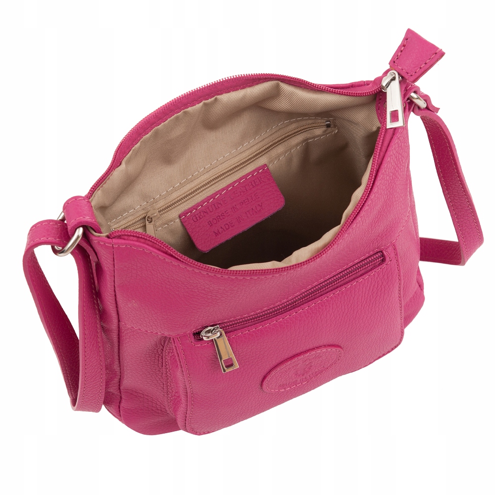 Vera Pelle - Włoska skórzana pojemna listonoszka wykonana z wysokogatunkowej skóry naturalnej. Zamykana szczelnie od góry na zamek na całej szerokości. Torebka jednokomorowa, wewnątrz jedna kieszonka na zamek + dwie wsuwne kieszonki m.in. na telefon. Wnętrze wykończone trwałą , materiałową podszewką. Długi, regulowany pasek umożliwia wygodne noszenie na ramieniu lub przez ramię jako listonoszka. Dodatkowa pojemna kieszeń z tyłu na zamek + kieszonka z przodu. Elementy wykończenia w kolorze srebrnym. Dno lekko usztywnione.