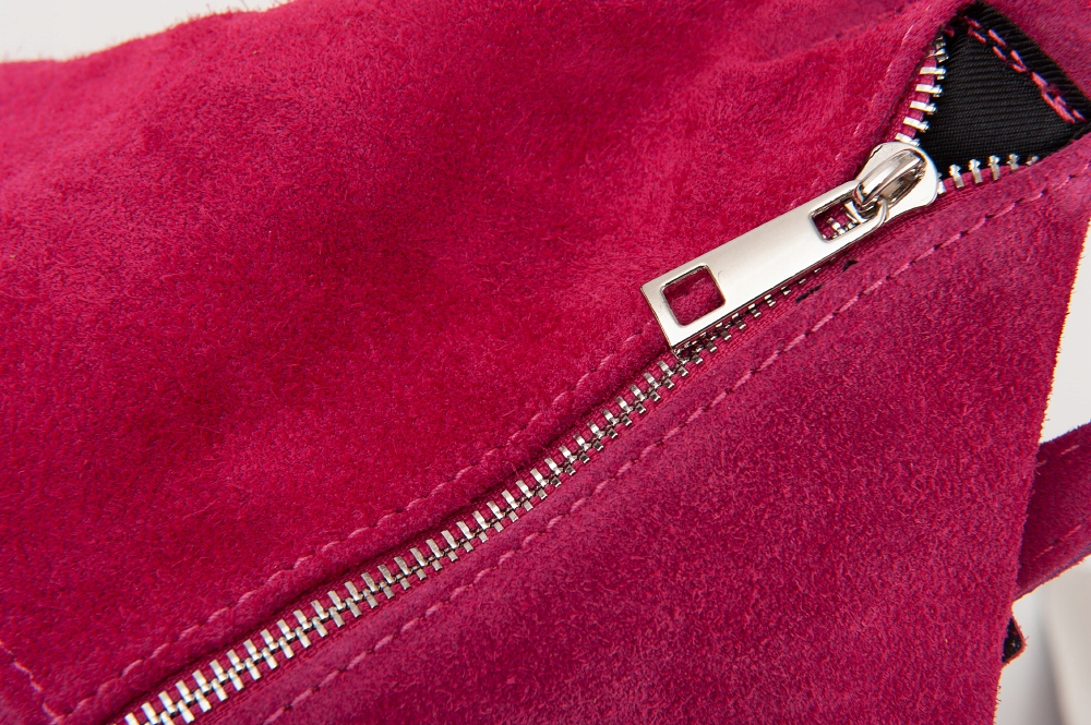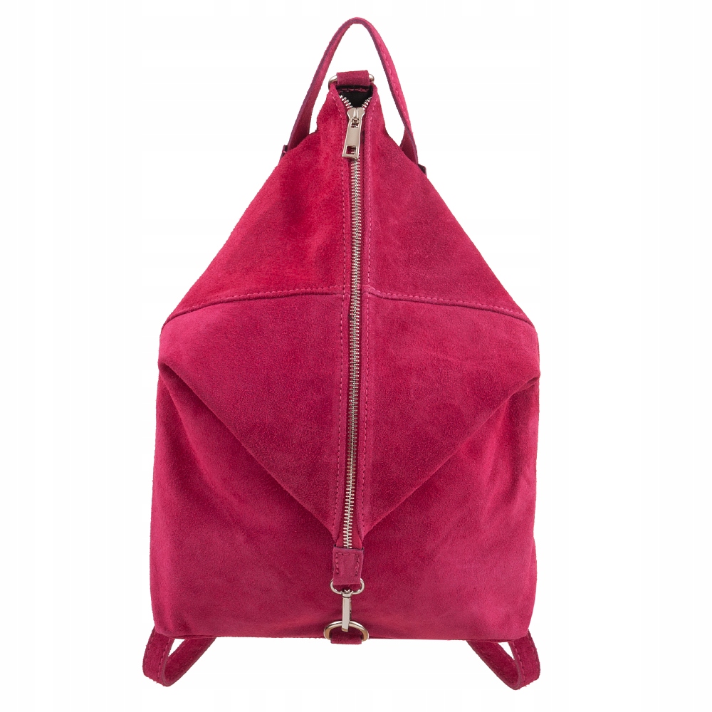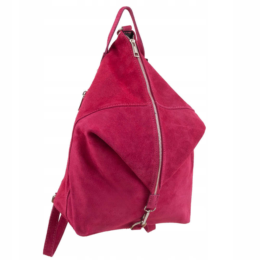 Vera Pelle Włoska skórzana torebka plecak wykonana w 100% z naturalnej miękkiej skóry zamszowej. Zamykana na zamek. Plecak jednokomorowy, wewnątrz jedna kieszonka na zamek, jedna na telefon. Dodatkowo z tyłu kieszonka na zamek. Wnętrze wykończone trwałą, materiałową czarną podszewką. Uszy regulowane na długość 46 - 92 cm, możliwość noszenia plecaka w ręce. Metalowe elementy w kolorze srebrnym.