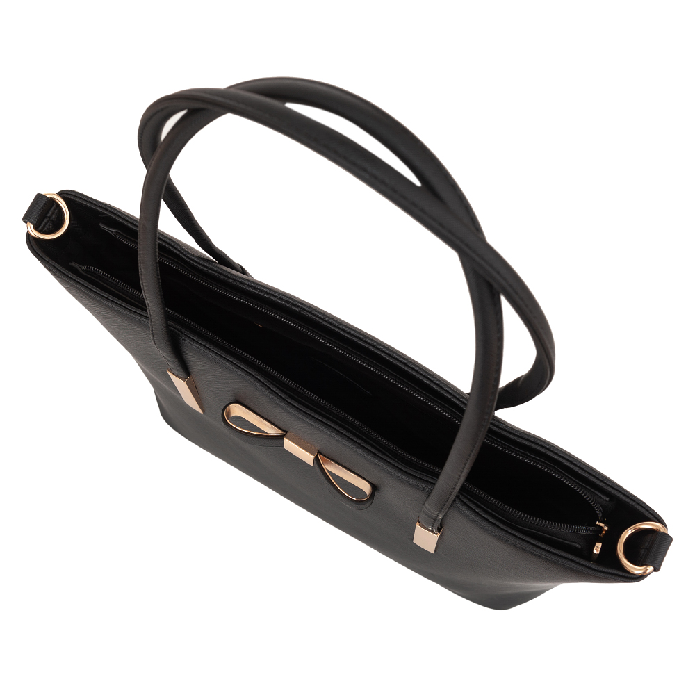 Modna, klasyczna A4 torebka wykonana z wysokogatunkowej gładkiej skóry ekologicznej wysokiej jakości. Zamykana z góry na zamek na całej szerokości. Torebka jednokomorowa. Wewnątrz 2 kieszonki na zamek, jedna na telefon + dodatkowa kieszeń na drobiazgi. Wnętrze wykończone trwałą, materiałową podszewką. Dodatkowo z tyłu torebki kieszonka na suwak. Torebka od spodu usztywniona. Elementy wykończenia w kolorze srebrnym.