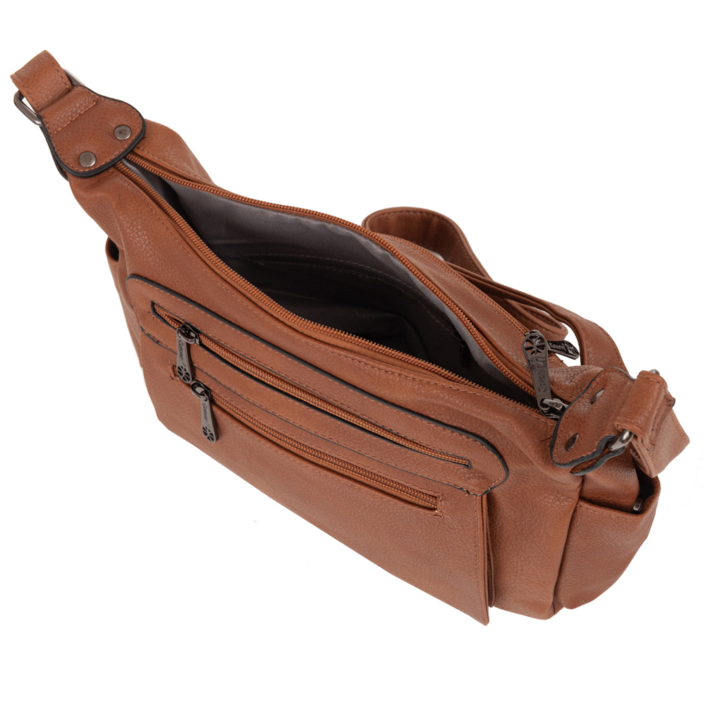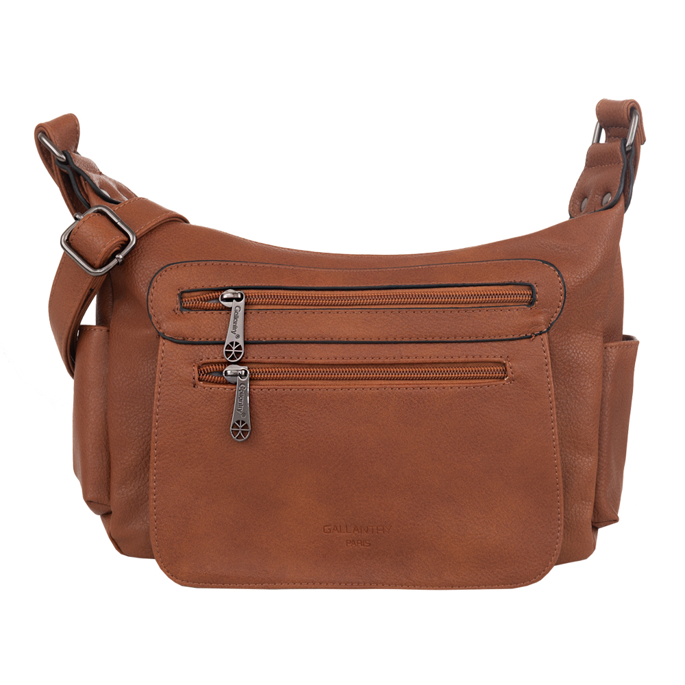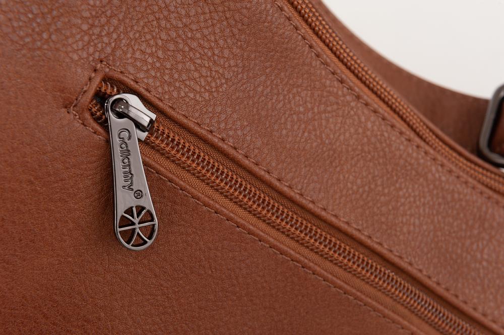 GALLANTRY pojemna torebka listonoszka wykonana z wysokogatunkowej miękkiej skóry ekologicznej. Zamykana na zamek. Torebka jednokomorowa, w środku kieszonka na zamek, kieszeń na telefon + miejsce na drobiazgi. Wnętrze wykończone trwałą materiałową podszewką kolorystycznie dopasowaną do torebki. Długi, szeroki regulowany pasek umożliwia wygodne noszenie na ramieniu lub przez ramię jak listonoszkę. Dodatkowe 2 kieszonki z przodu na zamek + pojemna kieszonka na zamek z tyłu. Maksymalna długość paska 132 cm.