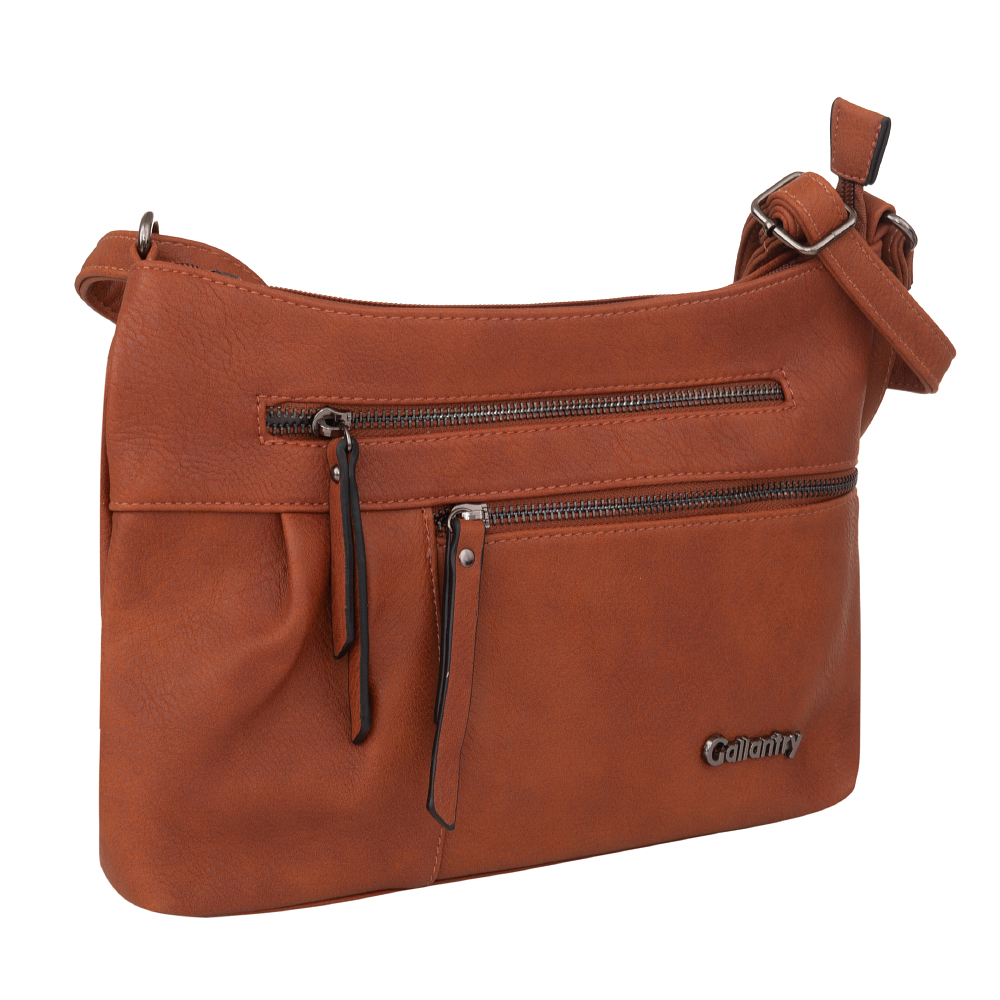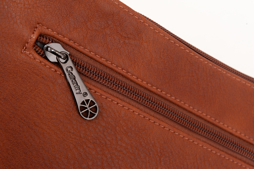 GALLANTRY pojemna torebka listonoszka wykonana z wysokogatunkowej miękkiej skóry ekologicznej. Zamykana na zamek. Torebka jednokomorowa, w środku kieszonka na zamek + kieszonka na telefon + wsuwna kieszeń na klucze, drobiazgi. Regulowany pasek umożliwia wygodne noszenie na ramieniu lub przez ramię jak listonoszkę. Dodatkowe 2 kieszonki z przodu + pojemna kieszonka na zamek z tyłu. Maksymalna długość paska 132 cm.