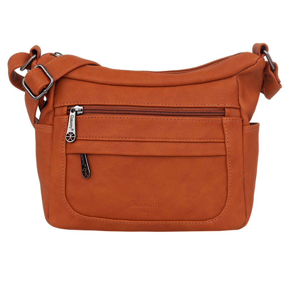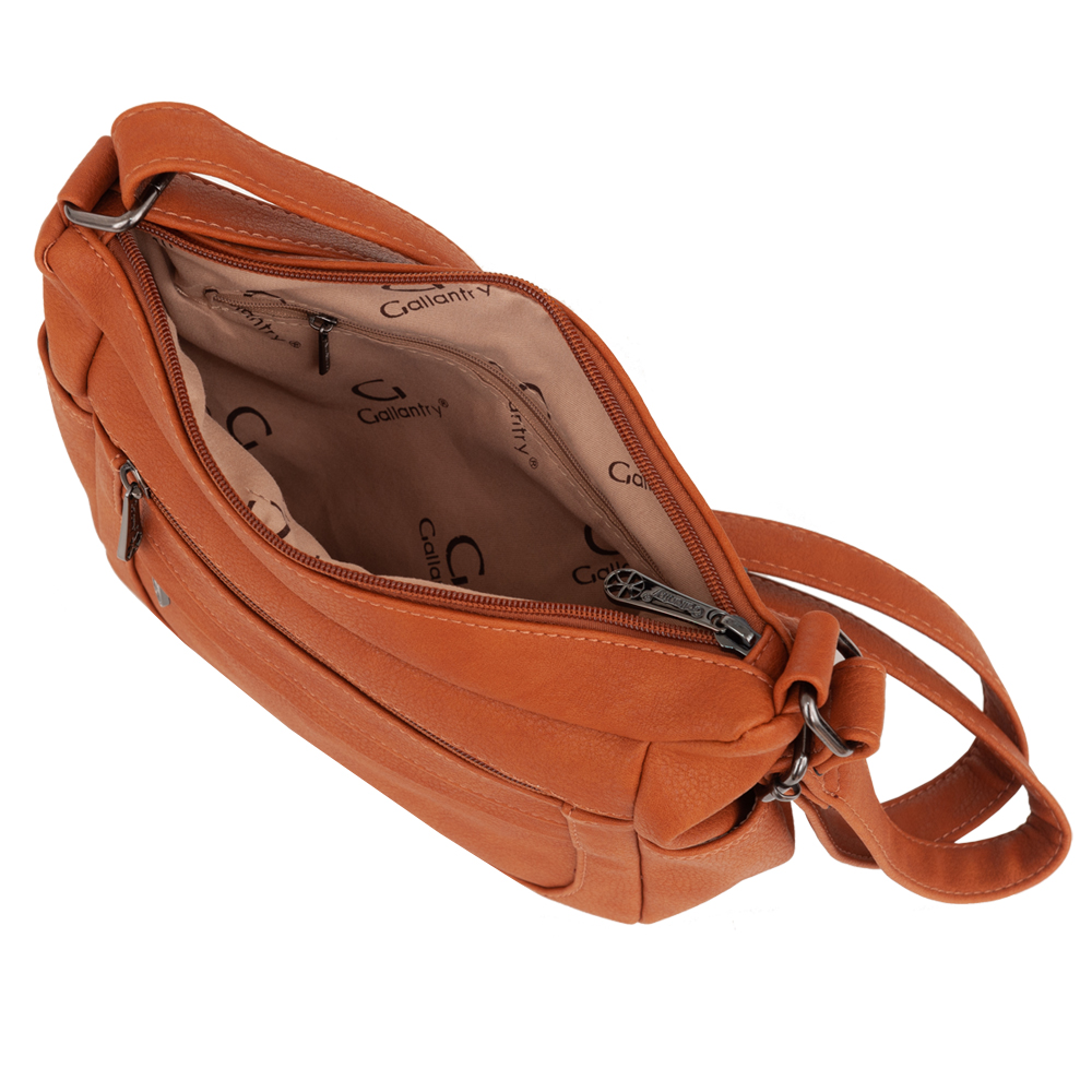 GALLANTRY pojemna torebka listonoszka wykonana z wysokogatunkowej miękkiej skóry ekologicznej. Zamykana na zamek. Torebka jednokomorowa, w środku kieszonka na zamek, kieszeń na telefon + kieszonka wsuwna na drobiazgi, klucze. Wnętrze wykończone trwałą materiałową podszewką. Długi, regulowany pasek umożliwia wygodne noszenie na ramieniu lub przez ramię jak listonoszkę. Dodatkowe 2 kieszonki z przodu + pojemna kieszonka na zamek z tyłu. Maksymalna długość paska 132 cm.