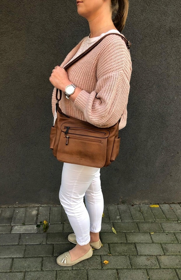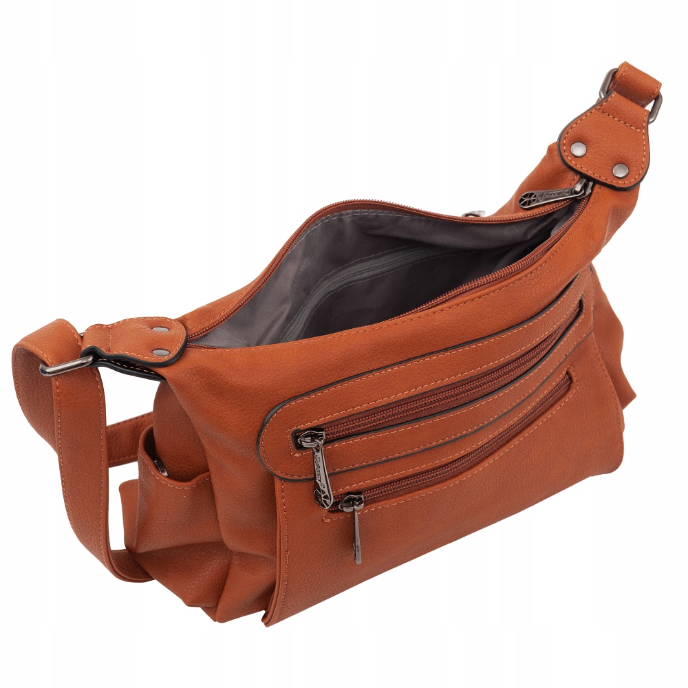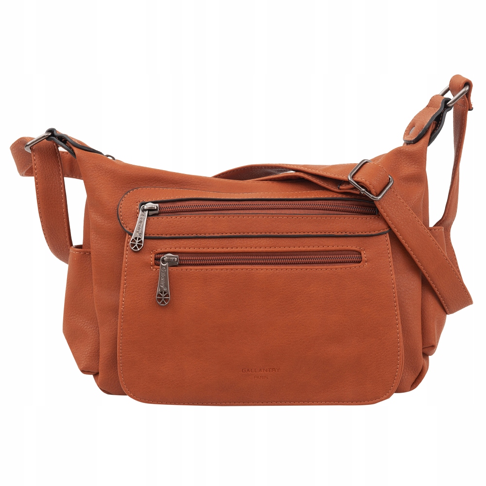 GALLANTRY pojemna torebka listonoszka wykonana z wysokogatunkowej miękkiej skóry ekologicznej. Zamykana na zamek. Torebka jednokomorowa, w środku kieszonka na zamek, kieszeń na telefon + miejsce na drobiazgi. Wnętrze wykończone trwałą materiałową podszewką kolorystycznie dopasowaną do torebki. Długi, szeroki regulowany pasek umożliwia wygodne noszenie na ramieniu lub przez ramię jak listonoszkę. Dodatkowe 2 kieszonki z przodu na zamek + pojemna kieszonka na zamek z tyłu. Maksymalna długość paska 132 cm.