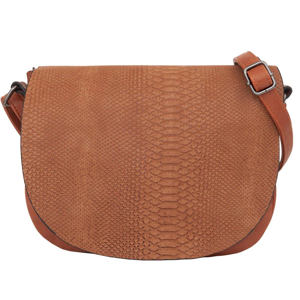 Modna torebka wykonana z wysokogatunkowej miękkiej skóry ekologicznej. Zamykana na suwak + klapa z motywem krokodyla. Torebka jednokomorowa + w środku jedna kieszonka na zamek oraz jedna na telefon + kieszonka na klucze + pod klapą kieszonka na zamek + z tyłu torebki kieszonka na zamek. Wnętrze wykończone trwałą podszewką kolorystycznie dopasowaną do skóry. Długi, regulowany pasek umożliwia wygodne noszenie na ramieniu lub przez ramię jak listonoszkę. Metalowe elementy w kolorze inox.