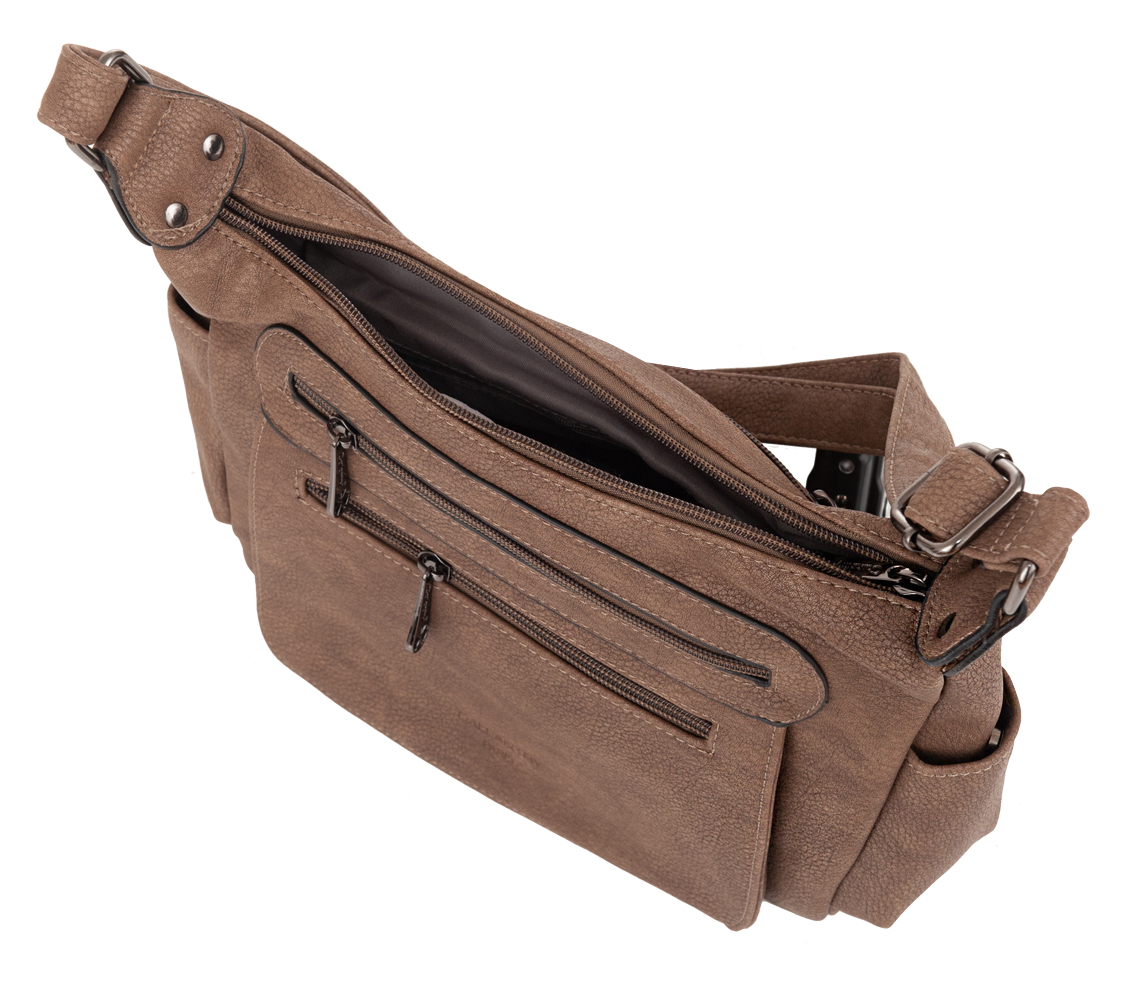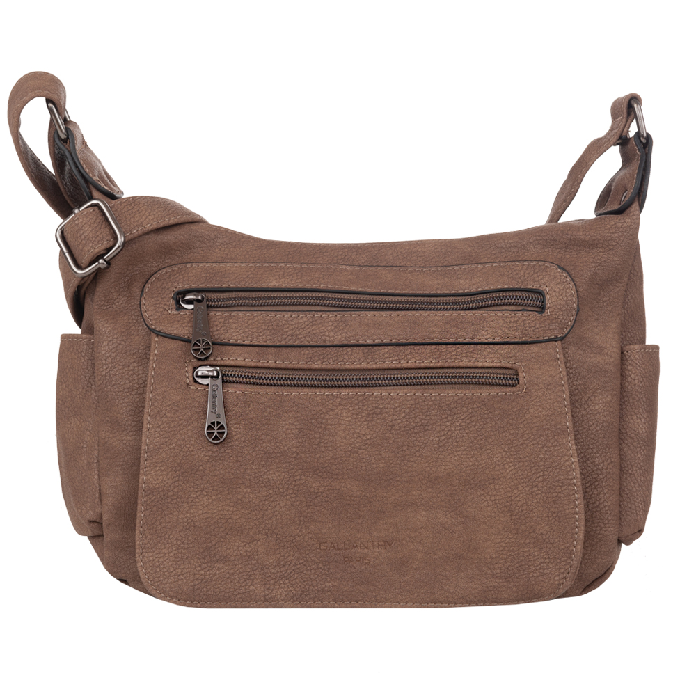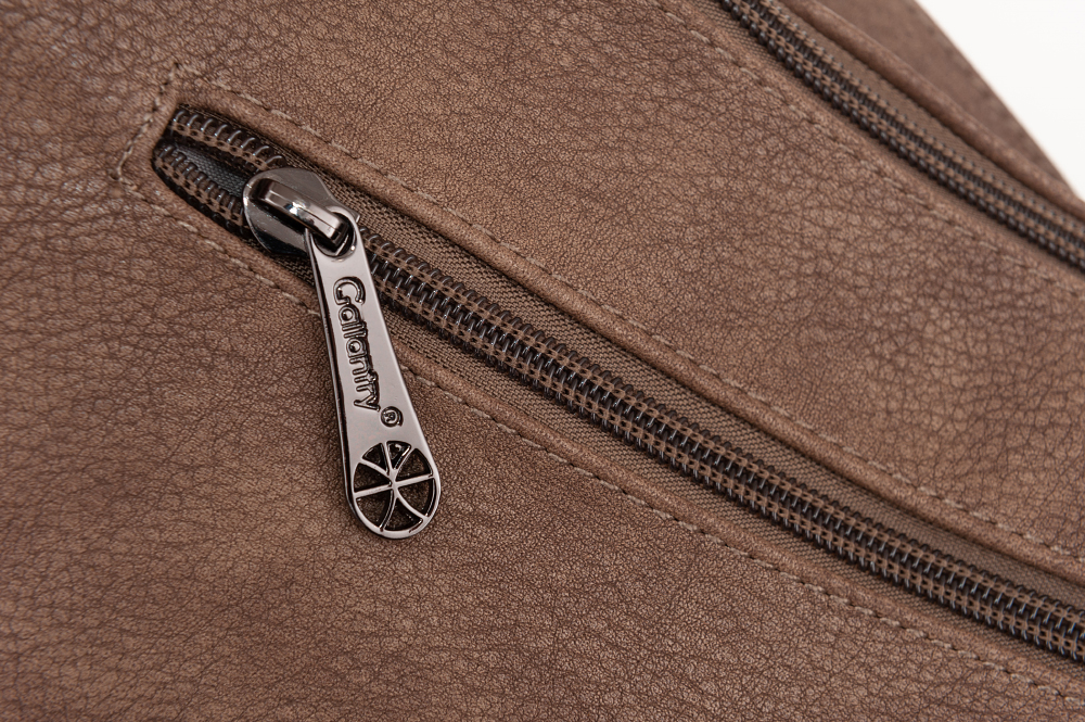 GALLANTRY pojemna torebka listonoszka wykonana z wysokogatunkowej miękkiej skóry ekologicznej. Zamykana na zamek. Torebka jednokomorowa, w środku kieszonka na zamek, kieszeń na telefon + miejsce na drobiazgi. Wnętrze wykończone trwałą materiałową podszewką kolorystycznie dopasowaną do torebki. Długi, szeroki regulowany pasek umożliwia wygodne noszenie na ramieniu lub przez ramię jak listonoszkę. Dodatkowe 2 kieszonki z przodu na zamek + pojemna kieszonka na zamek z tyłu. Maksymalna długość paska 132 cm.