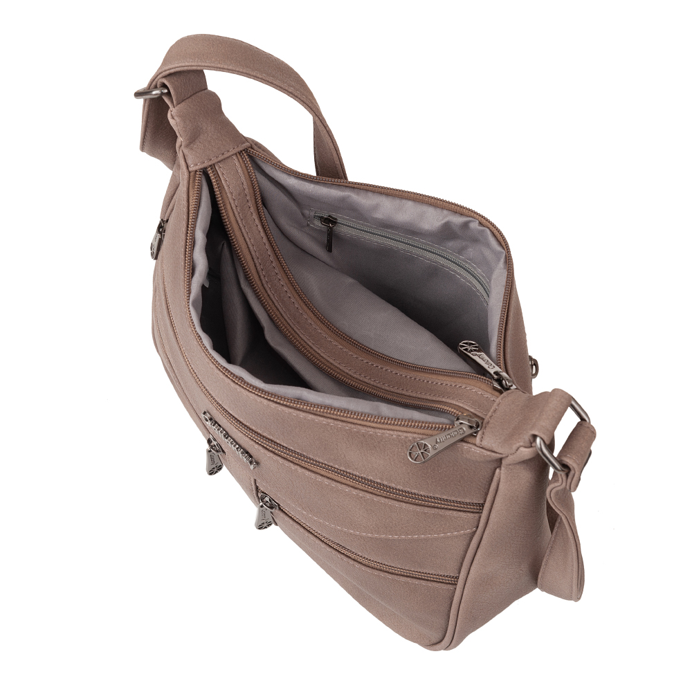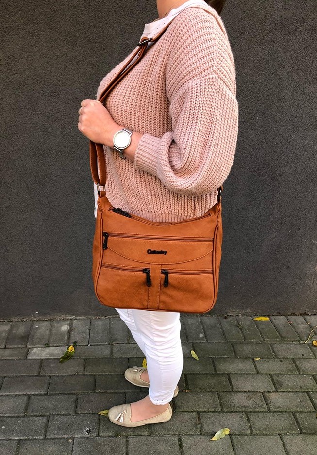 GALLANTRY pojemna torebka listonoszka wykonana z wysokogatunkowej miękkiej skóry ekologicznej. Zamykana na zamek. Torebka dwukomorowa, w pierwszej komorze kieszonka na zamek, w drugiej kieszeń na telefon + miejsce na drobiazgi. Wnętrze wykończone trwałą podszewką kolorystycznie dopasowaną do skóry. Długi, regulowany pasek umożliwia wygodne noszenie na ramieniu lub przez ramię jak listonoszkę. Dodatkowe 3 kieszonki z przodu + pojemna kieszonka na zamek z tyłu. Maksymalna długość paska 132 cm.
