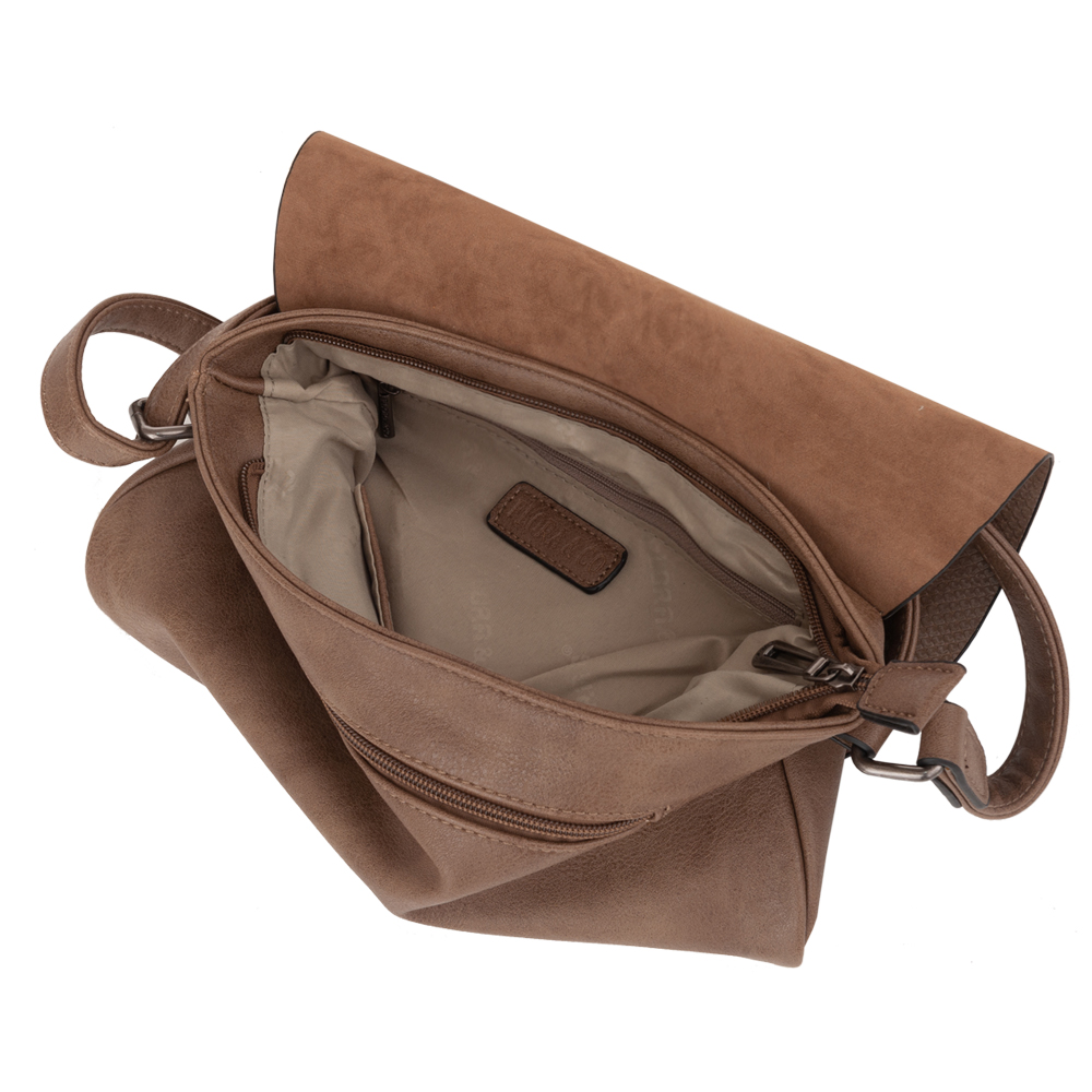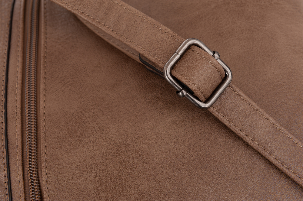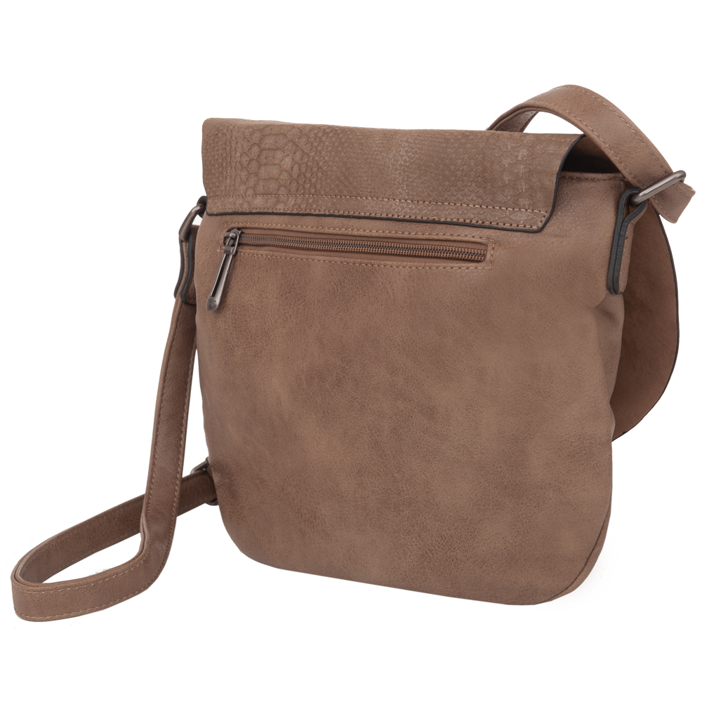Modna torebka wykonana z wysokogatunkowej miękkiej skóry ekologicznej. Zamykana na suwak + klapa z motywem krokodyla. Torebka jednokomorowa + w środku jedna kieszonka na zamek oraz jedna na telefon + kieszonka na klucze + pod klapą kieszonka na zamek + z tyłu torebki kieszonka na zamek. Wnętrze wykończone trwałą podszewką kolorystycznie dopasowaną do skóry. Długi, regulowany pasek umożliwia wygodne noszenie na ramieniu lub przez ramię jak listonoszkę. Metalowe elementy w kolorze inox.