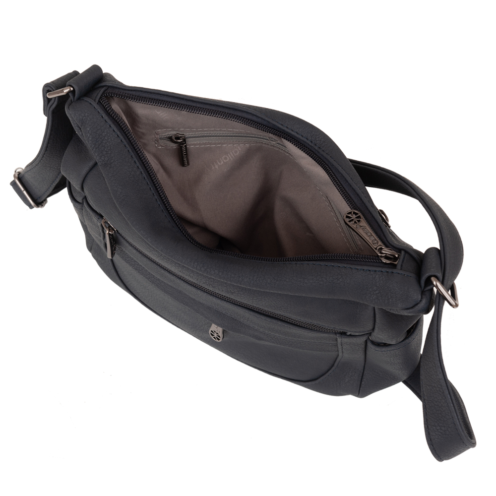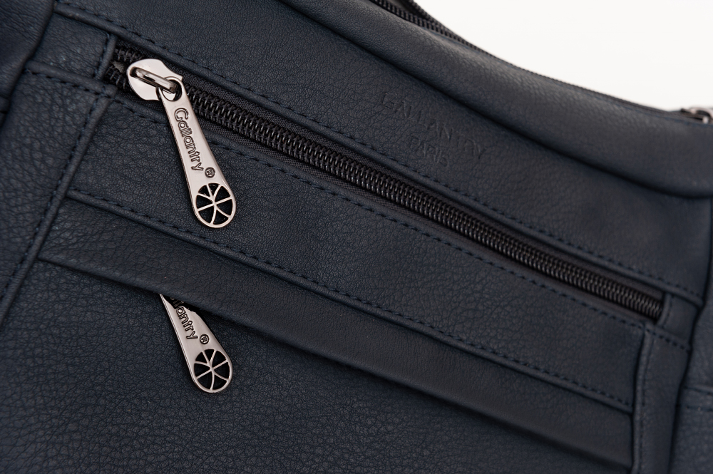 GALLANTRY pojemna torebka listonoszka wykonana z wysokogatunkowej miękkiej skóry ekologicznej. Zamykana na zamek. Torebka jednokomorowa, w środku kieszonka na zamek, kieszeń na telefon + kieszonka wsuwna na drobiazgi, klucze. Wnętrze wykończone trwałą materiałową podszewką. Długi, regulowany pasek umożliwia wygodne noszenie na ramieniu lub przez ramię jak listonoszkę. Dodatkowe 2 kieszonki z przodu + pojemna kieszonka na zamek z tyłu. Maksymalna długość paska 132 cm.