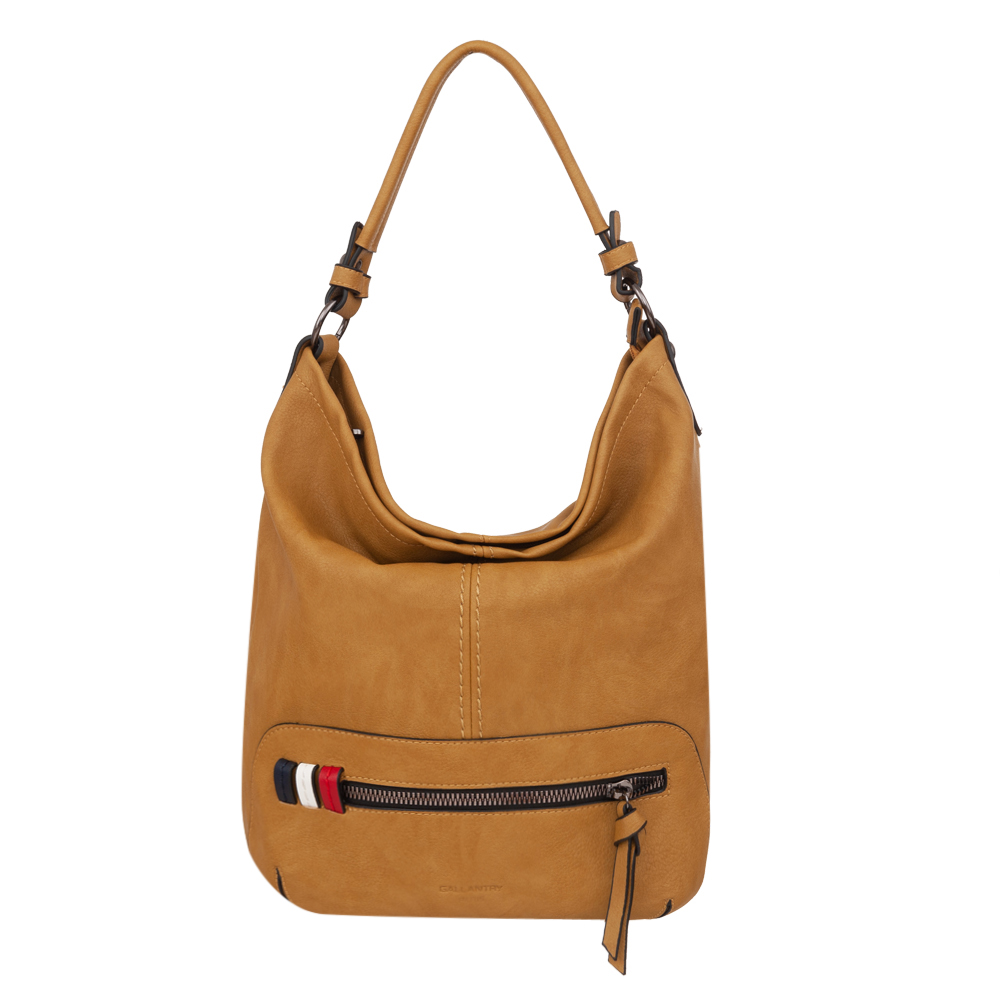 Gallantry - Modna torebka worek A4 wykonana z wysokogatunkowej miękkiej skóry ekologicznej najwyższej jakości. Zamykana na zamek na całej szerokości. Torebka jednokomorowa + w środku jedna kieszonka na zamek oraz jedna na telefon + kieszonka wsuwna na klucze, drobiazgi. Wnętrze wykończone trwałą, materiałową podszewką kolorystycznie dopasowaną do skóry. Szerokie wygodne ucho do noszenia na ramieniu. Dodatkowo w komplecie długi, regulowany pasek, umożliwia wygodne noszenie na ramieniu lub przez ramię o długości do 127 cm. Dodatkowa pojemna kieszonka na zamek z tyłu + mała z przodu.