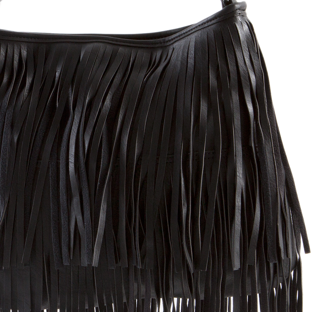 Torebka wykonana z wysokogatunkowej miękkiej skóry ekologicznej z frędzlami w stylu boho. Zamykana na suwak. Torebka jednokomorowa. W środku jedna kieszonka na zamek, jedna na telefon + dodatkowa kieszeń. Wnętrze wykończone trwałą, czarną podszewką. Dodatkowy długi regulowany pasek umożliwia wygodne noszenie na ramieniu lub przez ramię jak listonoszkę. Elementy wykończenia w kolorze srebrnym.