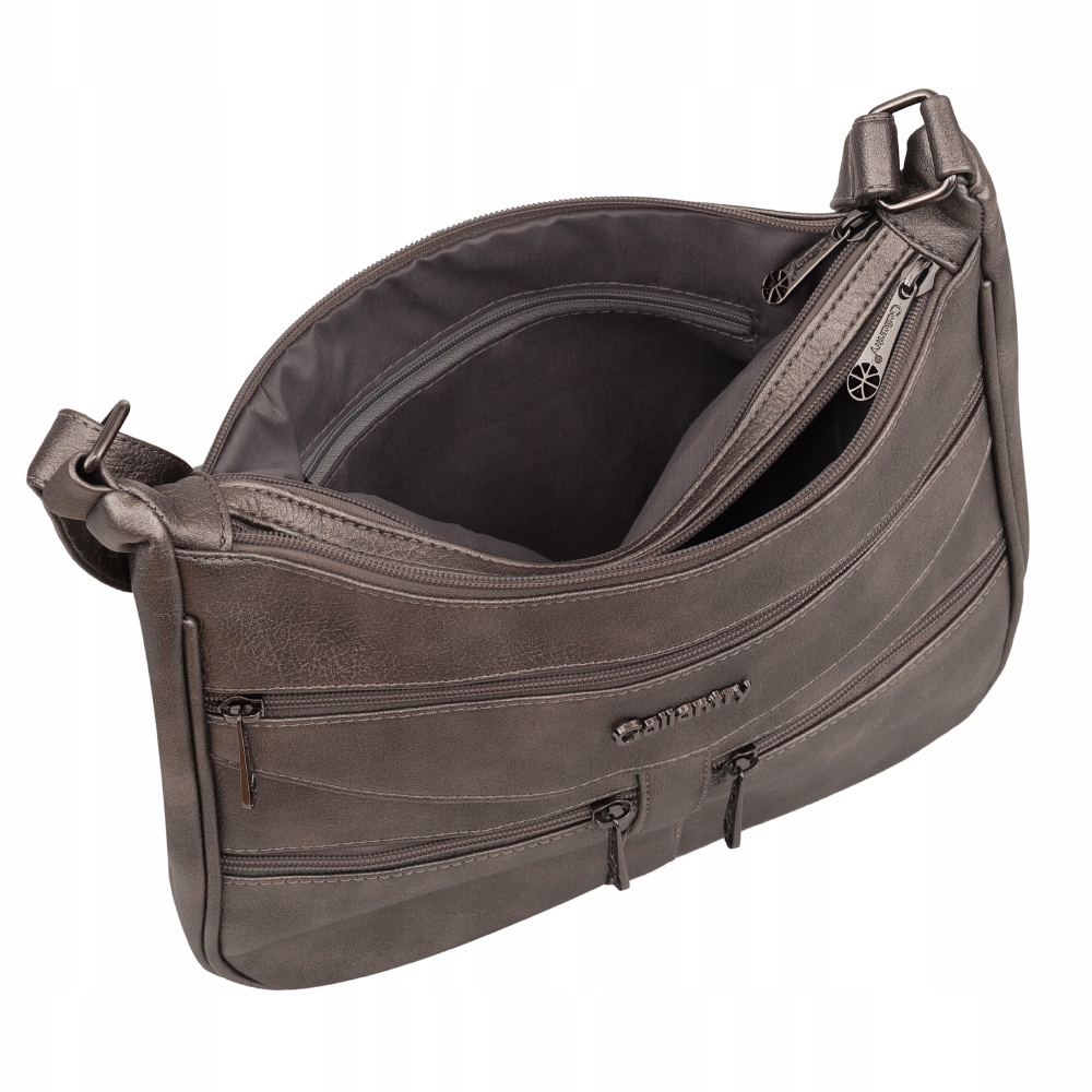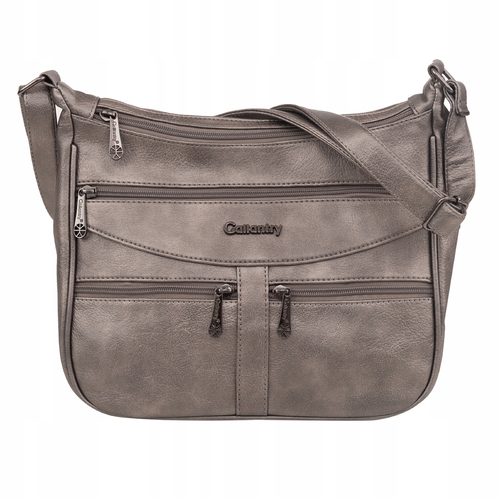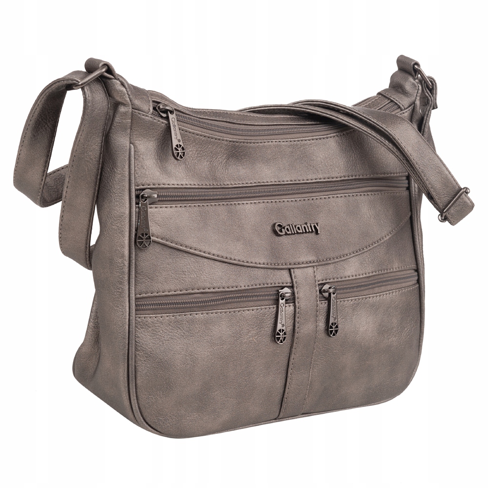 GALLANTRY pojemna torebka listonoszka wykonana z wysokogatunkowej miękkiej skóry ekologicznej. Zamykana na zamek. Torebka dwukomorowa, w pierwszej komorze kieszonka na zamek, w drugiej kieszeń na telefon + miejsce na drobiazgi. Wnętrze wykończone trwałą podszewką kolorystycznie dopasowaną do skóry. Długi, regulowany pasek umożliwia wygodne noszenie na ramieniu lub przez ramię jak listonoszkę. Dodatkowe 3 kieszonki z przodu + pojemna kieszonka na zamek z tyłu. Maksymalna długość paska 132 cm.