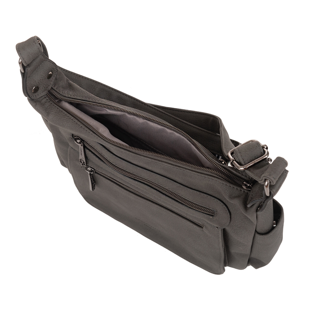 GALLANTRY pojemna torebka listonoszka wykonana z wysokogatunkowej miękkiej skóry ekologicznej. Zamykana na zamek. Torebka jednokomorowa, w środku kieszonka na zamek, kieszeń na telefon + miejsce na drobiazgi. Wnętrze wykończone trwałą materiałową podszewką kolorystycznie dopasowaną do torebki. Długi, szeroki regulowany pasek umożliwia wygodne noszenie na ramieniu lub przez ramię jak listonoszkę. Dodatkowe 2 kieszonki z przodu na zamek + pojemna kieszonka na zamek z tyłu. Maksymalna długość paska 132 cm.