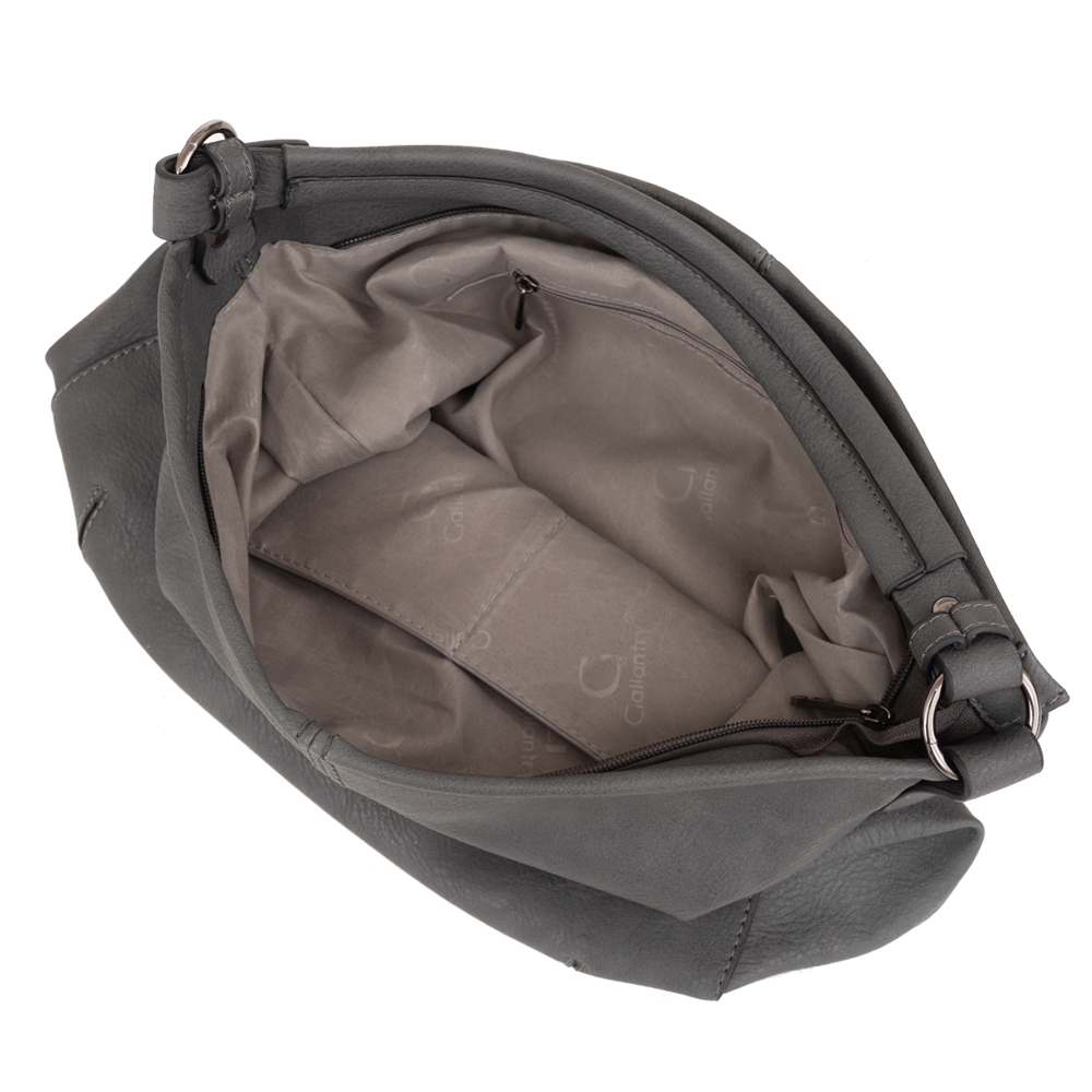 Gallantry - Modna torebka worek A4 wykonana z wysokogatunkowej miękkiej skóry ekologicznej najwyższej jakości. Zamykana na zamek na całej szerokości. Torebka jednokomorowa + w środku jedna kieszonka na zamek oraz jedna na telefon + kieszonka wsuwna na klucze, drobiazgi. Wnętrze wykończone trwałą, materiałową podszewką kolorystycznie dopasowaną do skóry. Szerokie wygodne ucho do noszenia na ramieniu. Dodatkowo w komplecie długi, regulowany pasek, umożliwia wygodne noszenie na ramieniu lub przez ramię o długości do 127 cm. Dodatkowa pojemna kieszonka na zamek z tyłu + mała z przodu.