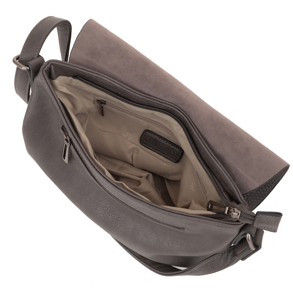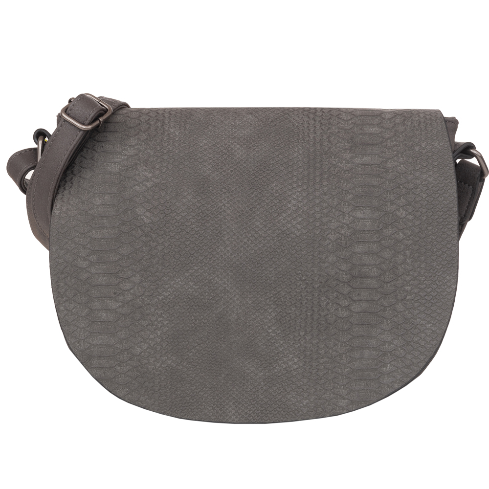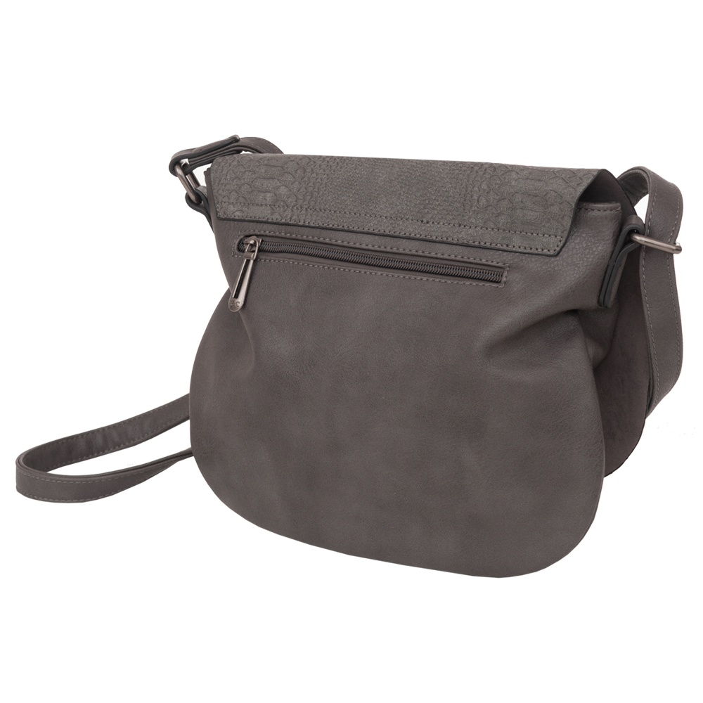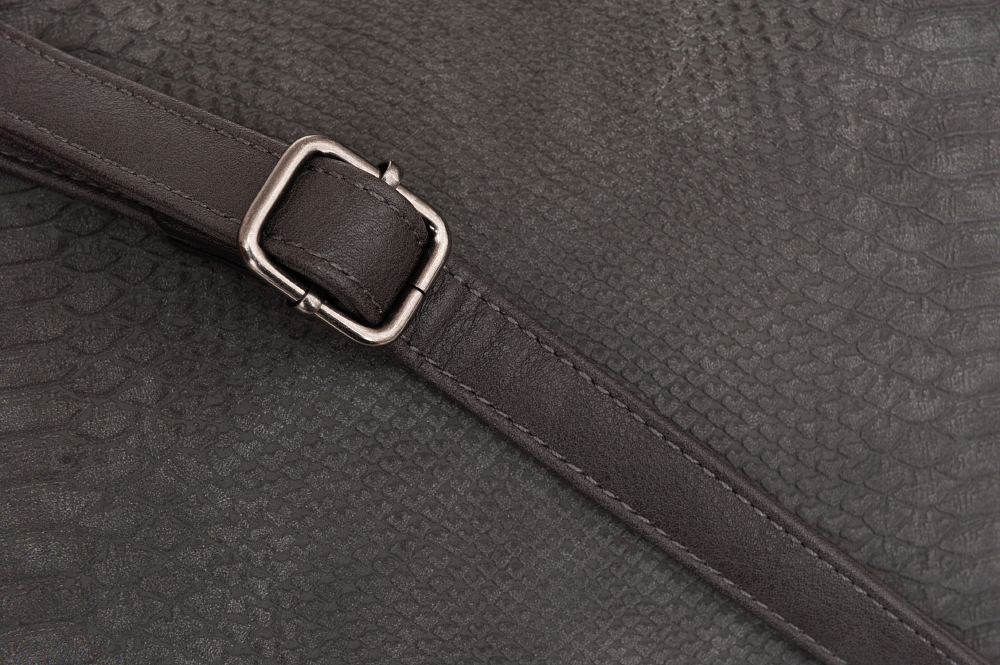 Modna torebka wykonana z wysokogatunkowej miękkiej skóry ekologicznej. Zamykana na suwak + klapa z motywem krokodyla. Torebka jednokomorowa + w środku jedna kieszonka na zamek oraz jedna na telefon + kieszonka na klucze + pod klapą kieszonka na zamek + z tyłu torebki kieszonka na zamek. Wnętrze wykończone trwałą podszewką kolorystycznie dopasowaną do skóry. Długi, regulowany pasek umożliwia wygodne noszenie na ramieniu lub przez ramię jak listonoszkę. Metalowe elementy w kolorze inox.