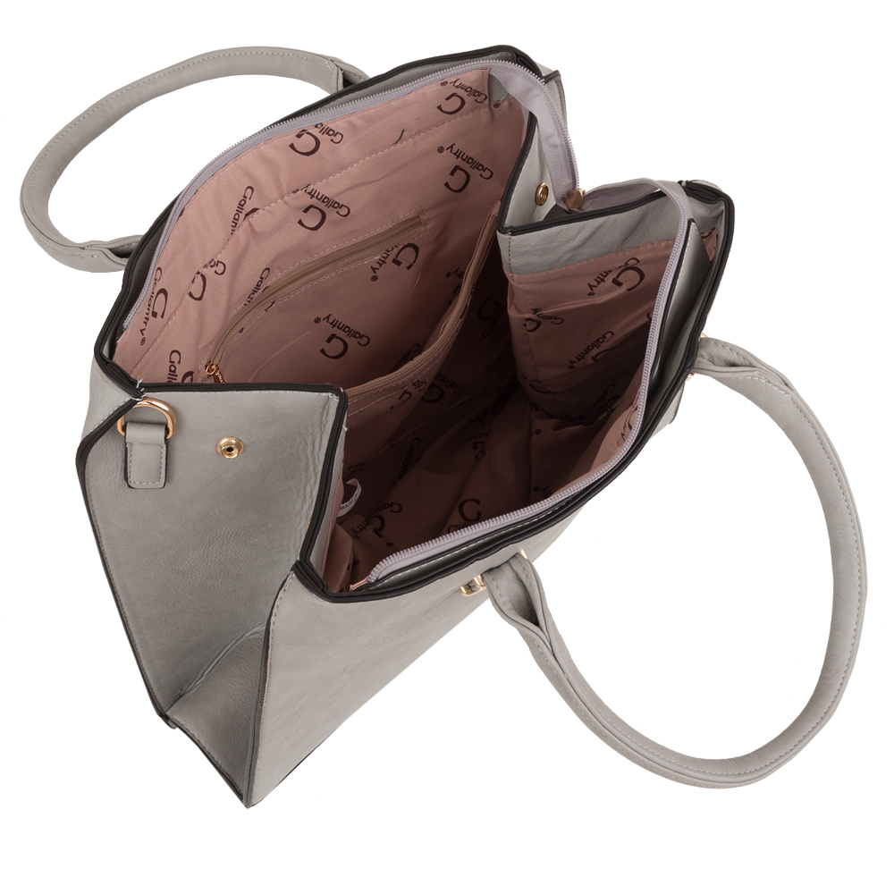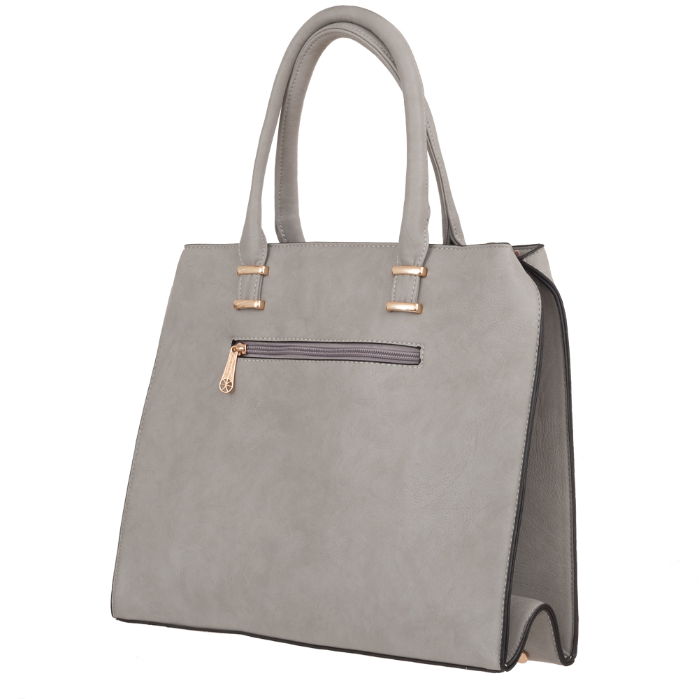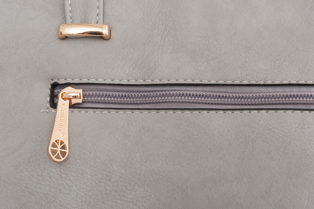 Modna, klasyczna skórzana torebka wykonana z wysokogatunkowej gładkiej skóry ekologicznej wysokiej jakości. Zamykana z góry na suwak na całej szerokości. Torebka jednokomorowa. Wewnątrz trzy kieszonki na zamek, jedna na telefon + dodatkowa kieszeń na drobiazgi. Wnętrze wykończone trwałą, ciemną podszewką. Dodatkowo z tyłu torebki kieszonka na suwak. Torebka od spodu usztywniona oraz podbita nóżkami, co chroni ją przeciw uszkodzeniom i zadrapaniom. Elementy wykończenia w kolorze złotym.